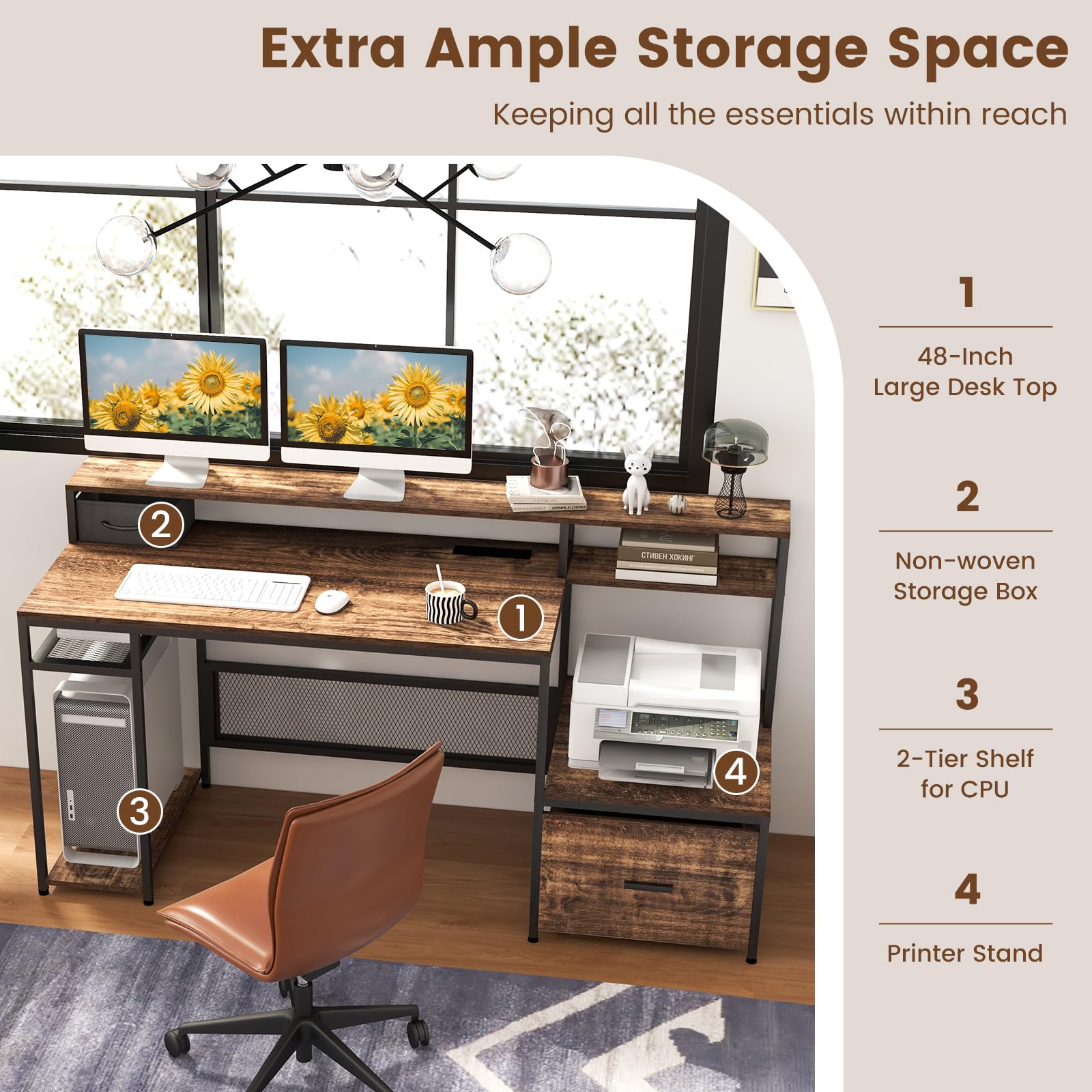48-inch large desk top for 2 monitors and offers a generous work surface