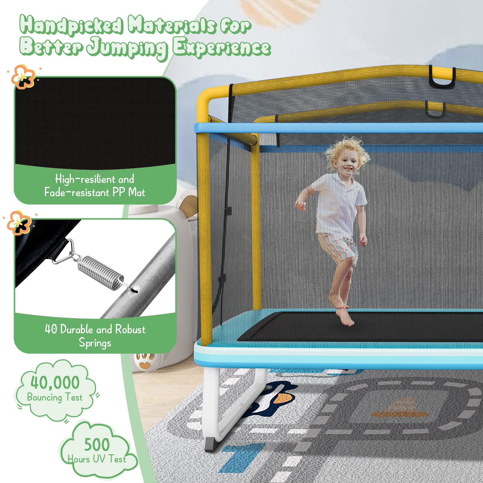 - Upgraded Jumping Experience: Made of a high-resilient and fade-resistant PP jumping mat that is connected to 40 durable and robust springs, the mini kid's trampoline will provide your child with a better jumping experience. What's more, the 40,000 bouncing tests as well as the 500-hour UV test increase reliability.