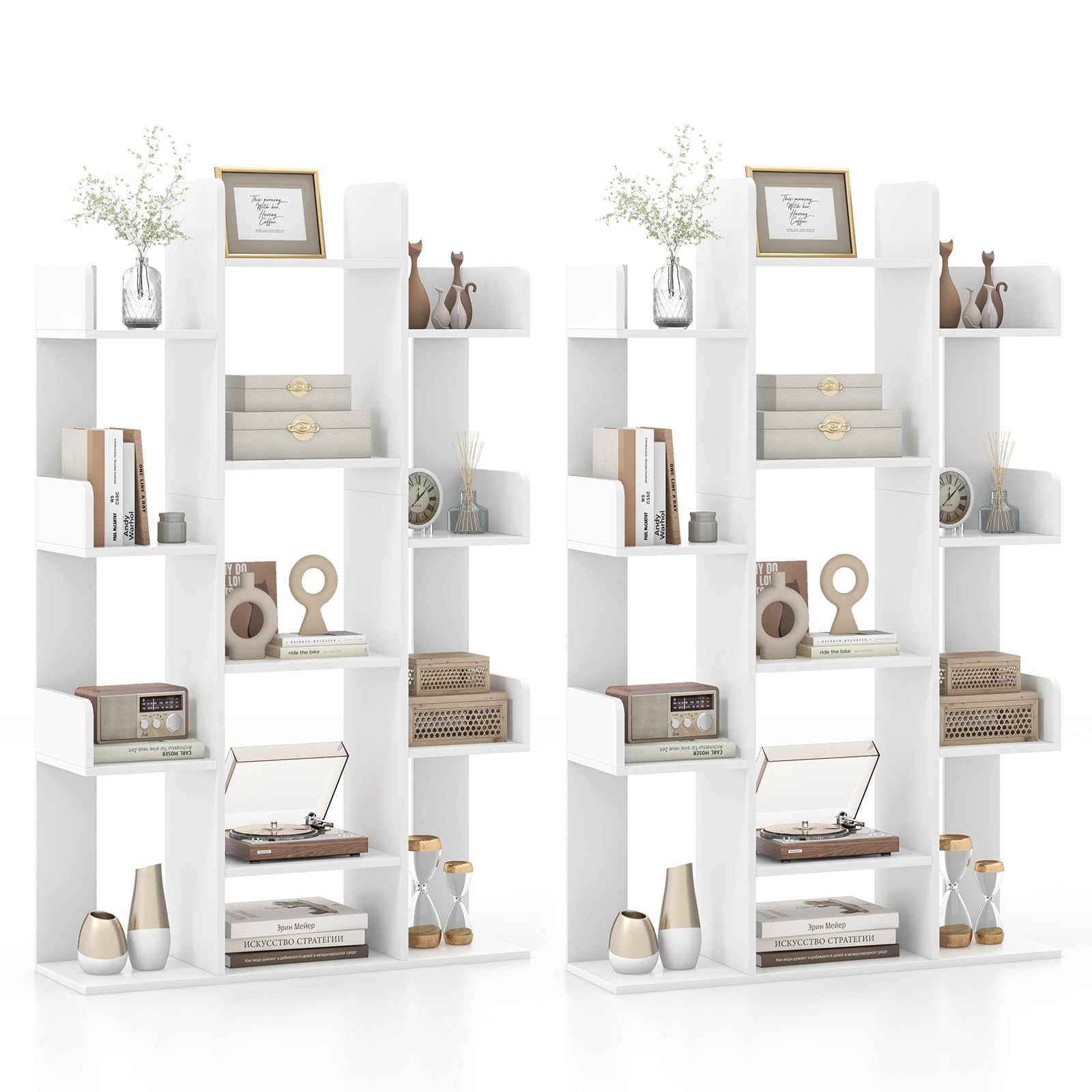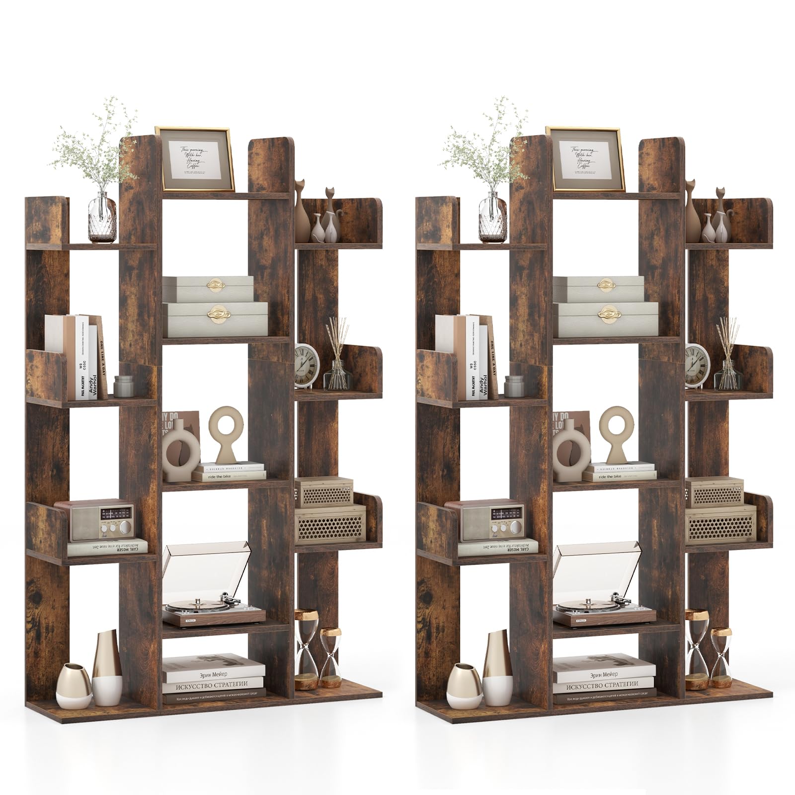 Enhance your book display with a touch of aesthetics! This tree bookshelf is thoughtfully designed with both aesthetics and functionality in mind. It takes the shape of a tree, making it a unique and visually appealing addition to your space. With 13 open shelves, this bookcase provides ample space to showcase your beloved books, collectibles, and other decorative items. To ensure long-lasting stability, it comes with 2 anti-toppling kits, offering a reliable storage solution that will withstand the test of time. The widened base and non-slip foot pads further contribute to its overall stability. Whether it's for your home, office, or any other space in need of storage and decorative display, this tree-shaped bookshelf is a perfect choice.