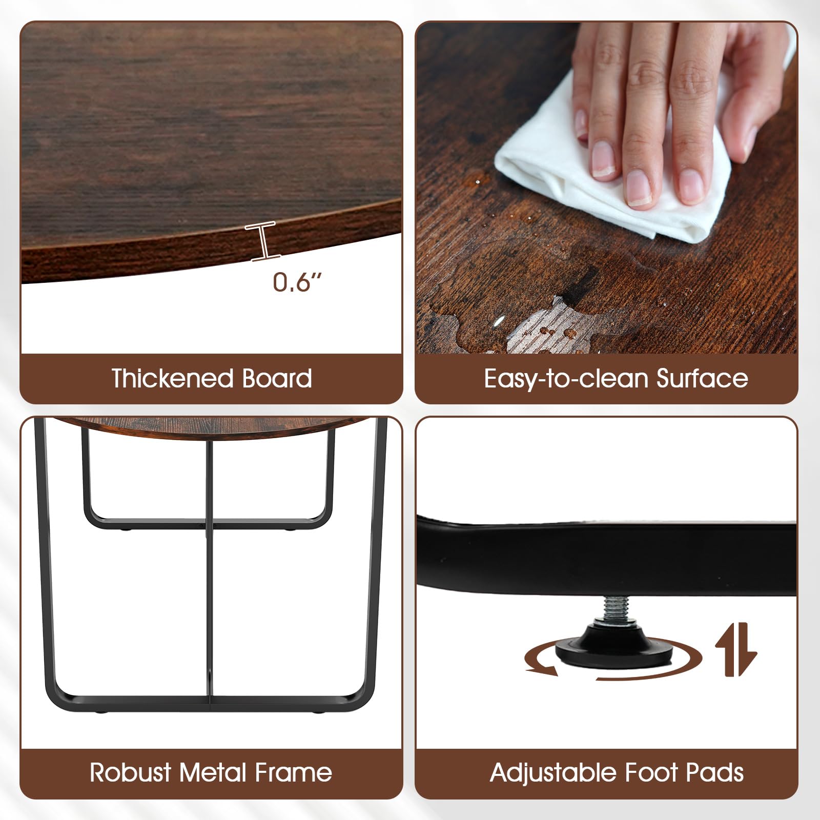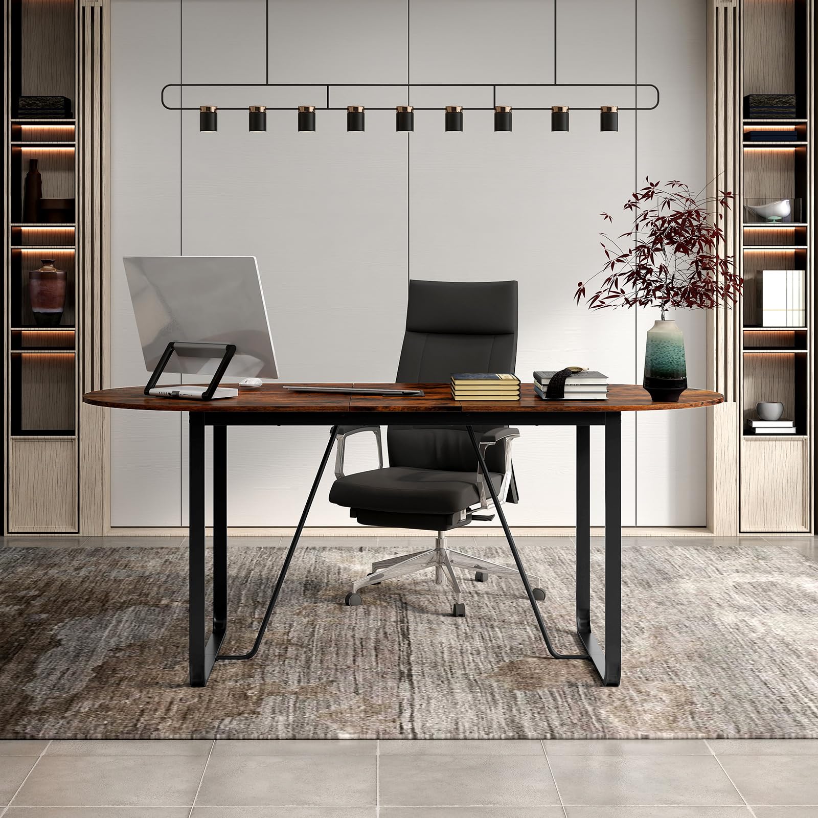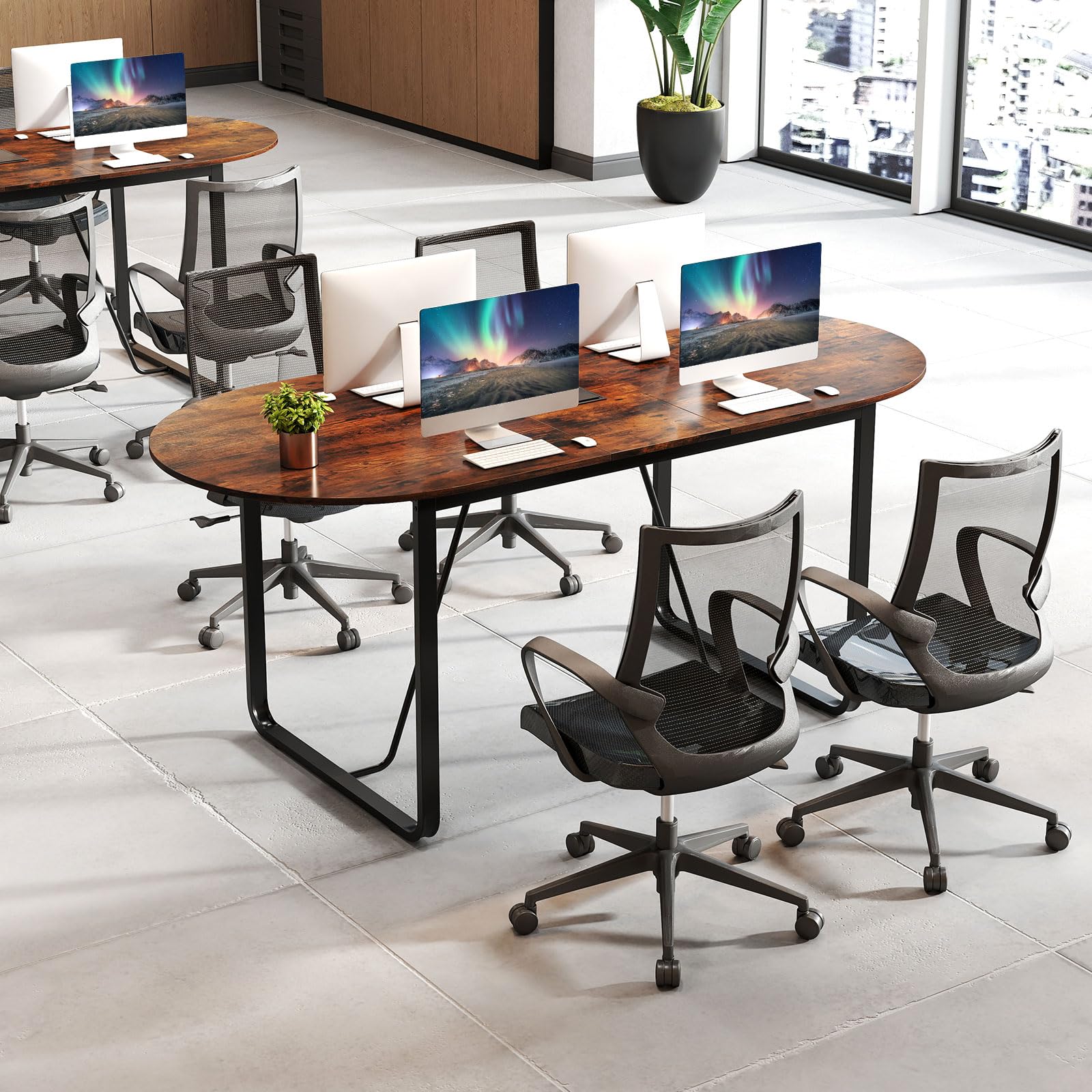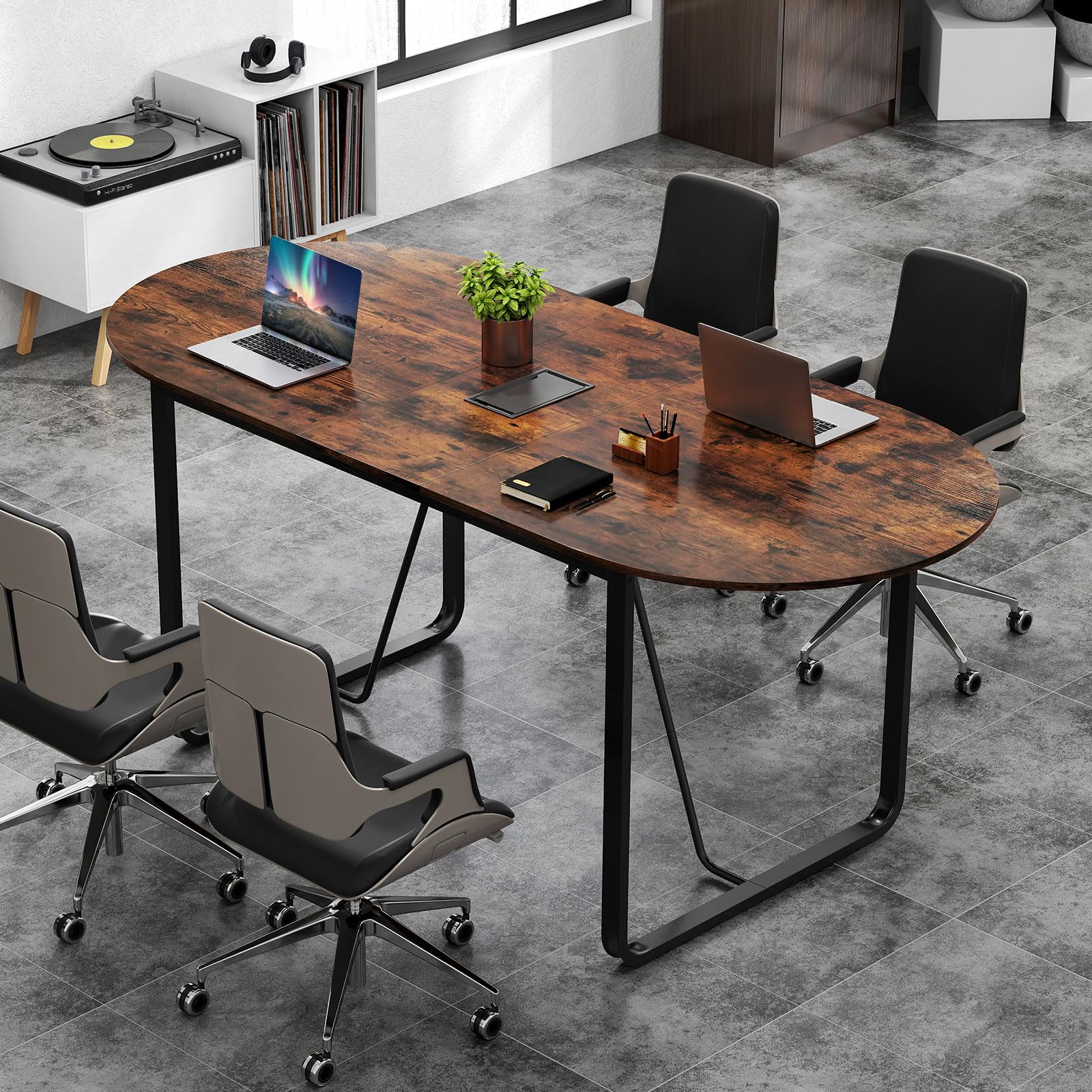 This oval meeting table boasts a generous 71" tabletop, offering plenty of space for all your office essentials while comfortably seating up to 6-8 people for larger gatherings. Additionally, center cable management grommet with cover ensure that wires remain neatly organized and discreetly hidden. Constructed with thickened tabletop board and heavy-duty metal frame, this conference table promises exceptional sturdiness and durability. The adjustable foot pads protect your floor and make leveling the table on uneven surfaces a breeze. Whether placed in a reception room, office space, or collaborative area, this versatile conference table is an elegant and practical solution to satisfy all your meeting needs across multiple settings.