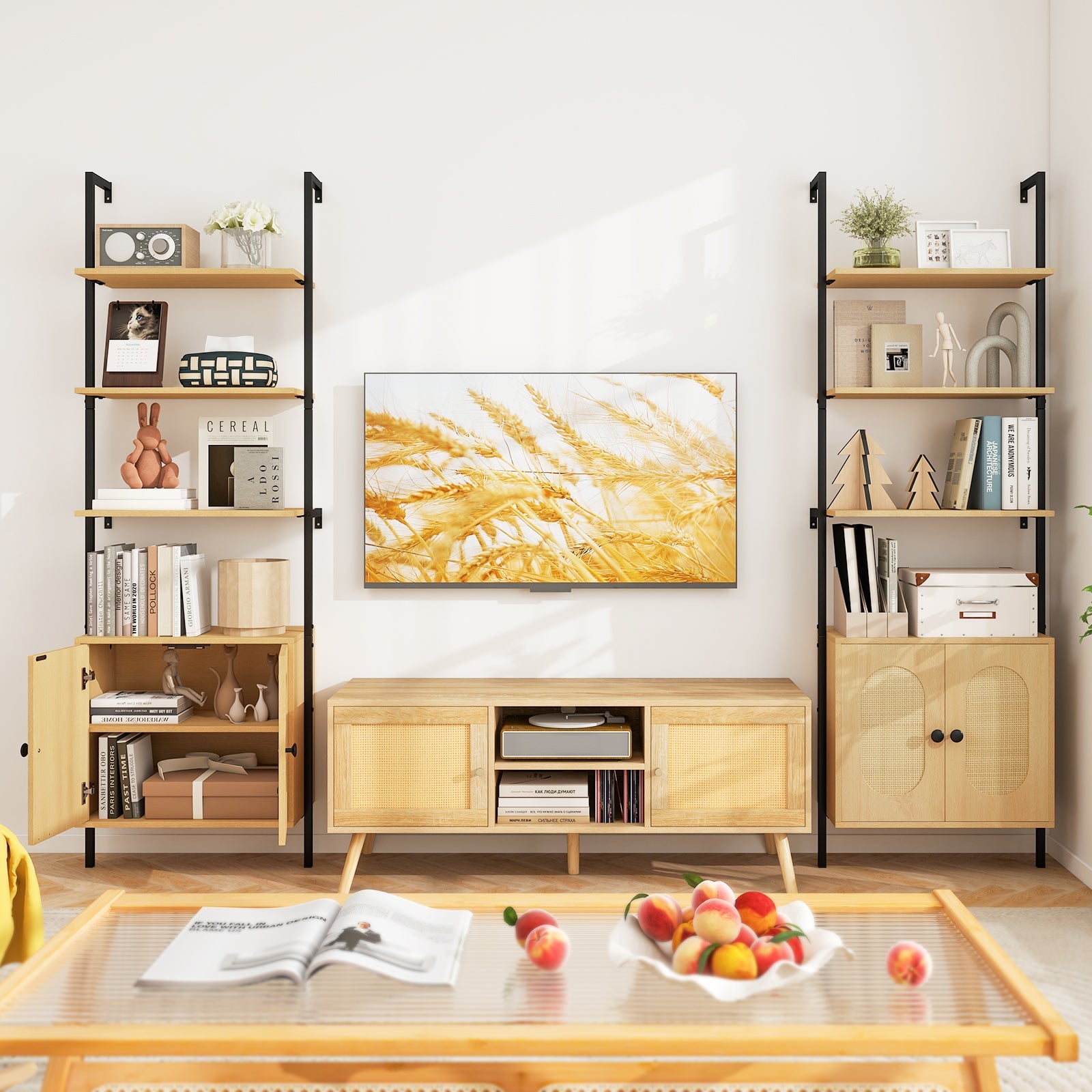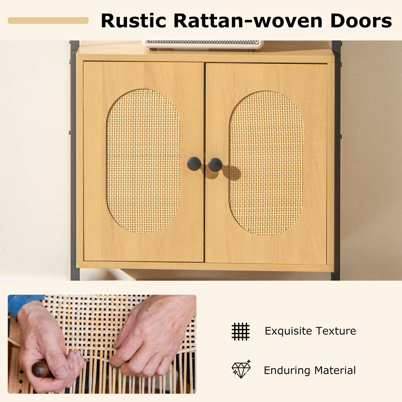 Elegant Rattan Doors: The cabinet section is distinguished by its attractive rattan-woven doors, adding a touch of natural elegance and style to the room. Plus, the Boho bookcase with rattan doors can also protect the stored items from dust.