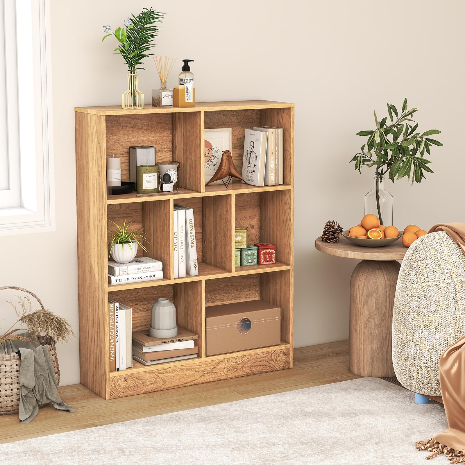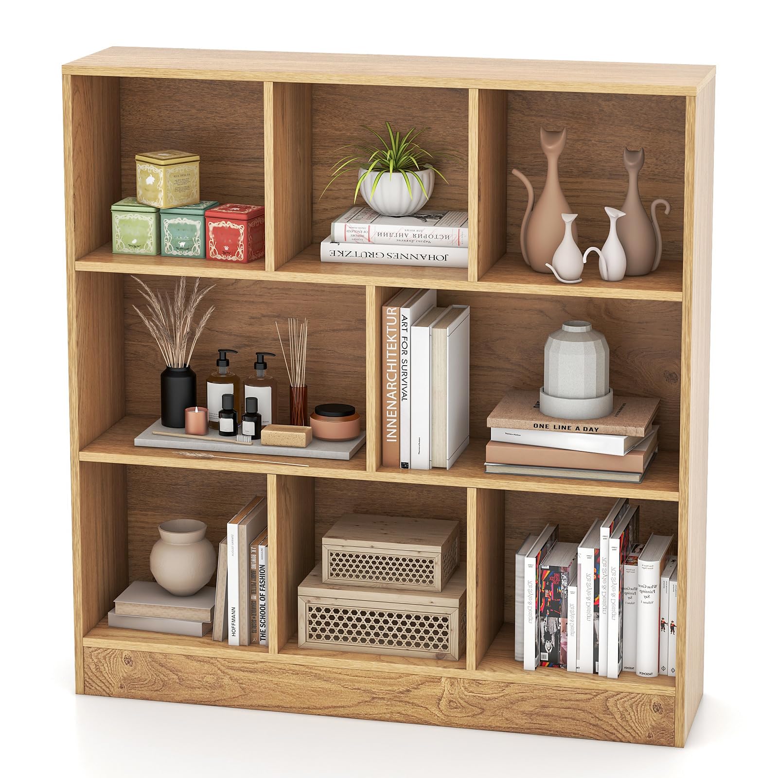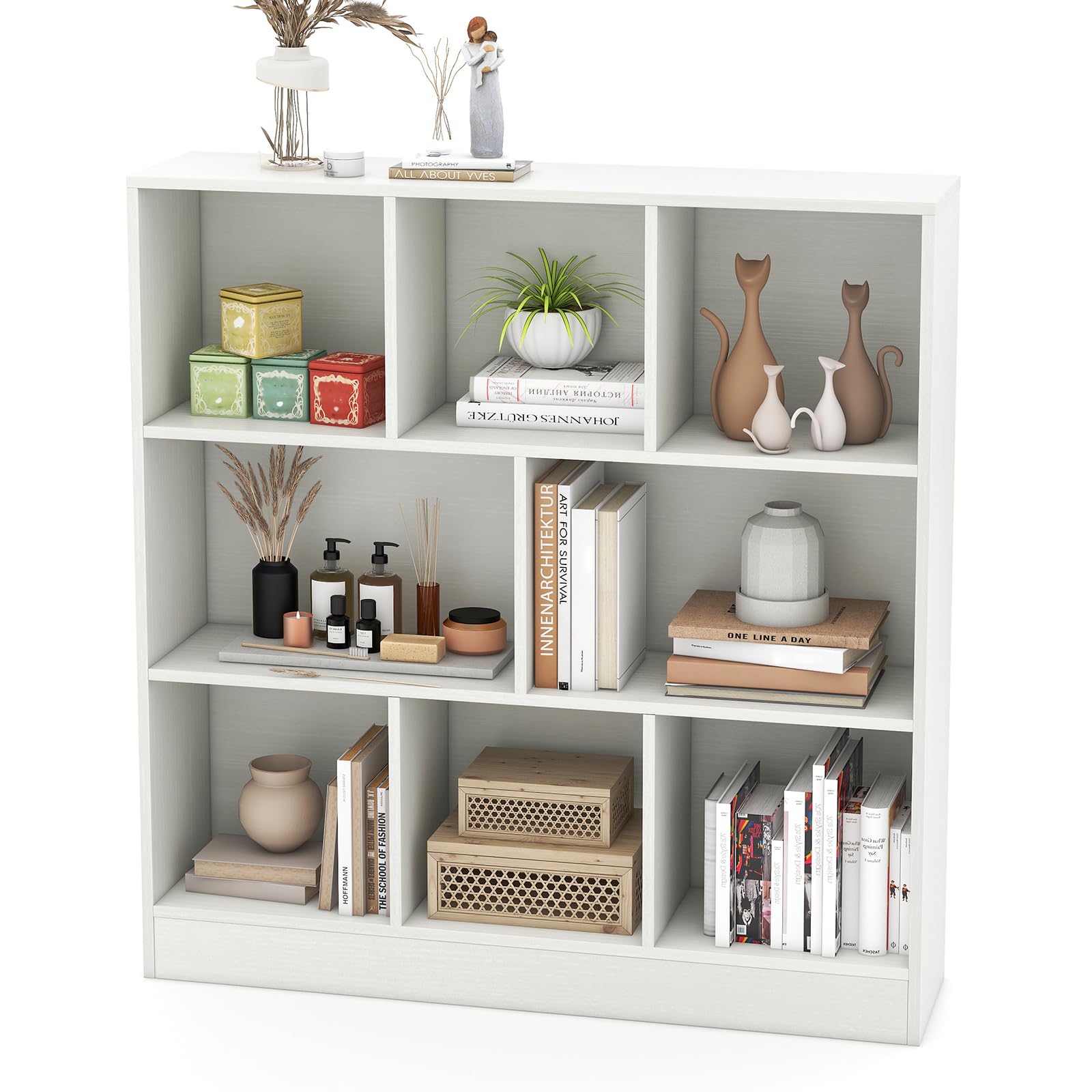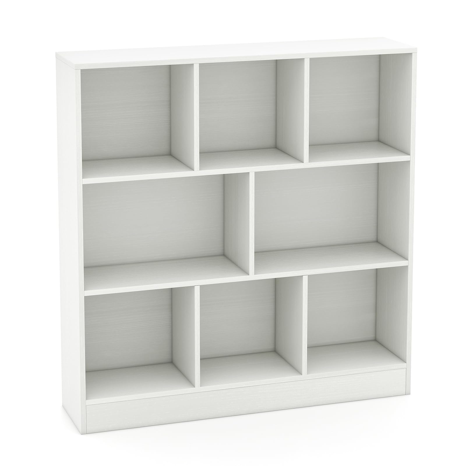The freestanding bookcase offers versatile placement options with its 8 open cubes, perfect for your belongings. Built to last, this sturdy storage unit supports up to 350 lbs without compromising its structural integrity. What's more, the dual anti-toppling kits offer outstanding stability and keep your family safe. With its modern design, this versatile bookshelf seamlessly complements any room, elevating your living space.