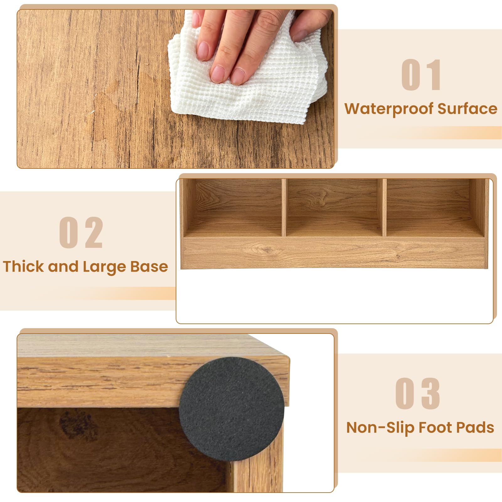 Spacious top and 8 open cubes for versatile storage options