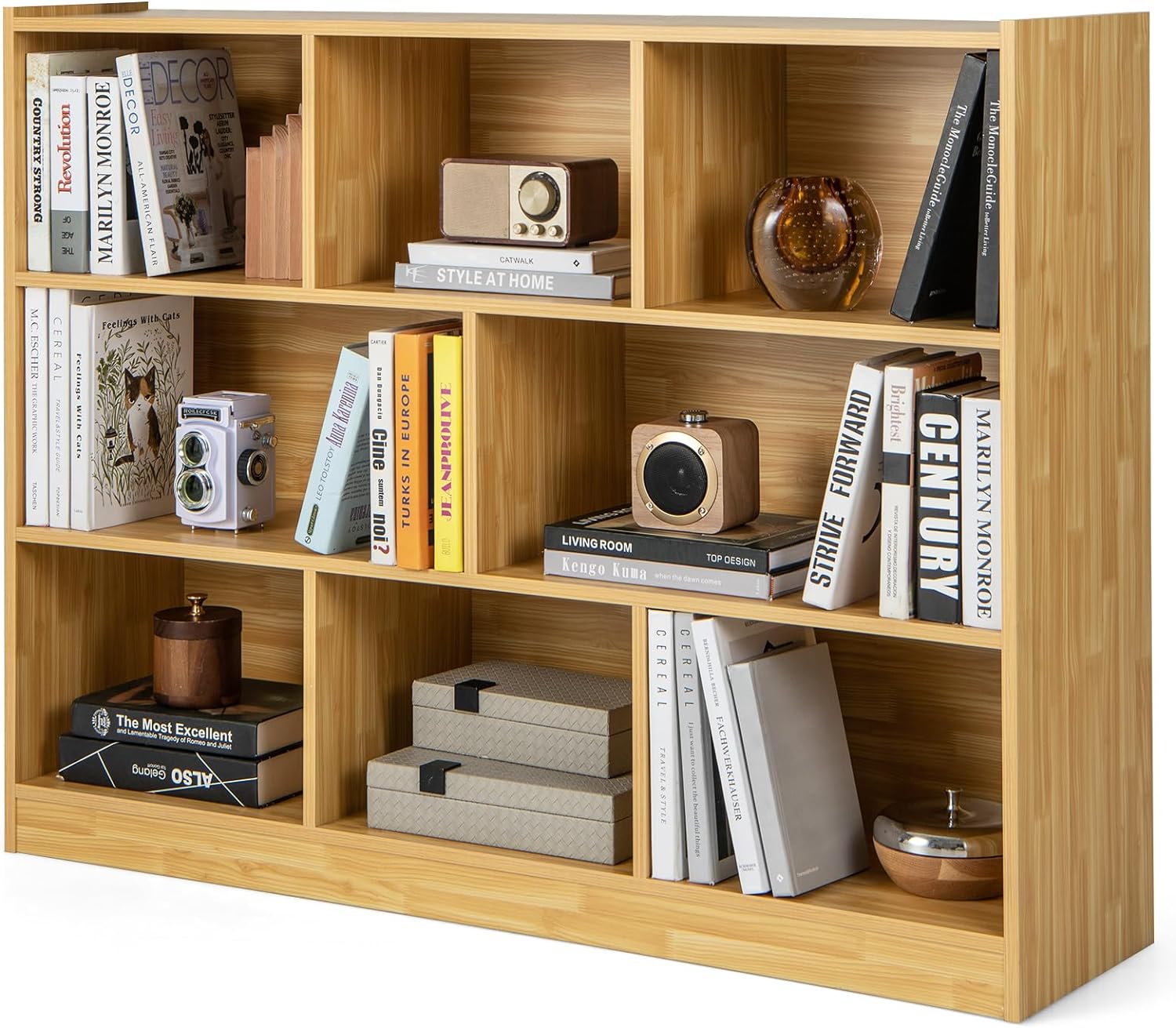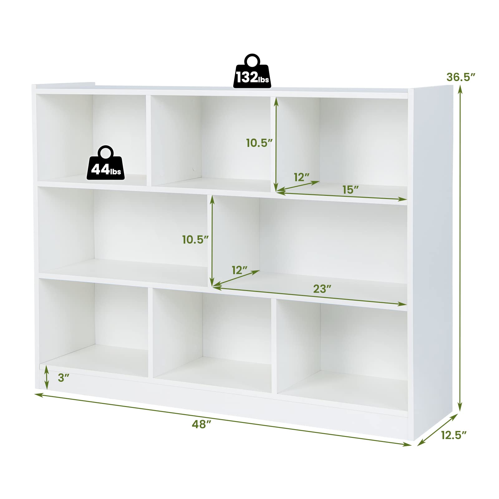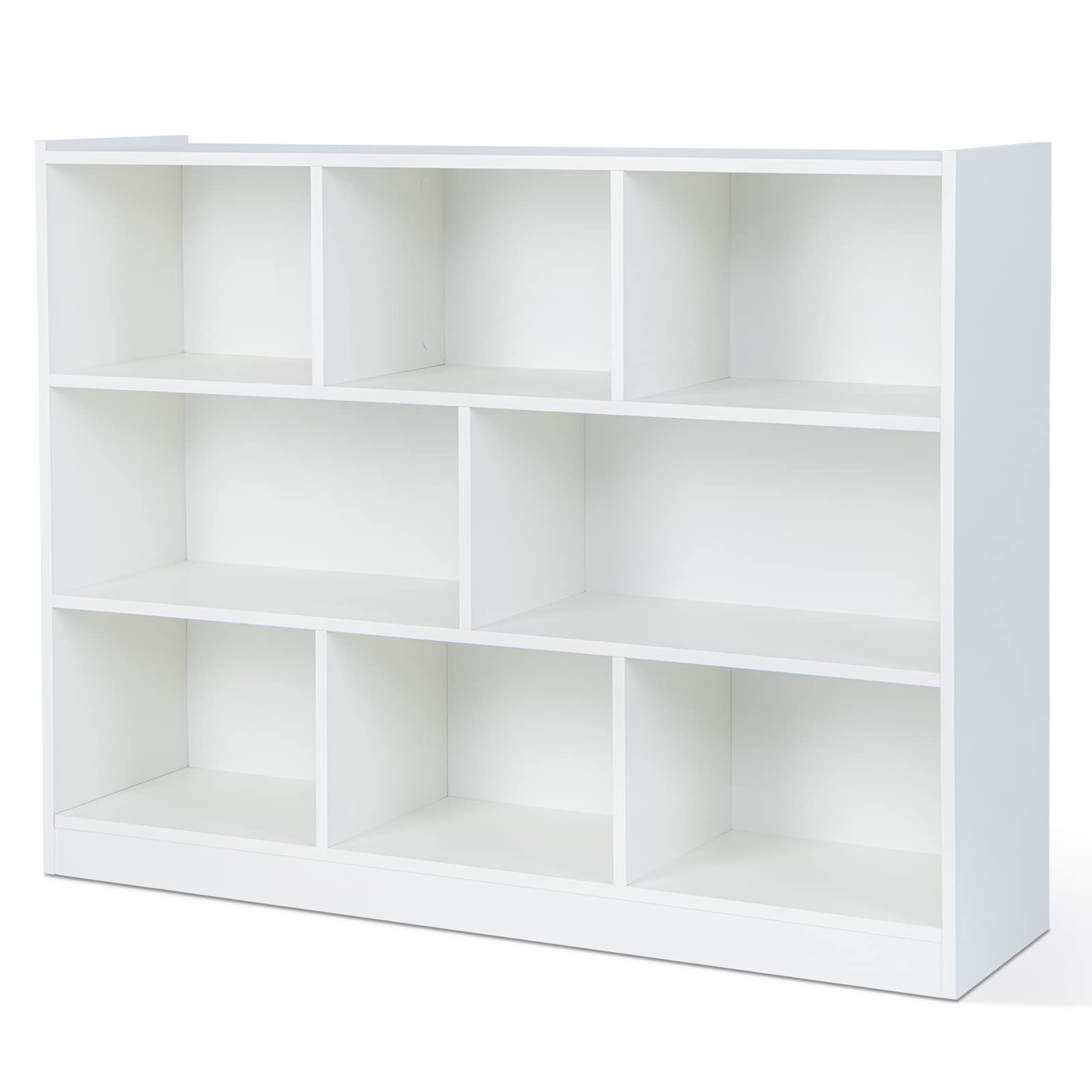 If you are looking for a favored storage cabinet to keep your stuff clean and tidy, our bookcase is your great option. There are 8 cubes in total to store and display daily supplies in different sections, which can well suit your storage needs. What's more, the wide cabinet top is a perfect platform to display some decorative items. Crafted of durable engineered wood and MDF, this bookshelf is sturdy and reliable for long-term use. With a simple and modern design, this 3-tier bookshelf adds a highlight to the living room, kid's room, bedroom, and study. It is a practical storage solution to organize your clutter, whether used as a bookcase or display shelving.