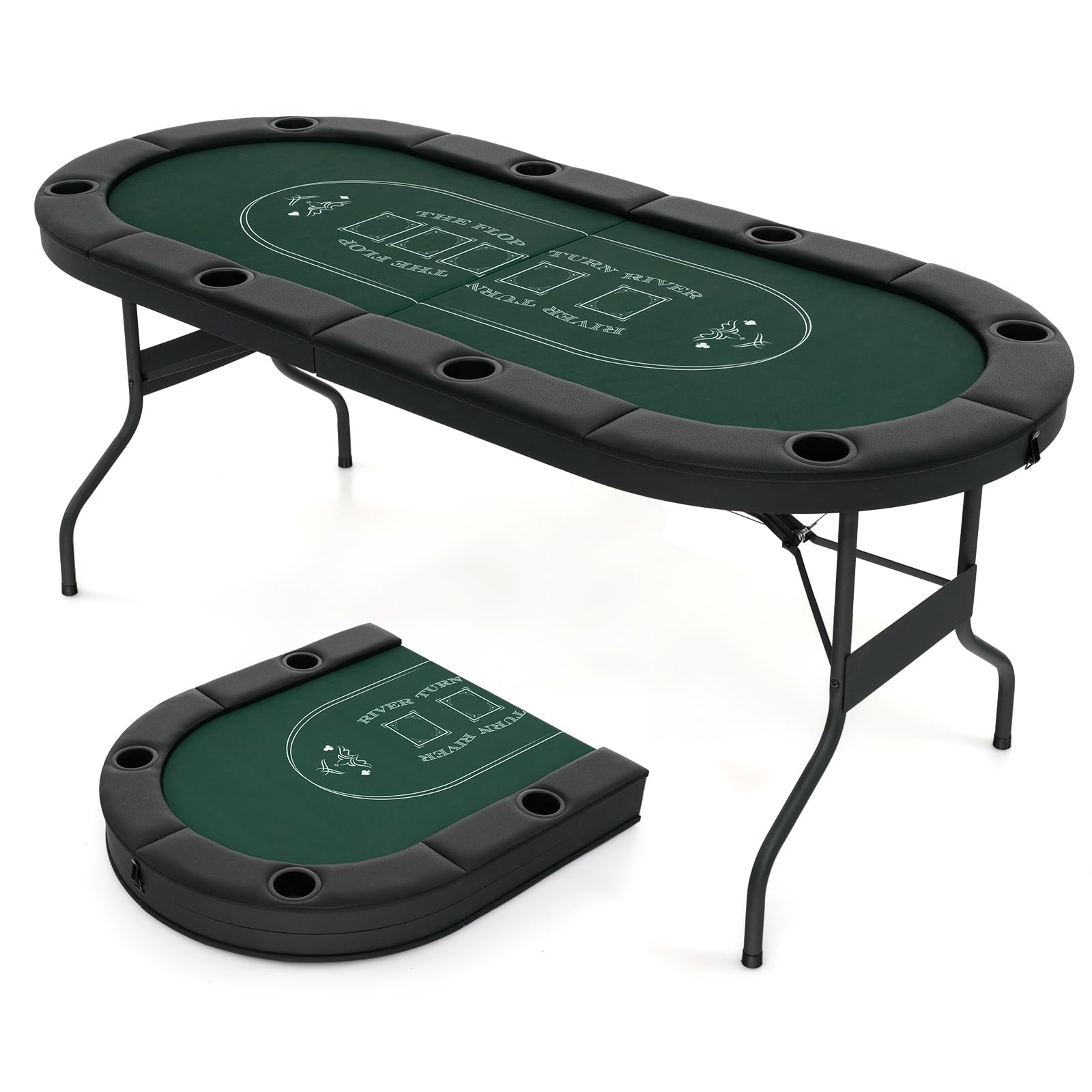 - [Multi-scene Application]: Enjoy playing with your family or friends! This folding poker table can accommodate 8 players to play many card games like blackjack together. Classic style enables it to be widely used in game party, family night, outdoor picnic, festival gathering, etc.