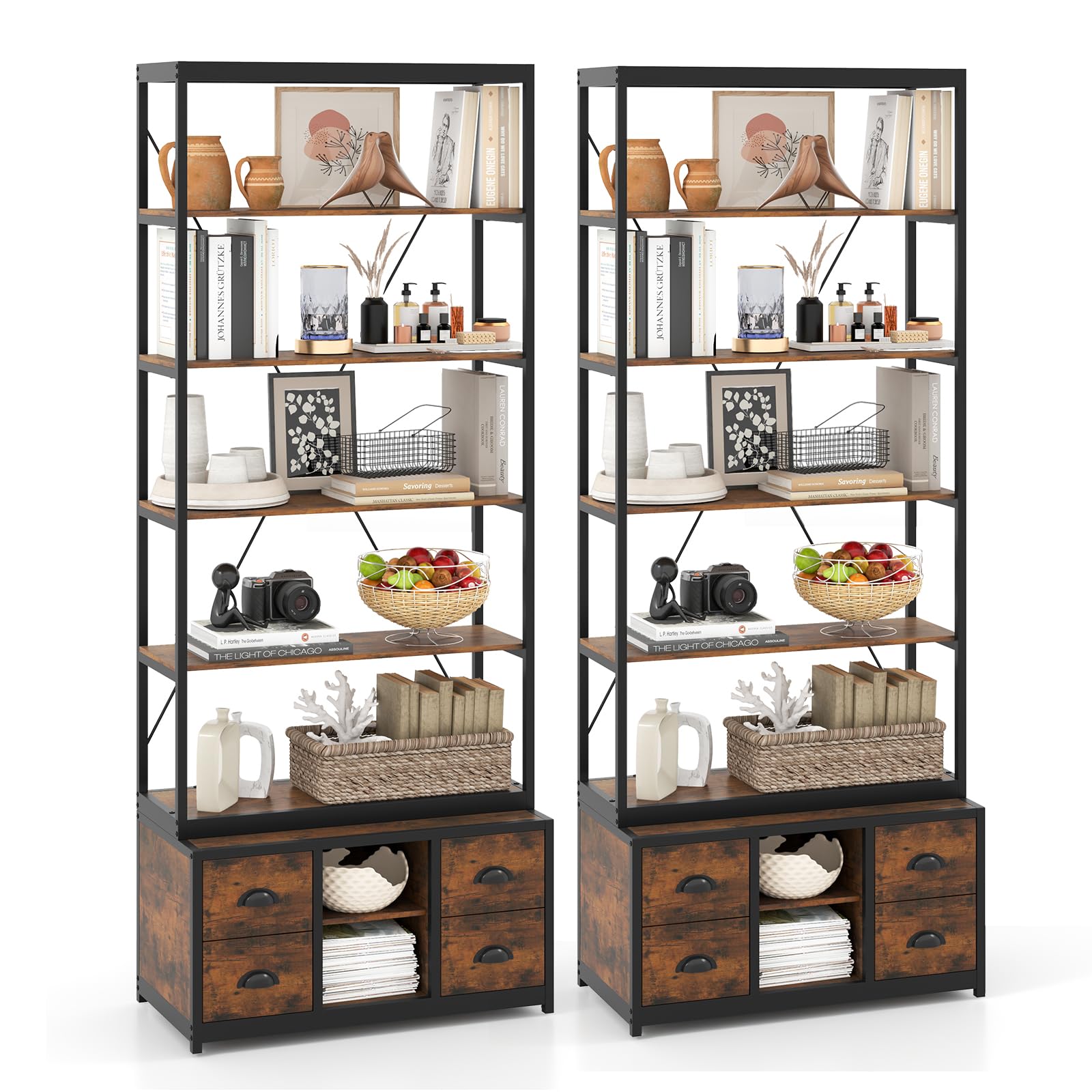 Discover the ultimate storage solution! Transform your space with our chic 8-tier open bookcase that not only showcases your beautiful collection of books and curios but also ensures everything is within easy reach. Dive into the practicality of our bookcase with its bottom cabinet, equipped with adjustable shelves and foldable drawers - an organizer's dream! From a striking warm wood grain finish against a bold black metal frame, this piece screams rustic modernity, making it a focal point in any room. Safety is also paramount, with a sturdy build that includes anti-tipping features perfect for lively homes. Don't miss out on this fascinating blend of elegance, robust design, and smart storage!