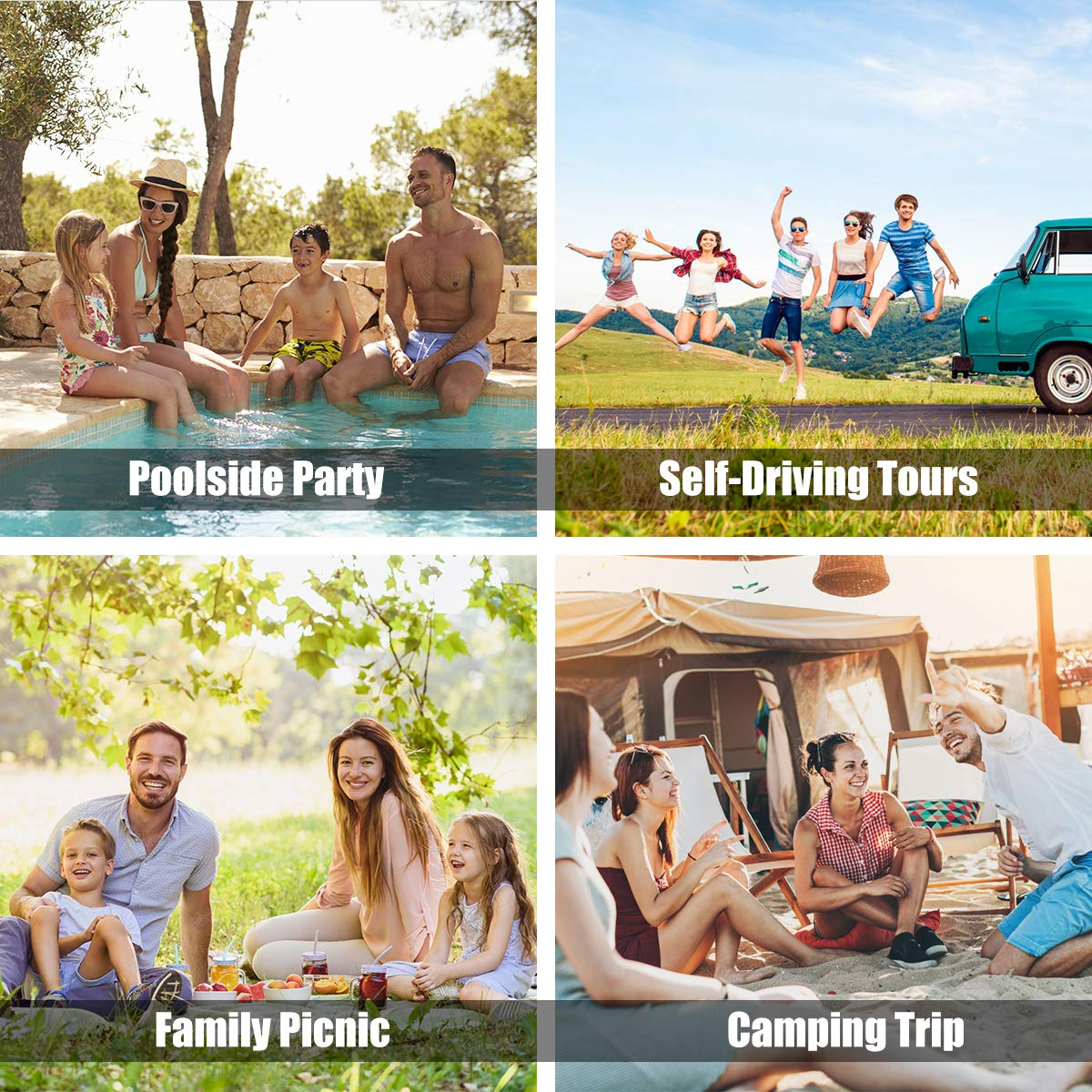 Holds up to 80 quarts (20 gallons), stores up to 70 cans/50 bottles