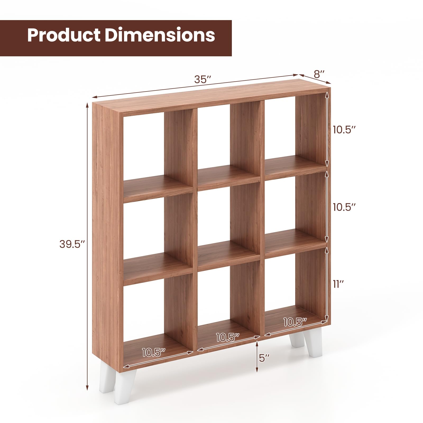 √ 9-cubby ample open storage space for easy access