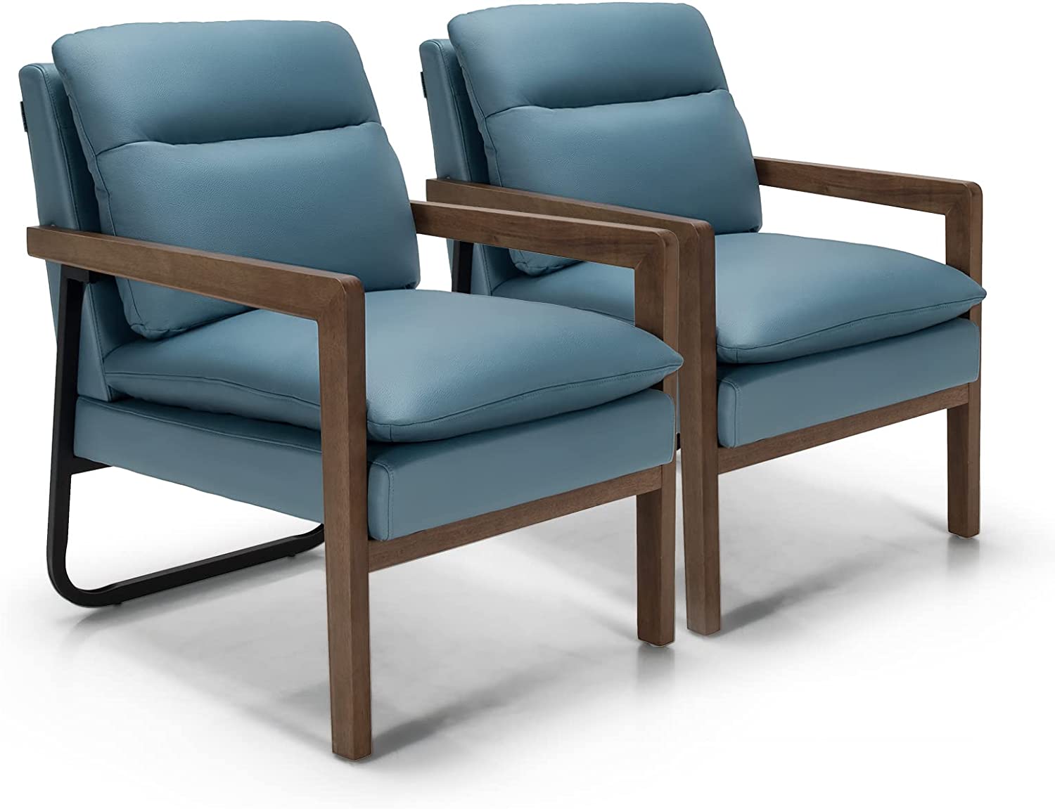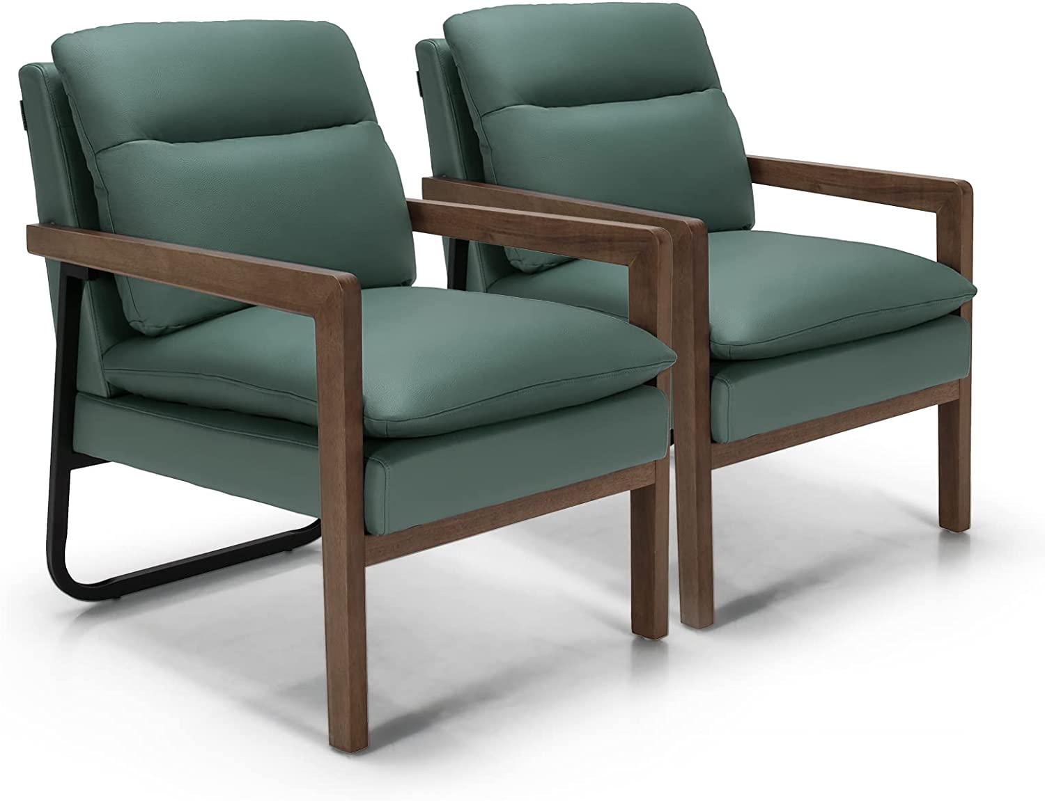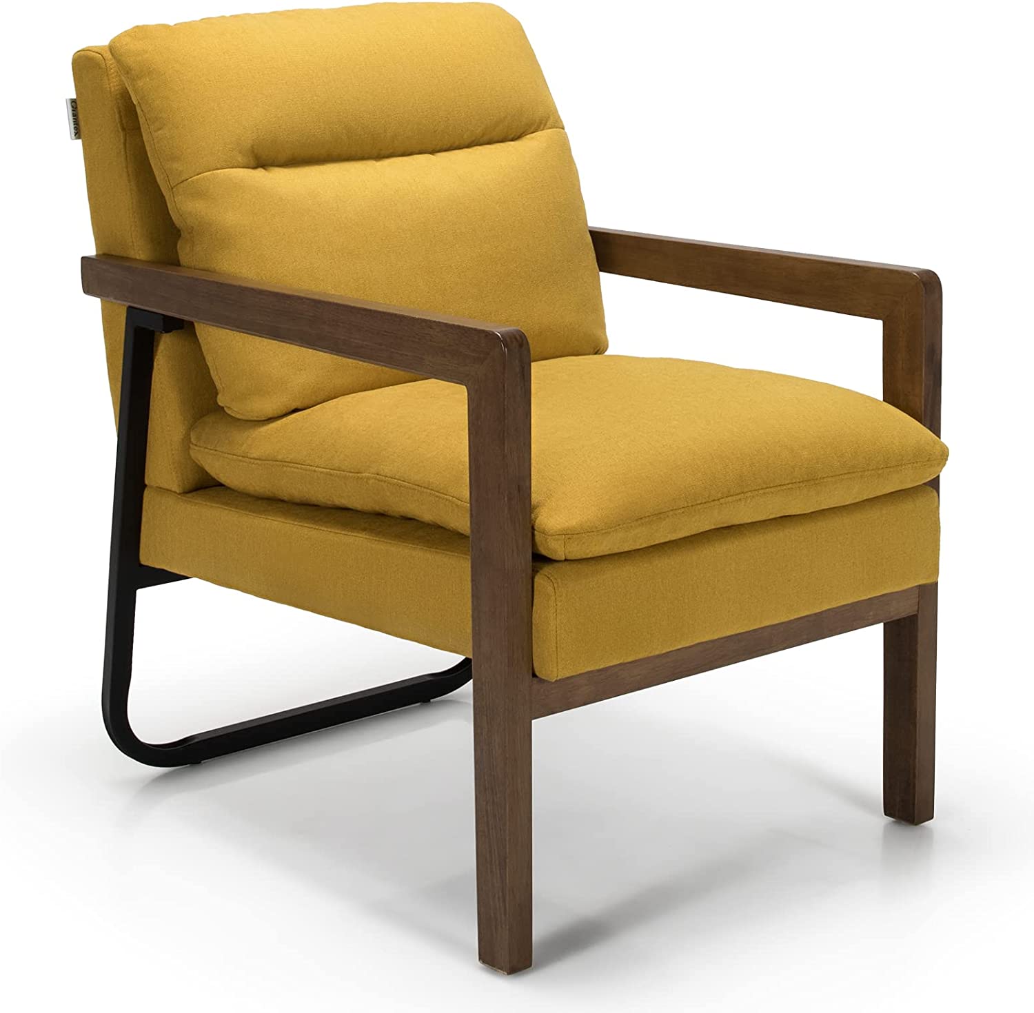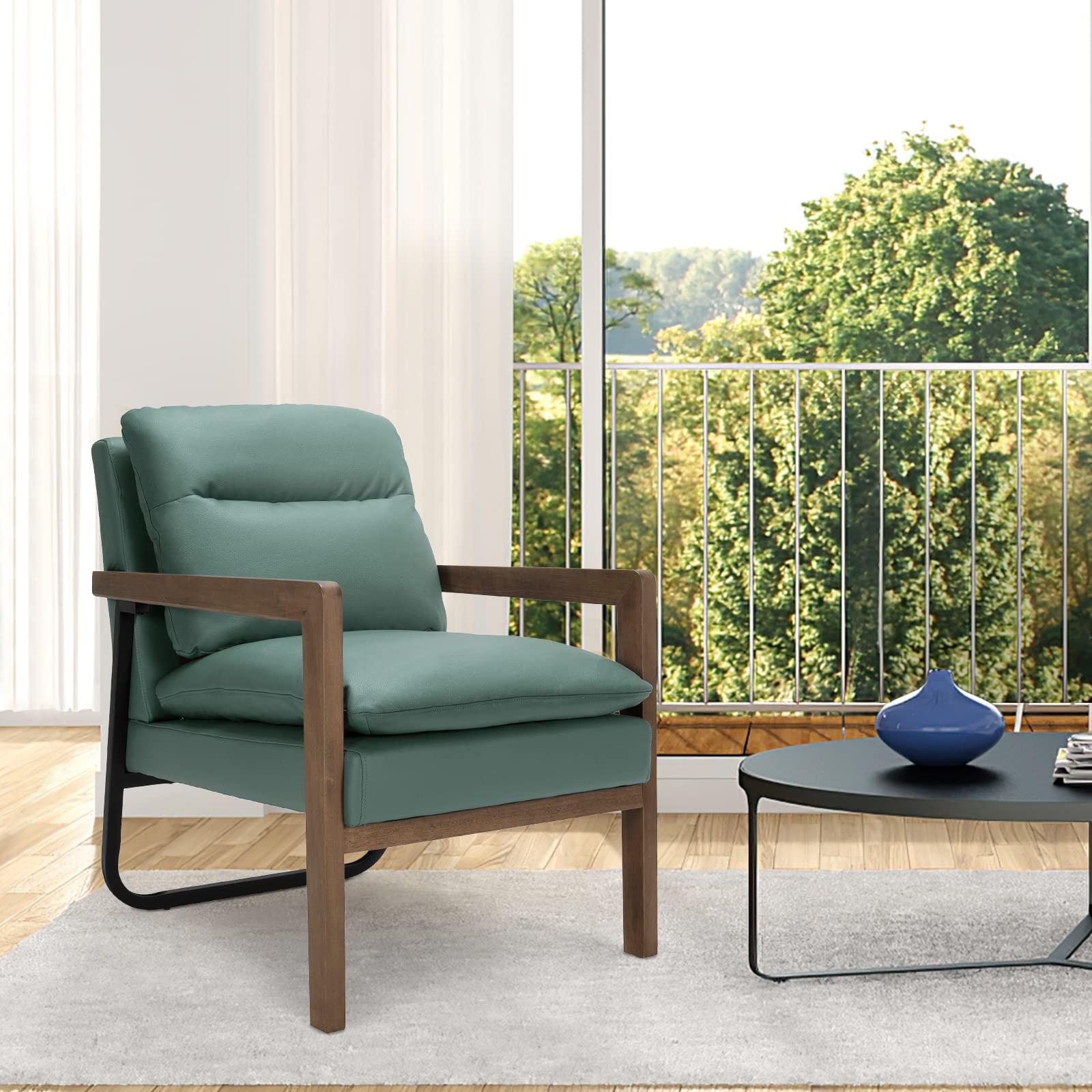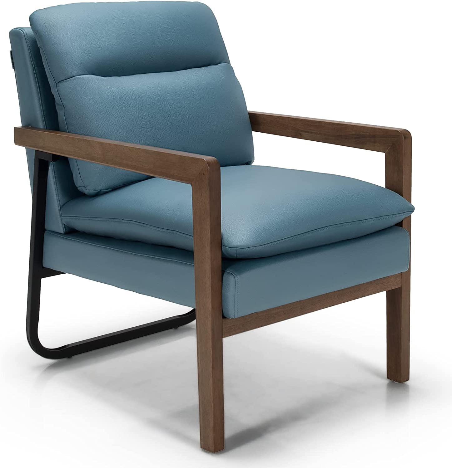 Featuring leather fabric(green and blue)/ dirt-resistant linen fabric(yellow) and a high elastic sponge, our comfy single sofa chair ensures a soft and comfortable sitting experience. It's designed with an overstuffed backrest, rubber wood armrests, a 103-degree reclining angle, and a 23" x 19" seat for better relaxation. Besides, it also has 2 removable cushions to add more comfort. With a wooden frame, rubber wood front legs, and rear steel bracket, our leisure chair can stay stable on the ground. Non-slip foot pads avoid floor scratches. Moreover, it's a perfect addition to the living room, study room, office, hosting room, and bedroom.