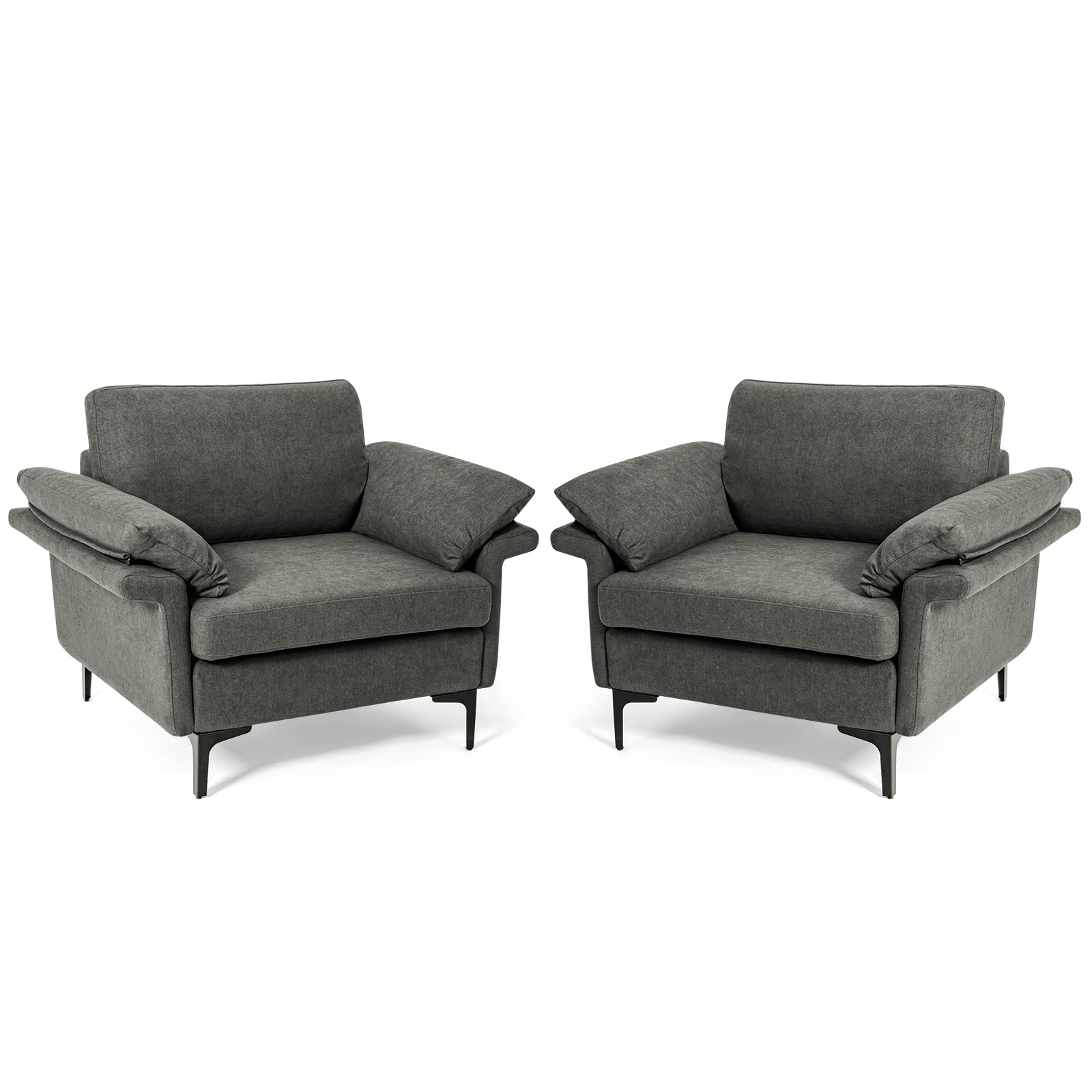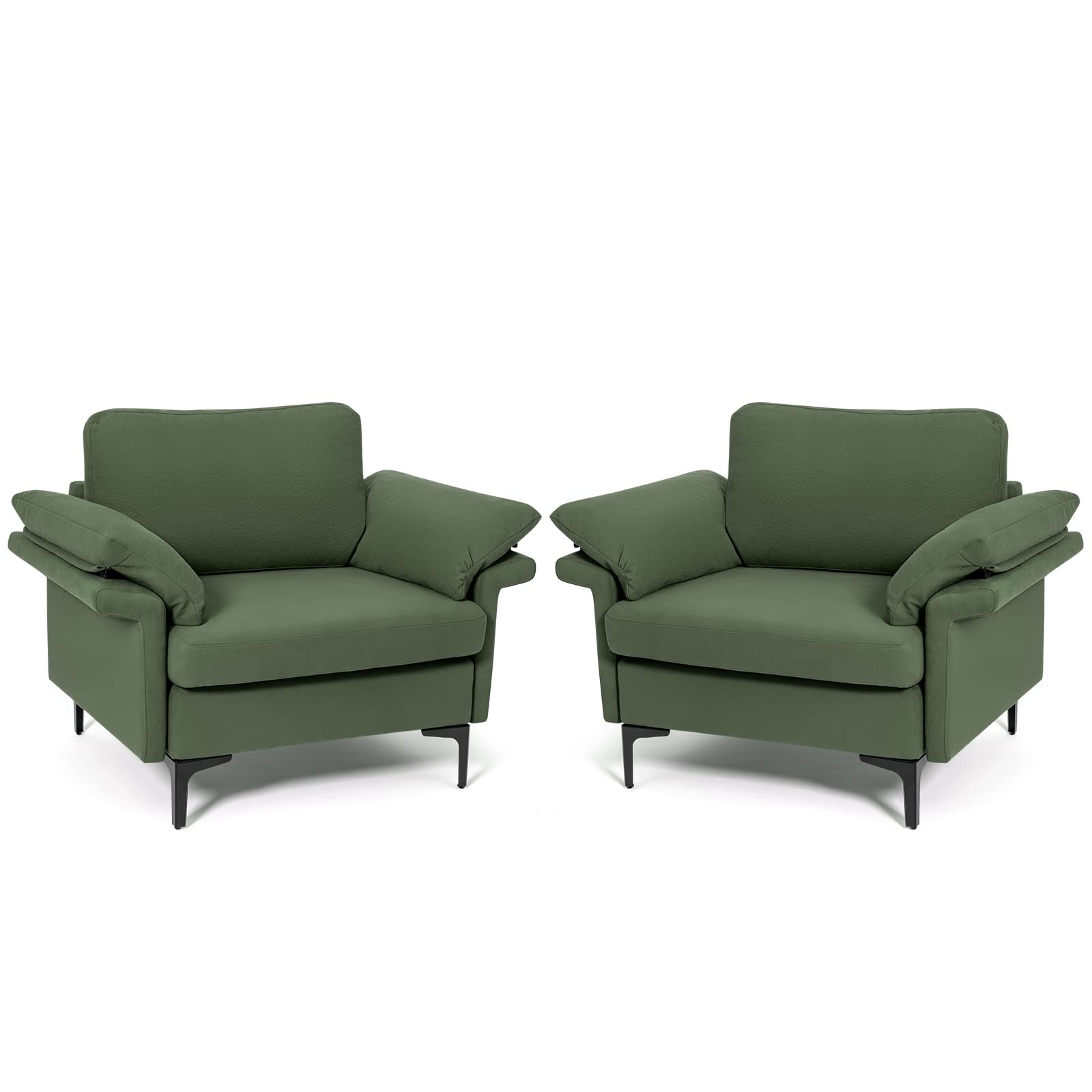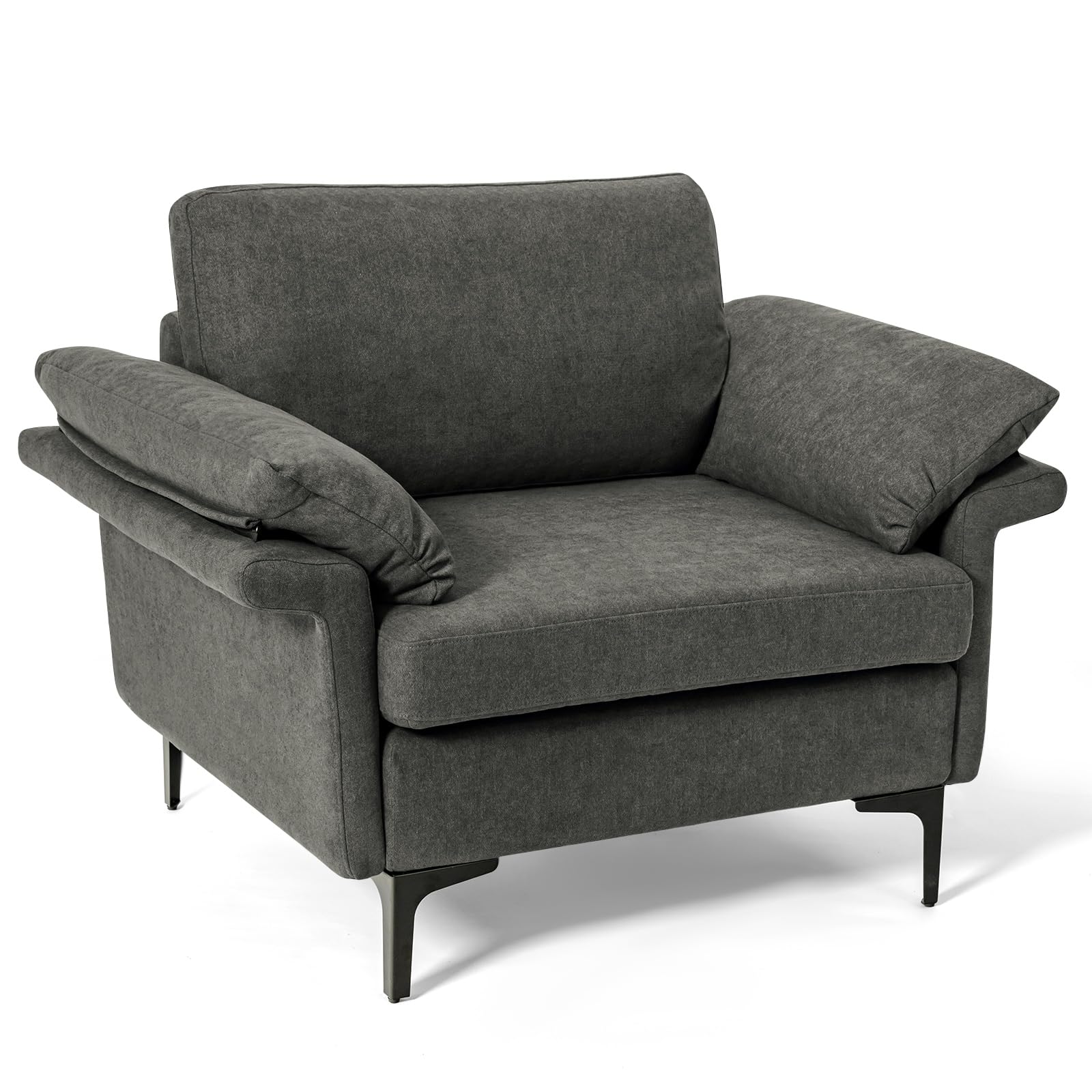 Enhance your seating options with our fabric accent chair that provides a comfortable and stylish addition to various spaces. This versatile chair is suitable for use in the living room, bedroom, office, and more. The soft upholstery, breathable fabric, and high-density sponge construction offer superior comfort and support. It features a distributed spring system for enhanced elasticity and durability, while the stable construction is bolstered by four sturdy metal legs for balance. Non-slip foot pads on the legs protect your floors. The chair includes a cozy back cushion and detachable armrest cushions for optimal seating comfort and relaxation.