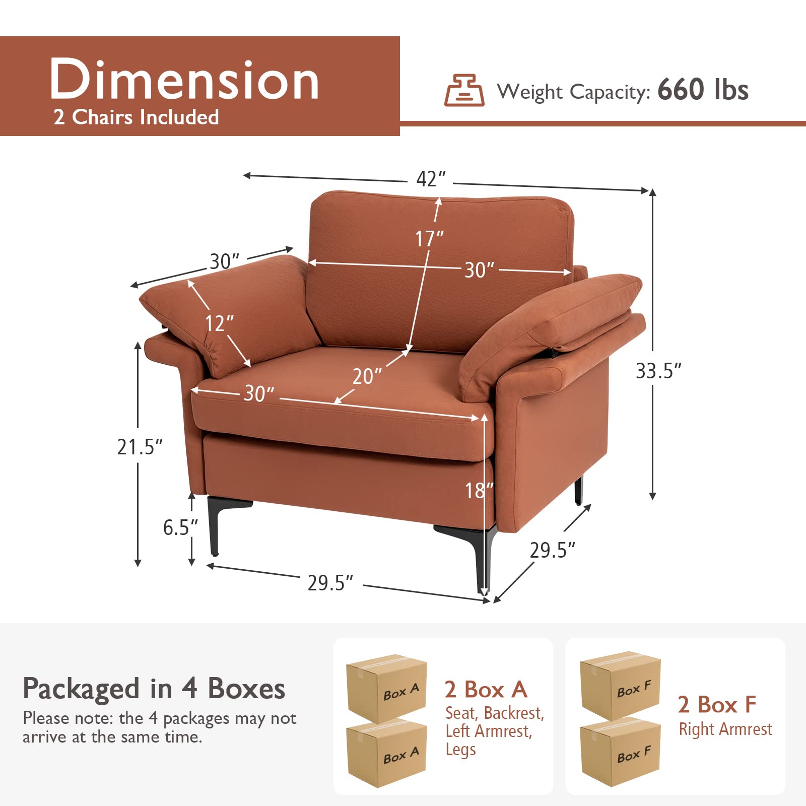 - 〖Easy Assembly with 2 Packages〗: Please note that each accent chair comes in 2 boxes�Dbox F contains the right armrest, while the remaining parts are in box A. Detailed instructions are included to guide you through the installation process.