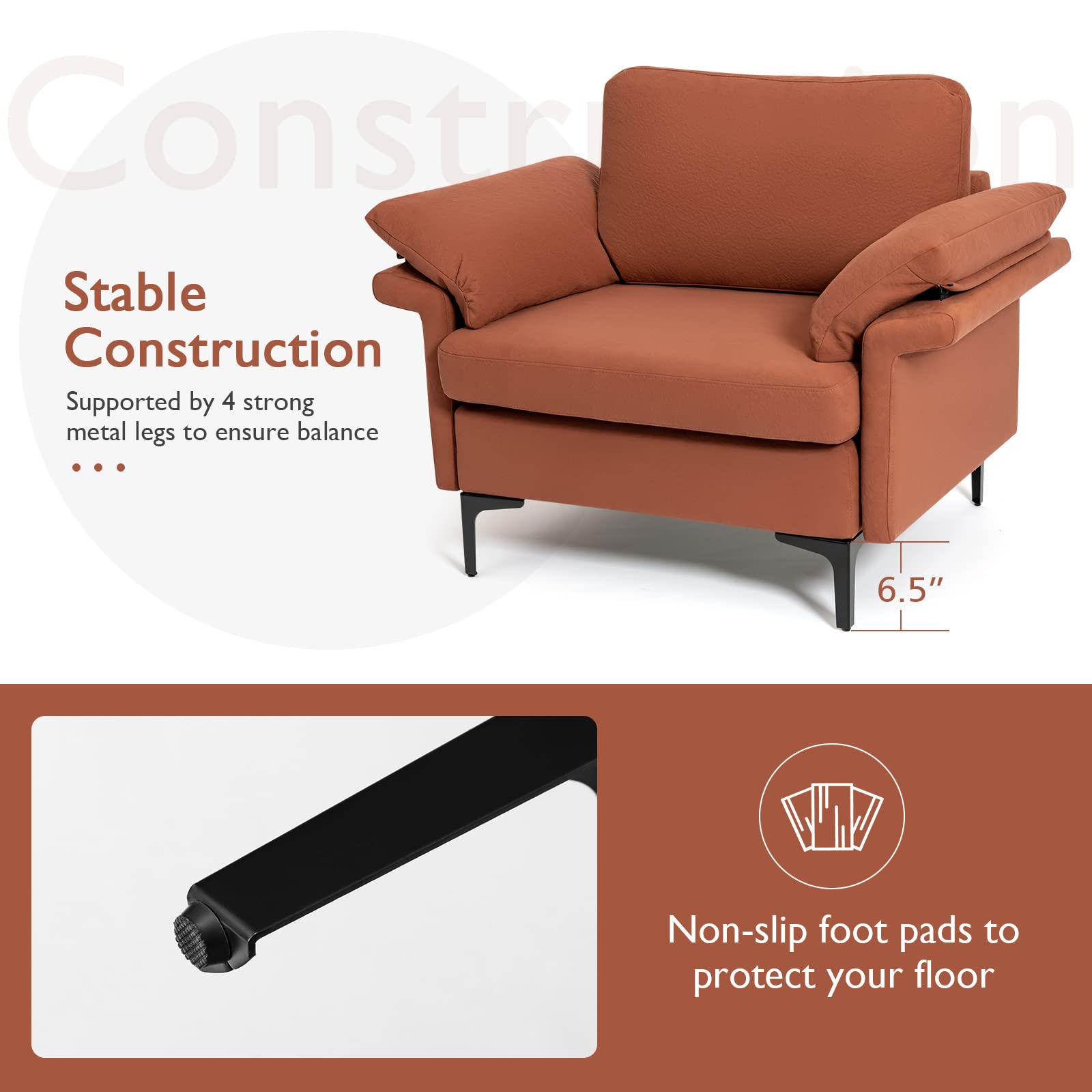 - 〖Premium Fabric Accent Chair〗: This accent chair is upholstered in cozy, skin-friendly lint fabric that offers softness, warmth, breathability, and excellent fabric absorption. Its dignified appearance complements mid-century style homes and offices.