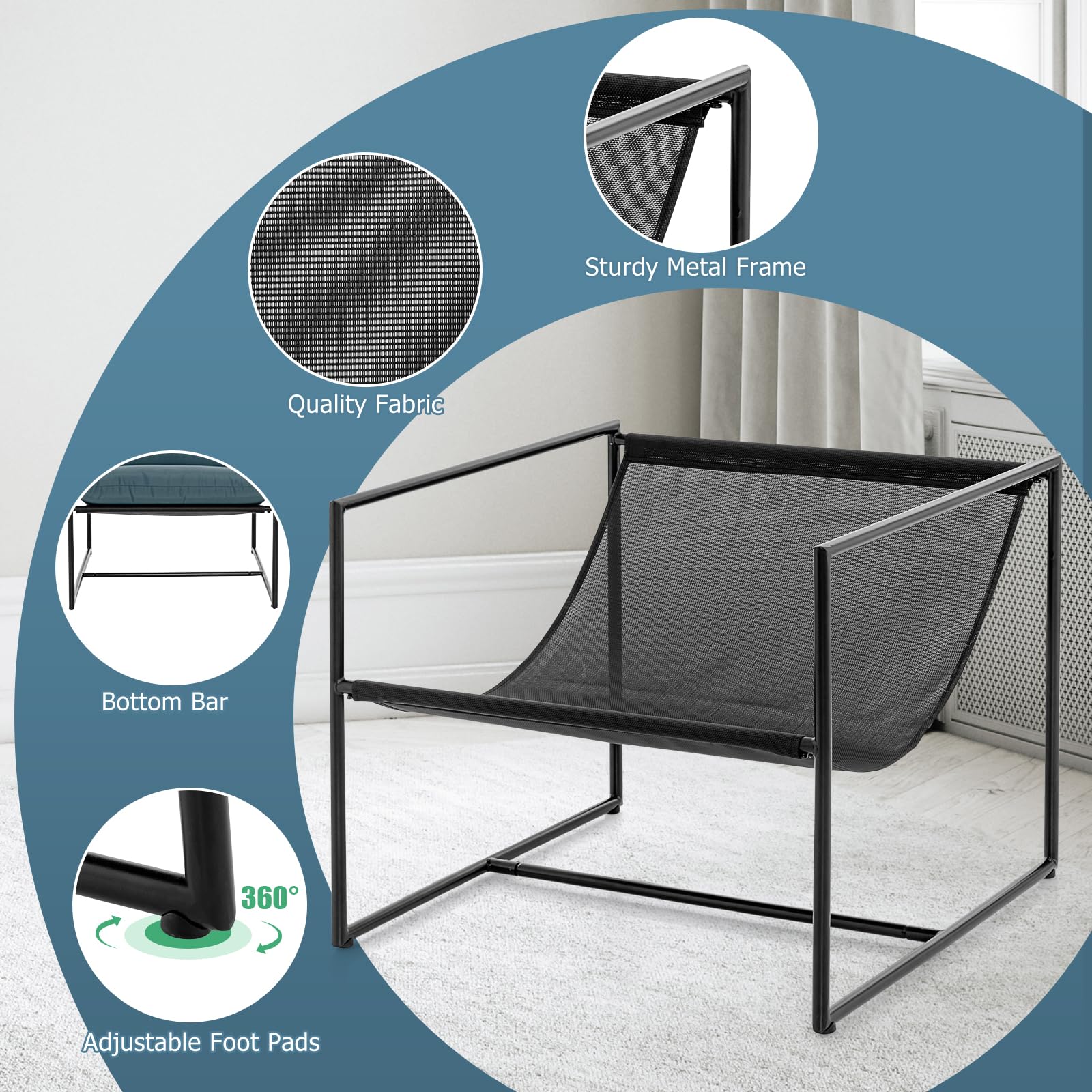 - Ergonomic Sling Chairs Set: Featuring ergonomic design, the sling accent chairs set fits the body line to give your back, hips, thighs, etc optimal support, which relieves spine pressure and allows you to enjoy hours of relaxation.