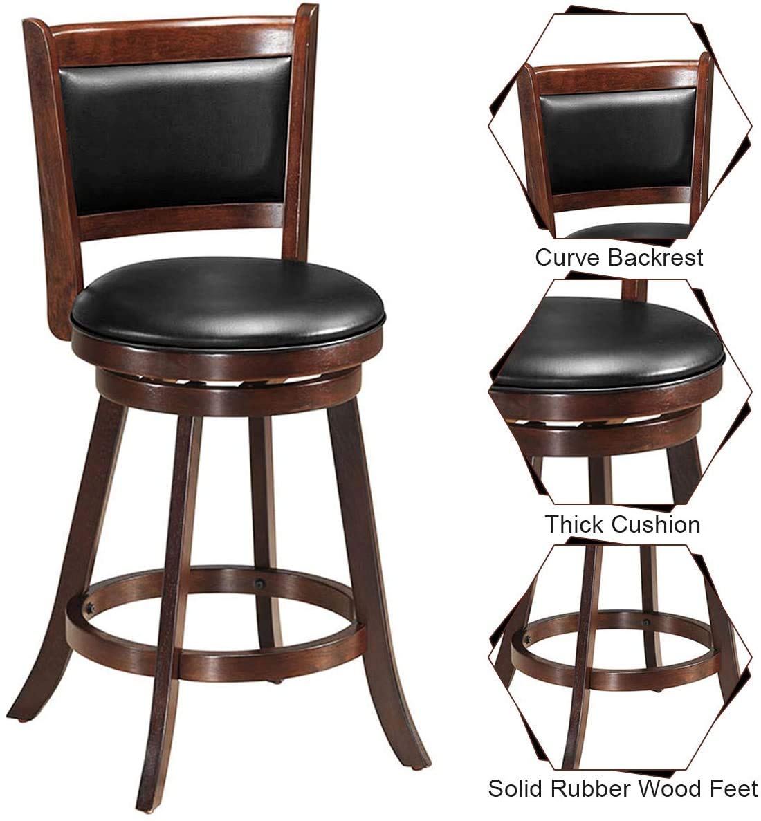 Giantex Accent Wooden Swivel Back Counter Height Bar Stool, Fabric Upholstered Design