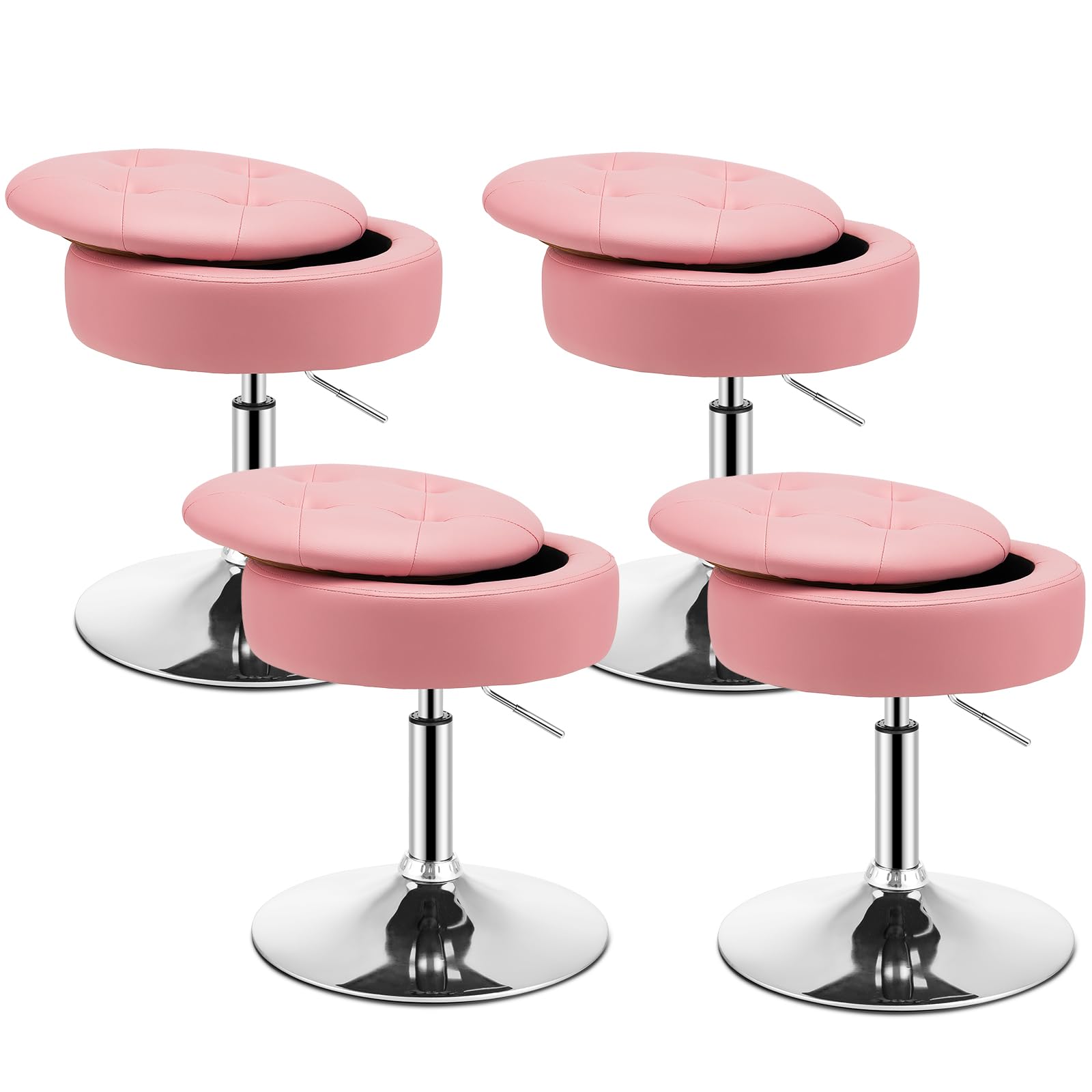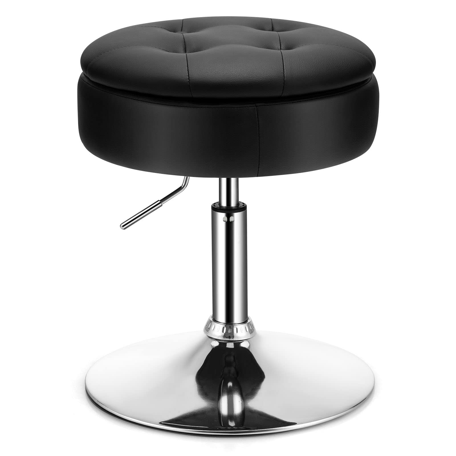 Giantex Adjustable Swivel Vanity Stool - 360° Swivel 20’’-26’’ Height Adjustable Tufted Round Storage Ottoman