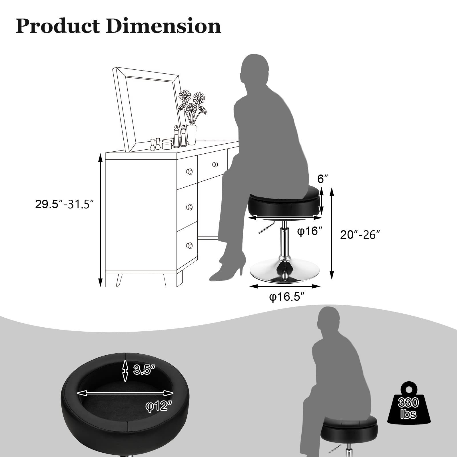 • [Strong Load Capacity of 330lbs]: Supported by steel base and gas rod, Giantex makeup stool offers a strong load capacity of 330lbs. More, it also combines perfect comfort. Inside, the vanity stool is filled with high-density sponge for great softness. Outside, selected PU leather features superior breathability to get rid of stuffy feelings.