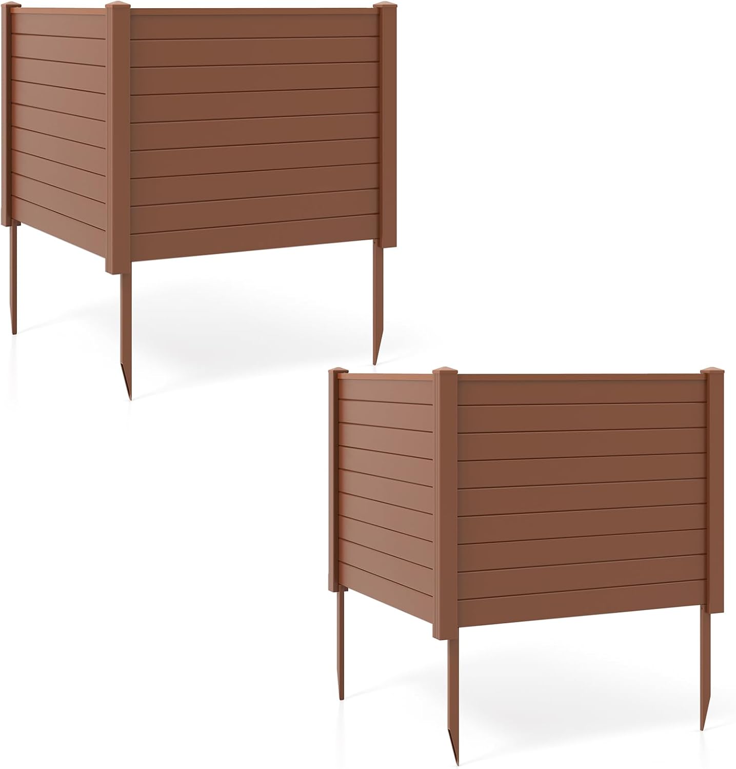 This outdoor privacy fence includes 2 large panels and you can connect them in 2 ways according to your own needs. Moreover, you can get additional panels to create more combinations. The privacy screen is made of premium PVC material that is characterized by great weather resistance, rust resistance, and excellent durability. And the surface is waterproof and smooth so it is easy to clean. Besides, equipped with 3 stakes, the privacy fence can be firmly fixed into the ground which would not easy to be damaged by the wind. Thanks to the simple structure, you can set up it easily. It can be a privacy screen, trash can enclosure, air conditioner fence, pool equipment fence, garden fence, or pet fence, meeting your multiple needs.