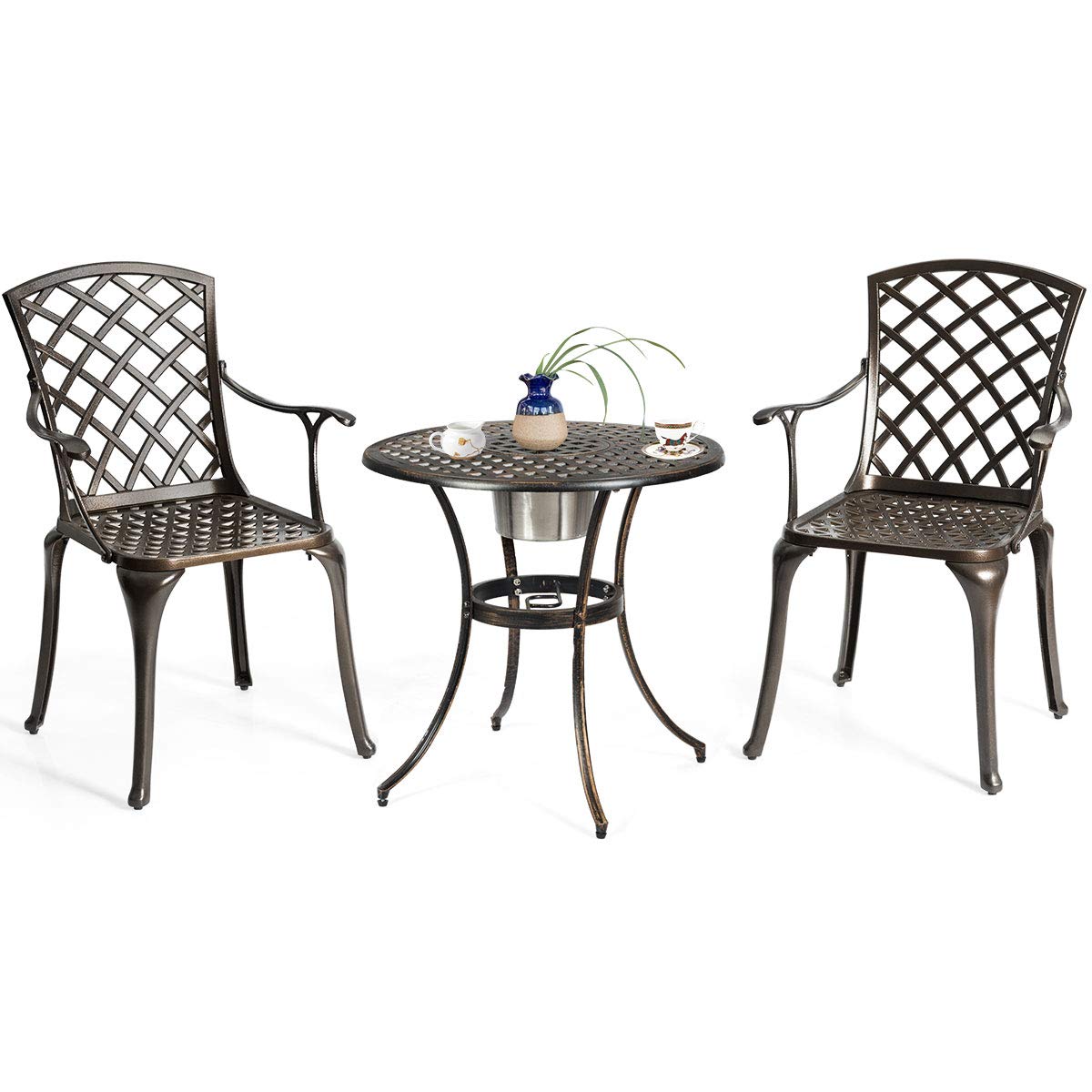 Are you finding some suitable chairs tomatch your dining table or other furniture? Our 2 pieces chairs may help you to solve this problem. These chairs have cast aluminum solid construction to ensure large weight capacity and durable use. Every detail is designed for incredible comfort. The curved designed of backand seat offer ergonomic support while relieving tension and allowing yourmuscles to relax. And at the bottom ofevery foot, there is an adjustable knob to help you to keep the chair stable.They are not only a perfect decor to your house but also create morecomfortable outdoor experience for you to be used for most outdoor scenes. It's the ideal choice for outdoor amusement, such as garden, porch or yard. Enjoy your great time with your family or your valued friends on theseexcellent outdoor chairs. Don't hesitate to buy them.