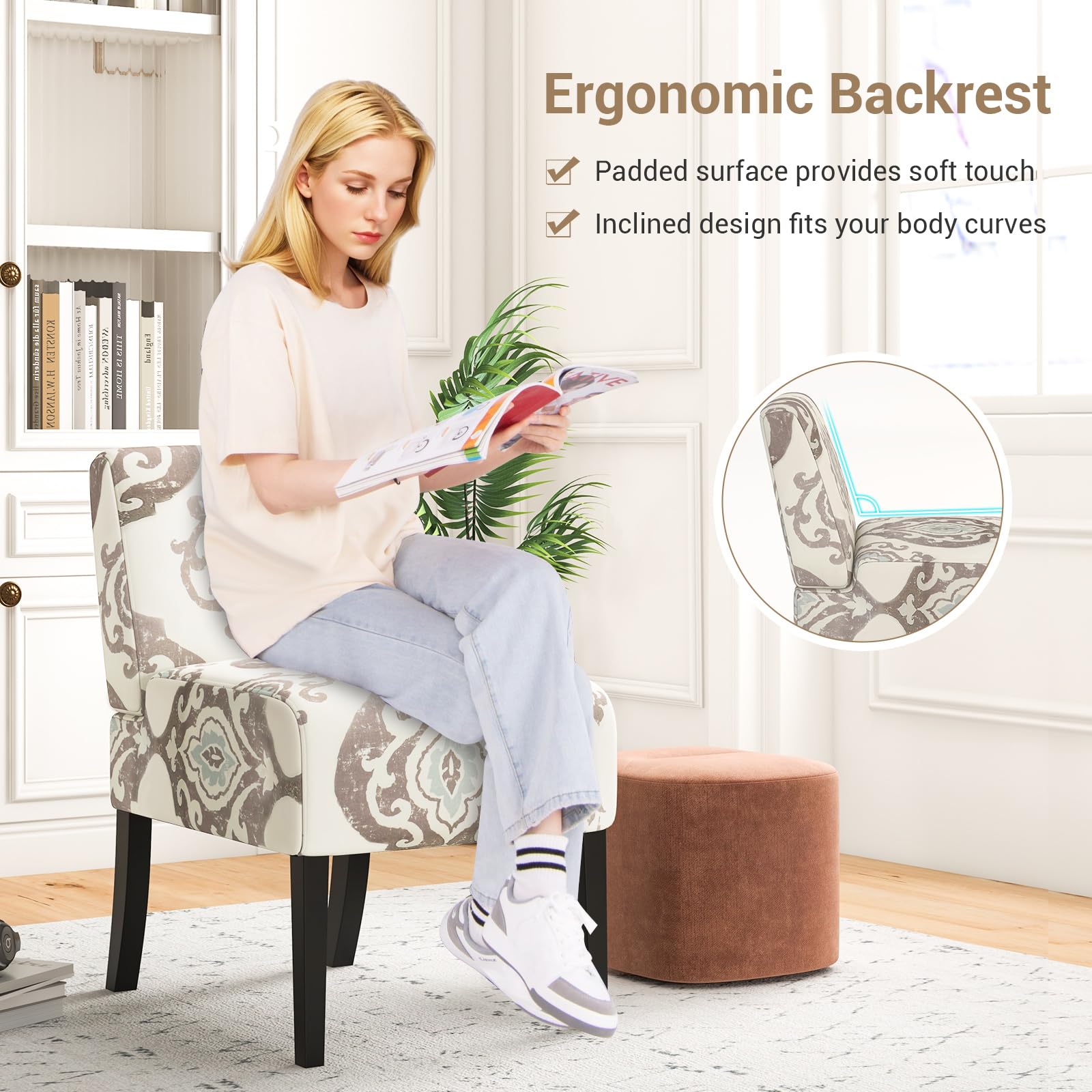 Immerse yourself in luxurious comfort with the elegant armless accent chair. Sink into the ergonomic backrest, cradling your body while offering unparalleled support. This armless chair also features thick sponge padding and breathable polyester fabric that ensures a cozy feel. The sturdy rubber wood legs provide a solid foundation, capable of holding up to 400 lbs, while the anti-slip foot pads offer extra stability and safeguard your floors. This versatile piece is perfect for any setting, whether it’s your office, living room, or reception area, creating a sophisticated space for relaxation or conversation. With a quick assembly process, complete with detailed instructions and all necessary accessories, enjoying this living room chair is effortless.