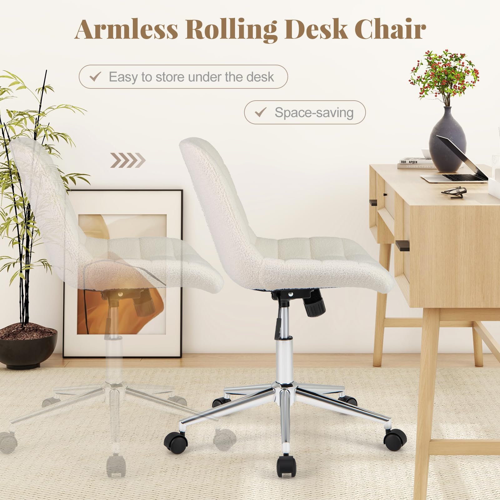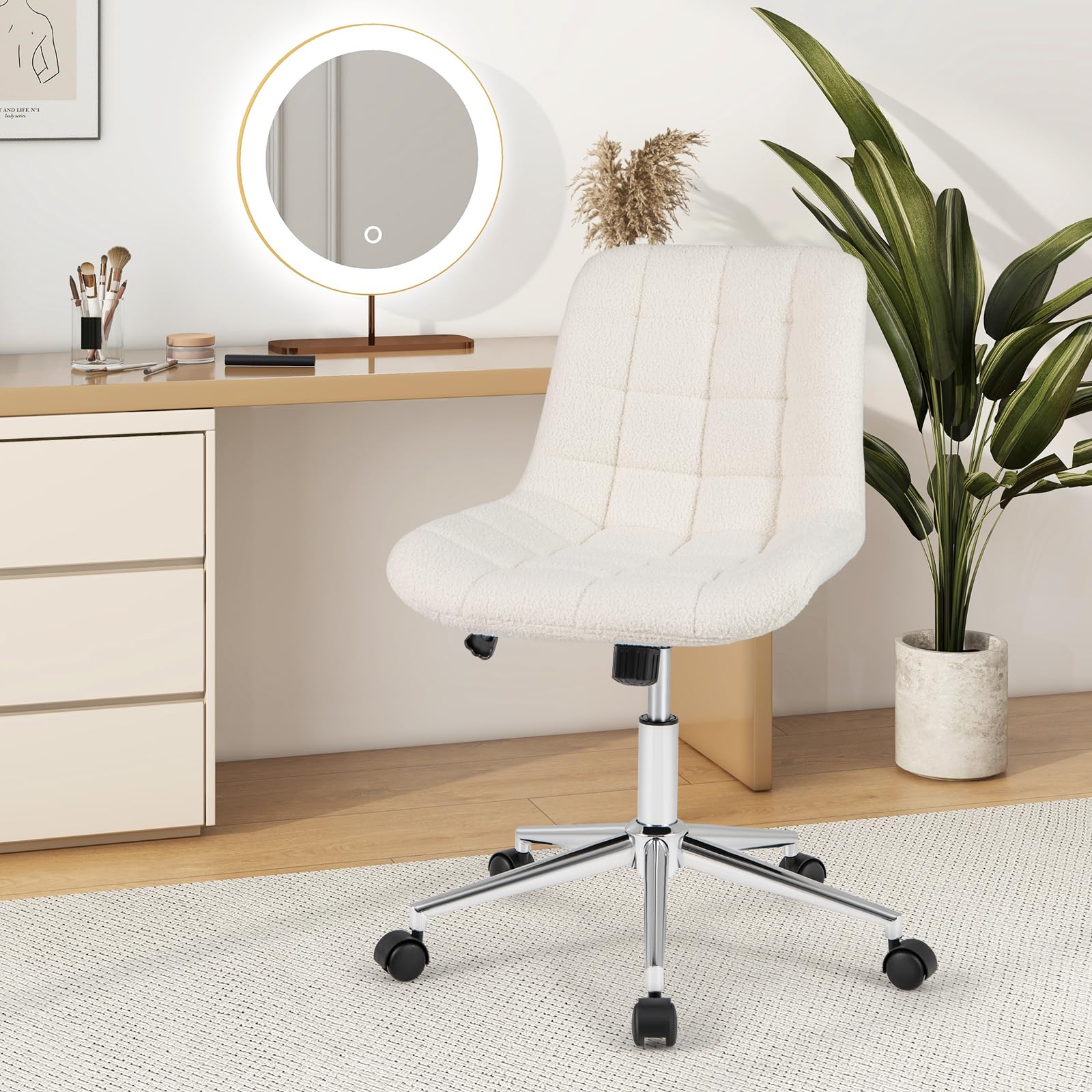 Elevate your workspace or vanity area with our armless desk chair.