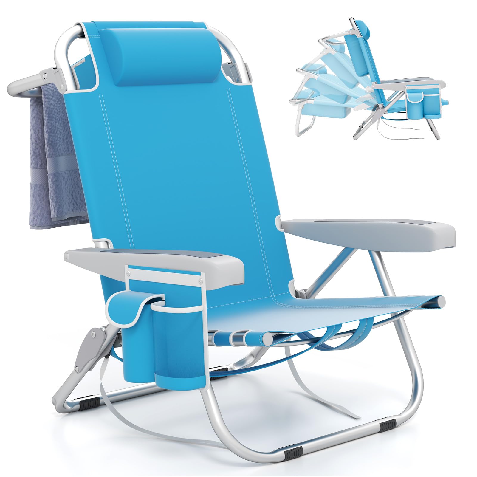 Giantex Backpack Beach Chair - Foldable Camping Chair with 5 Adjustable Position