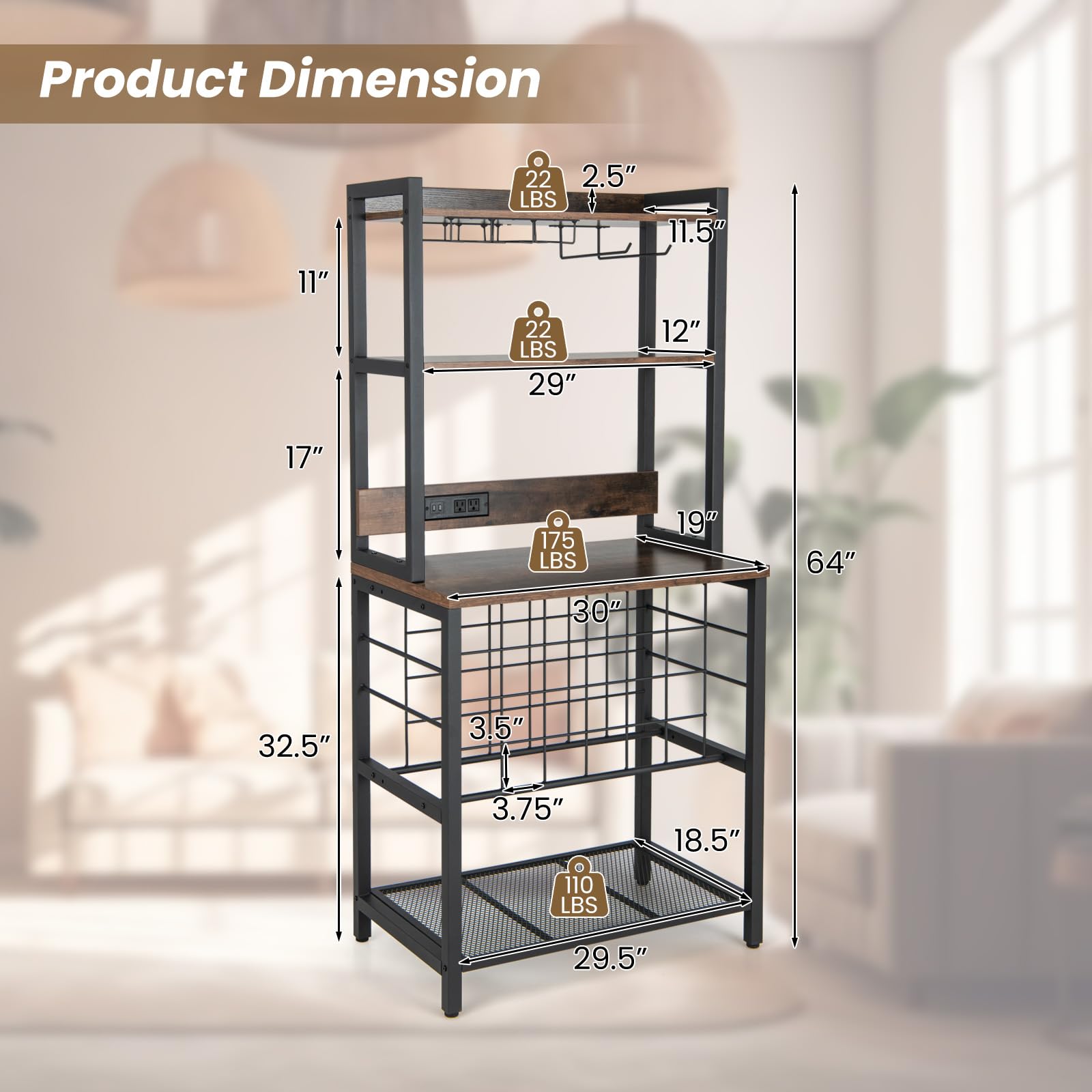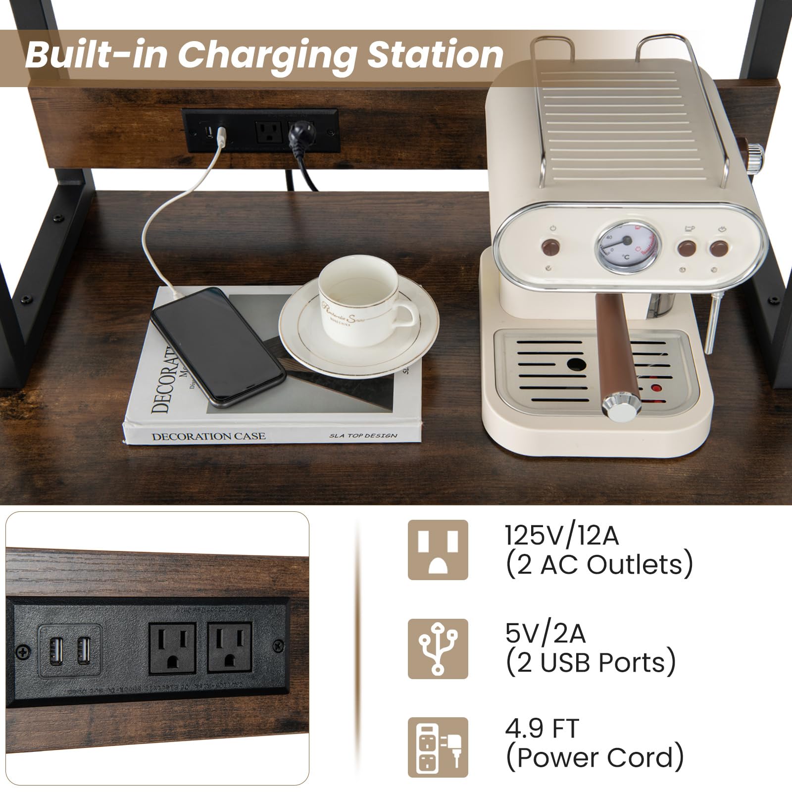 - [Built-in Charging station]: This kitchen storage organizer features 2 AC outlets (125V/12A) and 2 USB ports (5V/2A) to conveniently charge the coffee maker, bar accessories and other electrical appliances. Besides, the power cord is 4.9ft long for added flexibility.