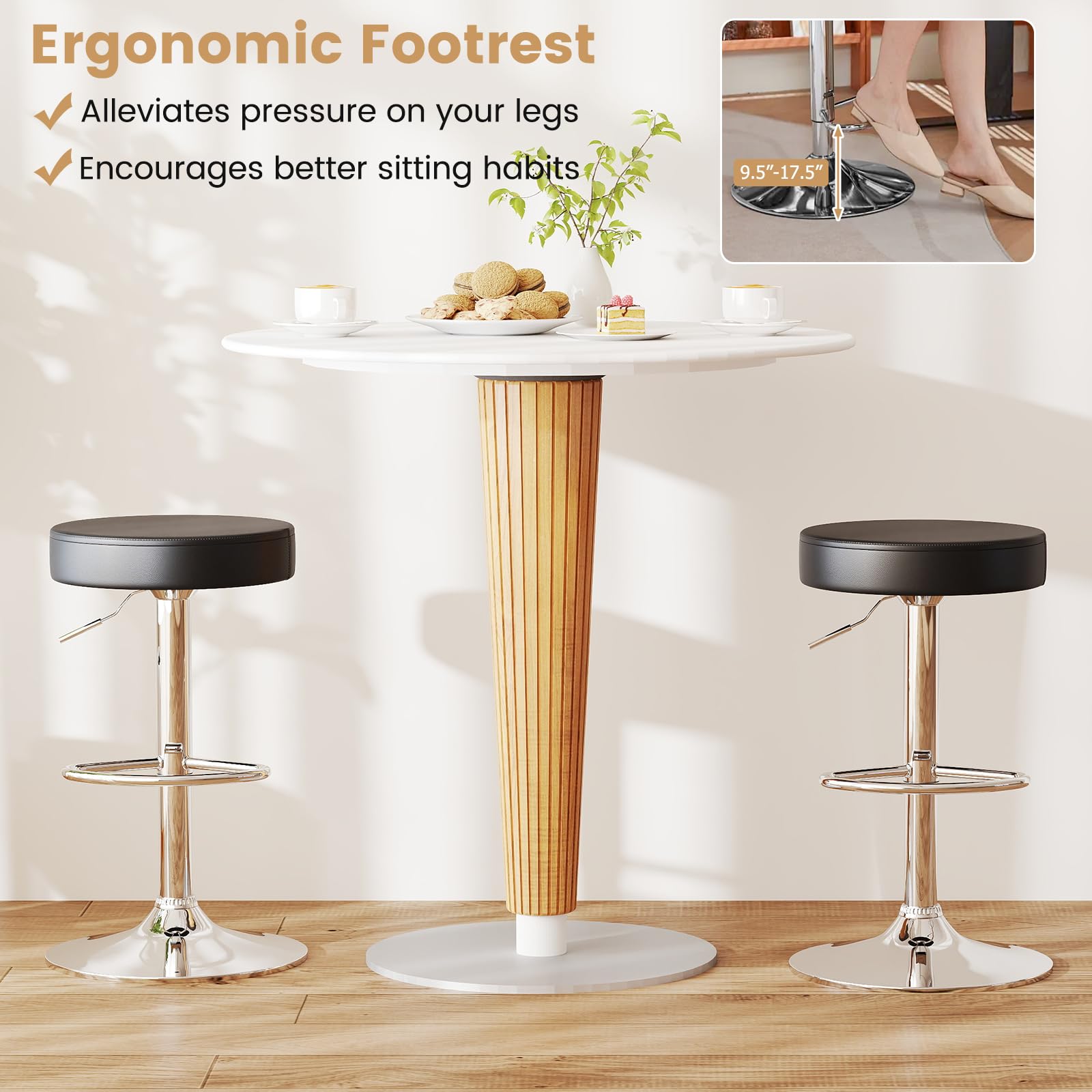 Crafted for comfort and elegance, our pub stool set boasts cozy seats cushioned with soft sponge and wrapped in PU leather for a touch of luxury. Each bar stool’s height adjusts from 25" to 33", suitable for people of different heights. Enjoy free 360° rotation on each backless bar chair, enhanced by a supportive footrest that encourages better sitting habits. Built for durability, each pub chair flaunt a wide base and non-slip rubber ring, ensuring stability and a weight capacity of 250 lbs. For your preference, the bar stool set is perfect for kitchen, bar, cafe, and more. The recommended table height is 35"-43".
