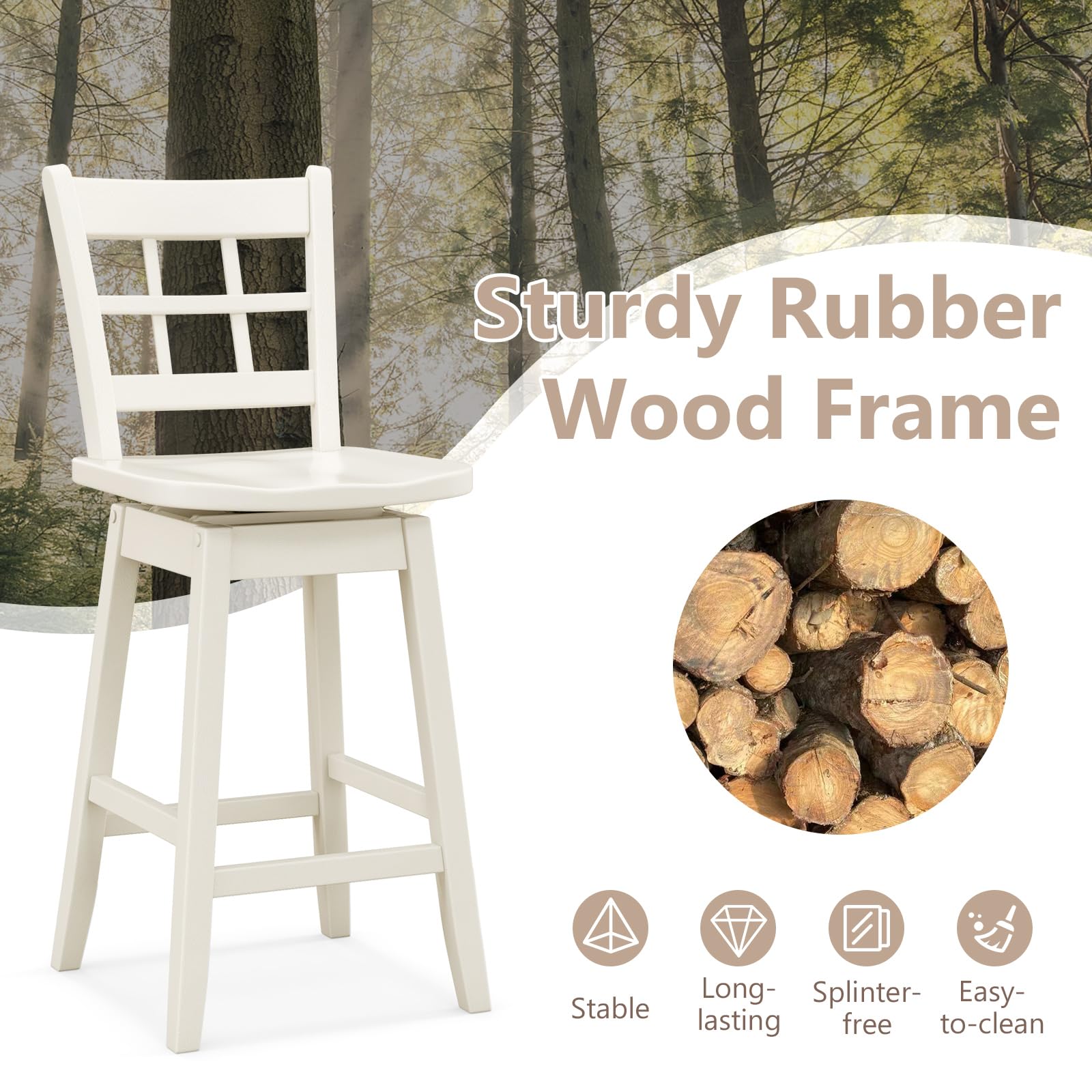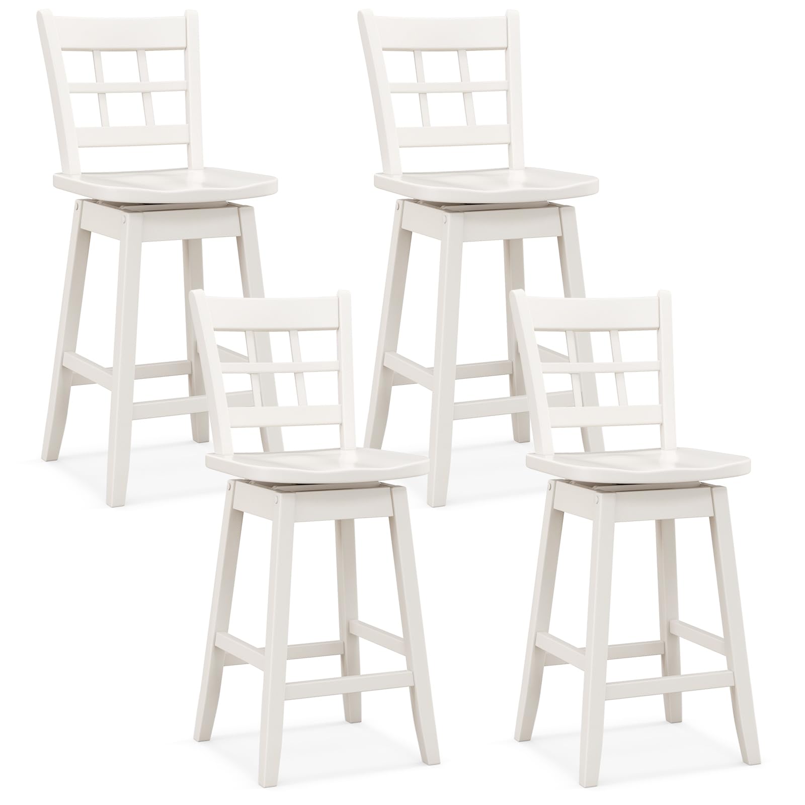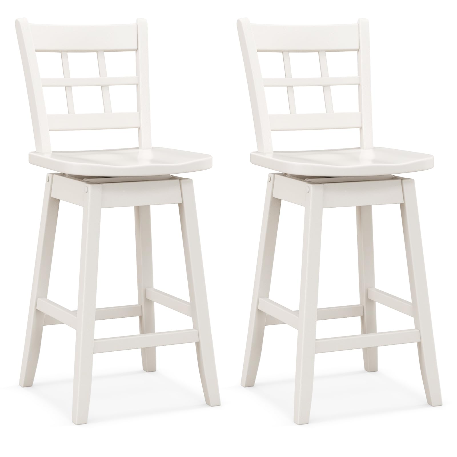 Experience unparalleled comfort with these ergonomic bar stools, featuring a specially designed 6-grid hollow back and contour fit seat, ensuring you stay comfortable through every meal and meet-up. Say goodbye to static seating with the smooth 360° swivel action that keeps you in the flow of conversation effortlessly! Constructed from high-quality rubber wood, these counter stools don’t just look classy—they’re built to last through every family gathering and casual hangout. Plus, the built-in footrest offers an irresistible invitation to kick back and relax. At an ideal seat height of 24.5", these stools can fit seamlessly into any setting—from kitchen islands to chic bars. Bring home the blend of durability, comfort, and style you deserve!