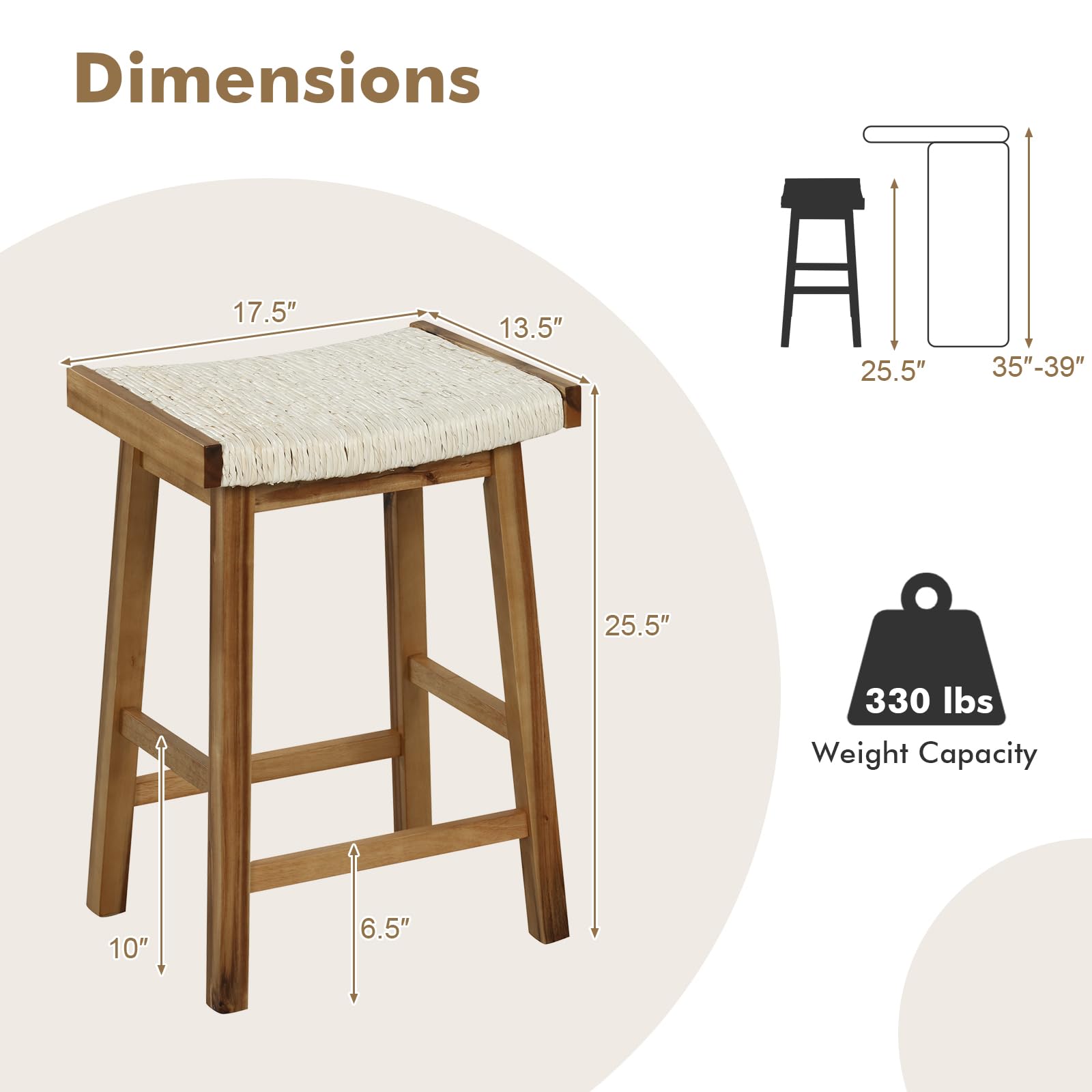 - Easy Assembly & Perfect Size: The numbered parts and concise instructions are provided for easy assembly. With overall dimensions of 17.5"L x 13.5"W x 25.5"H and a seat height of 25.5", each wooden bar stool matches perfectly with the 35"-39" counter height.