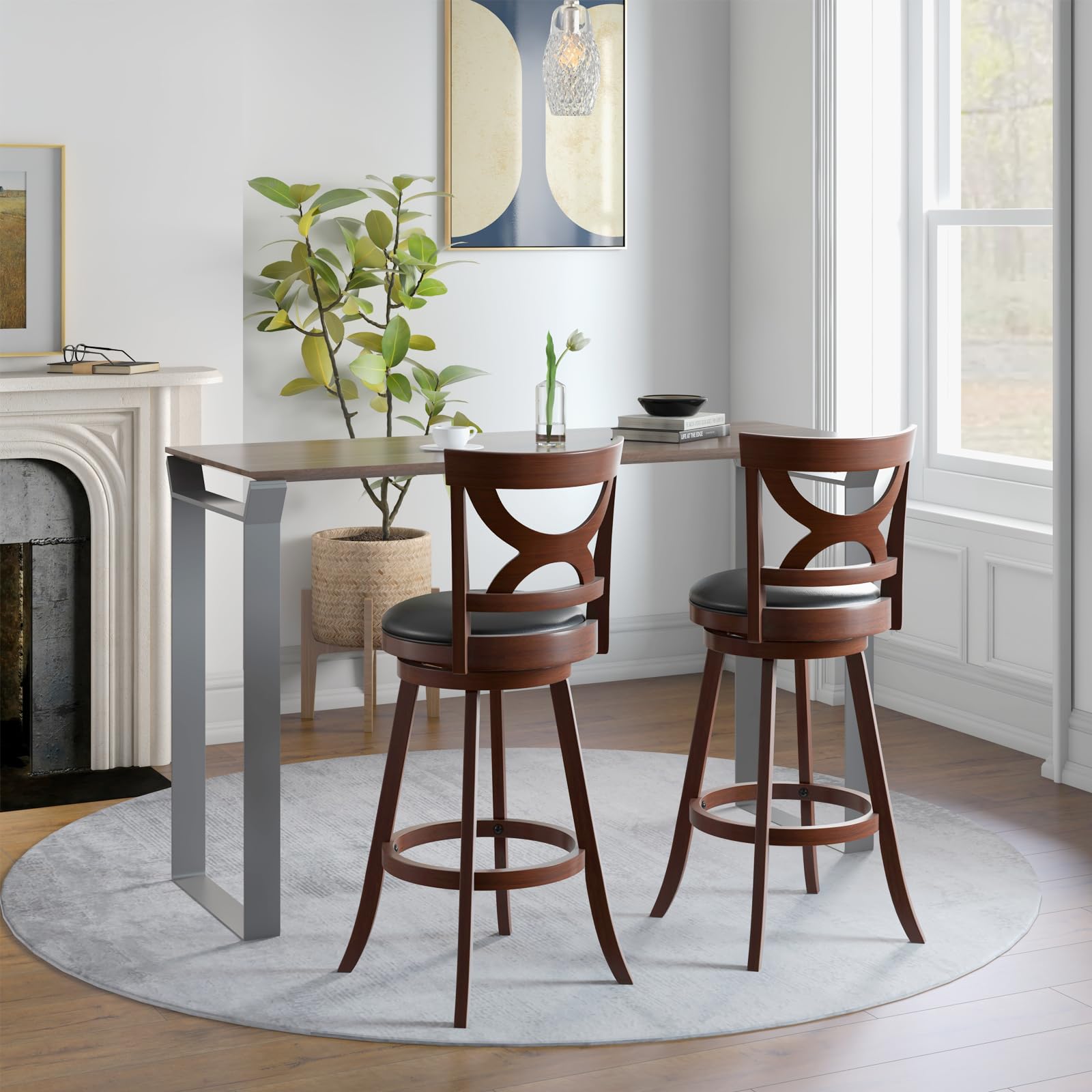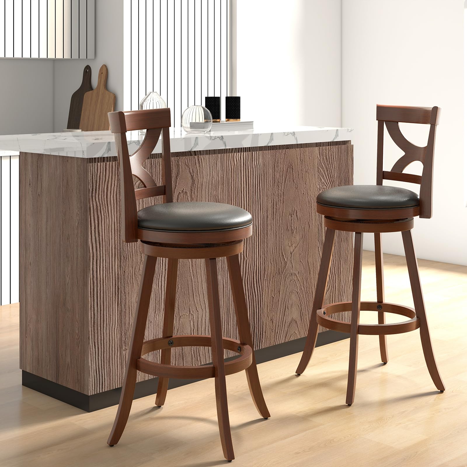 - [Wide Range of Application]: Featuring a rustic appearance, the 360° swivel bar chairs coordinate well with other furniture. As a result, it is up to you whether to place them in the home bar, kitchen island, dining room, or other places.