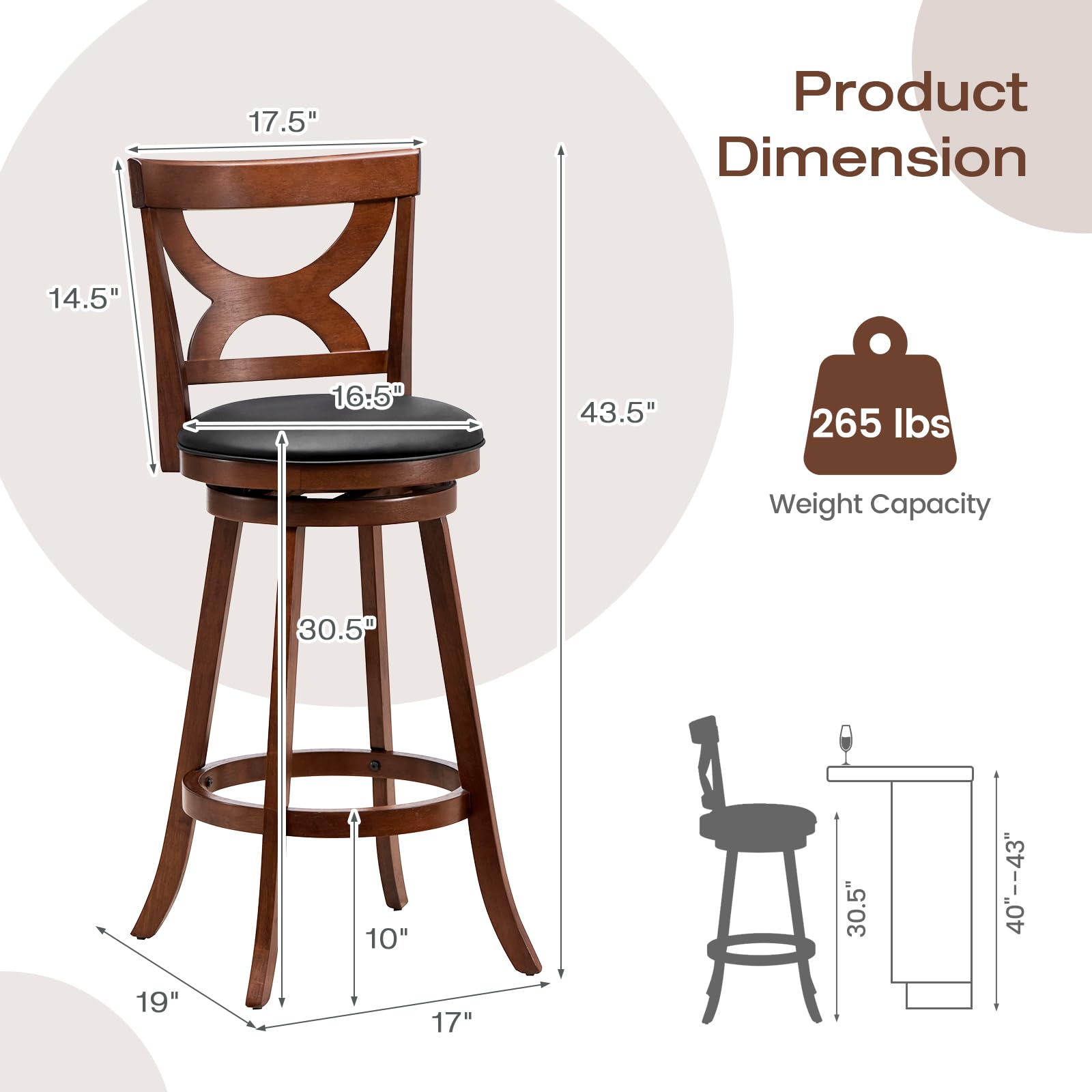 - [Worry-free Installation]: These swivel bar stools come with clear instruction and complete accessories. Hence, installation is just a breeze. Overall dimension: 17.5" x 19" x 43.5" (W x D x H), seat height: 30.5".
