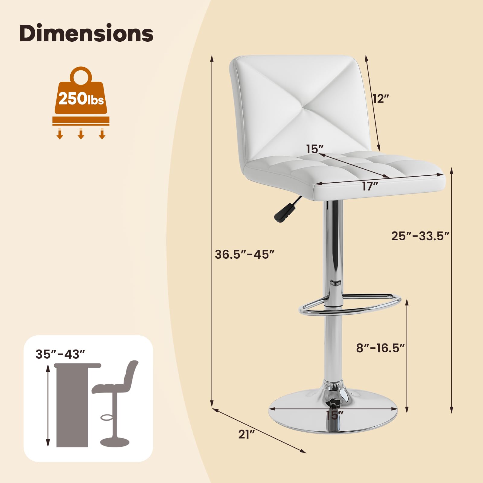 Compatible Counter Height: 35"-43"
