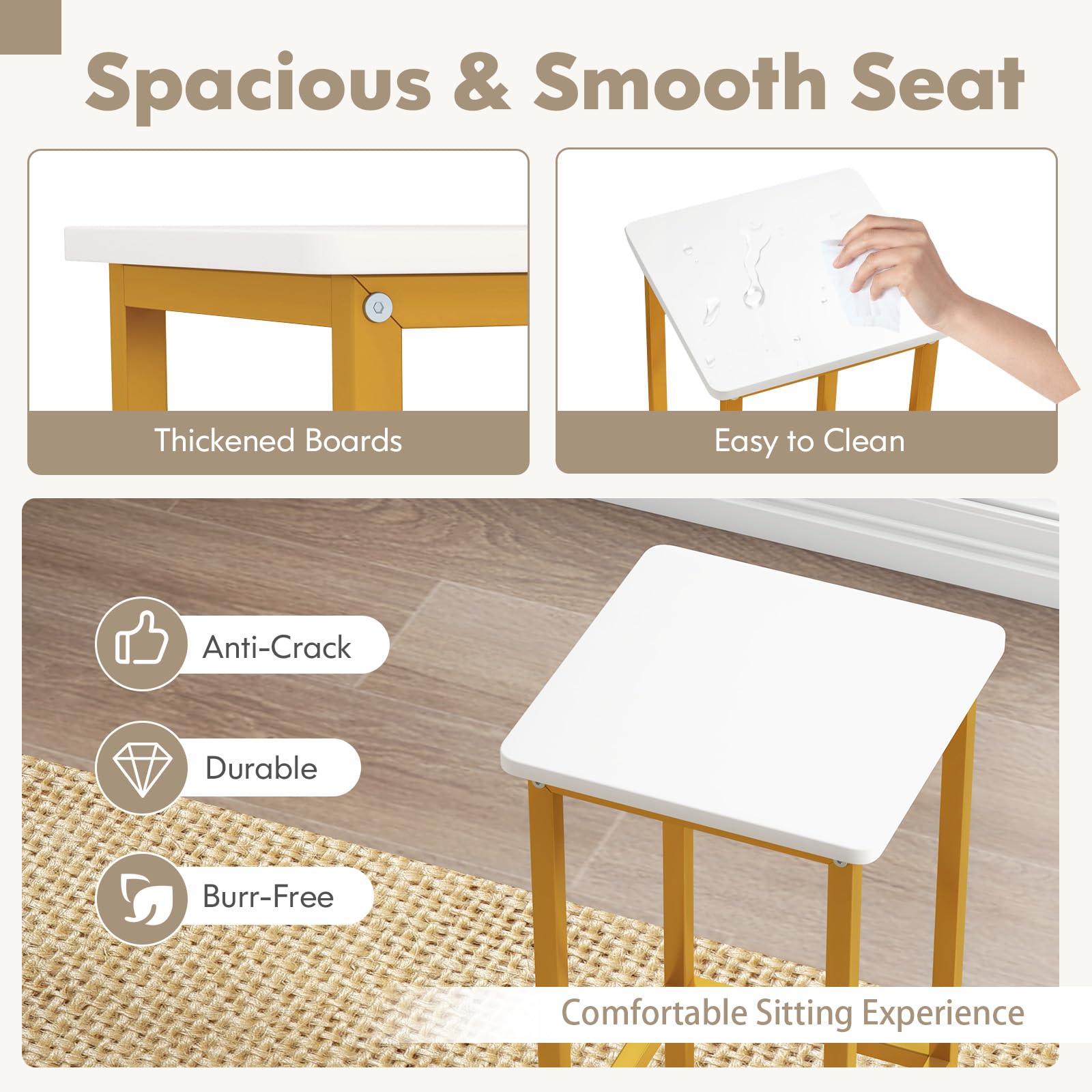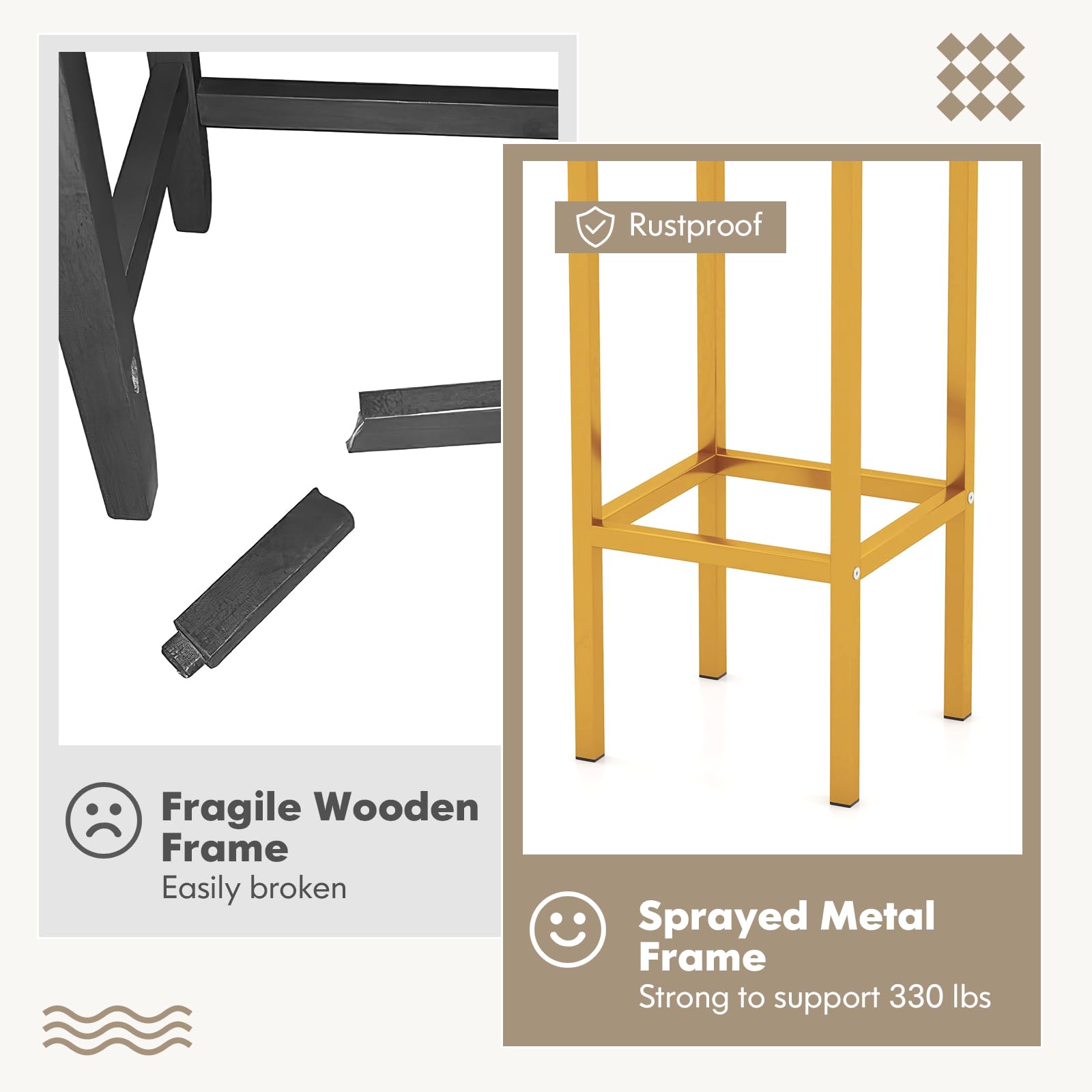 Each stool features a square seat & a 9" high footrest, ensuring utmost comfort as you unwind with your favorite drink. Unlike the fragile wooden frame that is easily broken, crafted with reinforced boards & sprayed metal tubes, these bar chairs are incredibly sturdy & can support a weight up to 330 lbs. Embrace the industrial chic design that adds a modern touch to your space. The anti-slip foot pads not only provide stability but also protect your floor from unsightly scratches & damages. Setting up the breakfast stool set is a breeze with all the necessary hardware & a detailed manual included. More, cleaning & maintaining these bar stools is effortless, ensuring they always look as good as new.