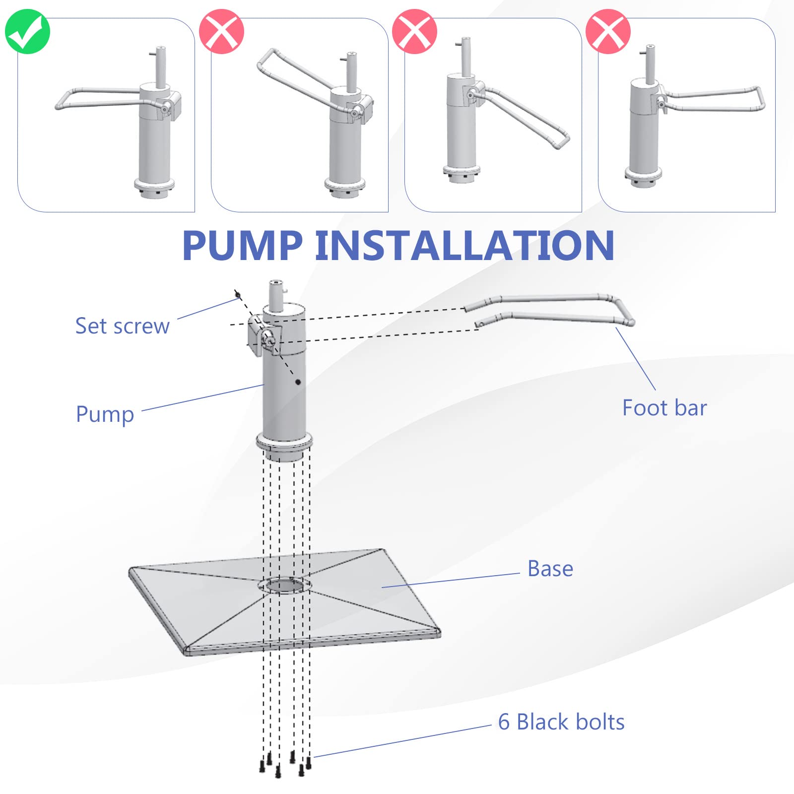 Heavy-duty hydraulic pump and large base for a strong load capacity of 330lbs