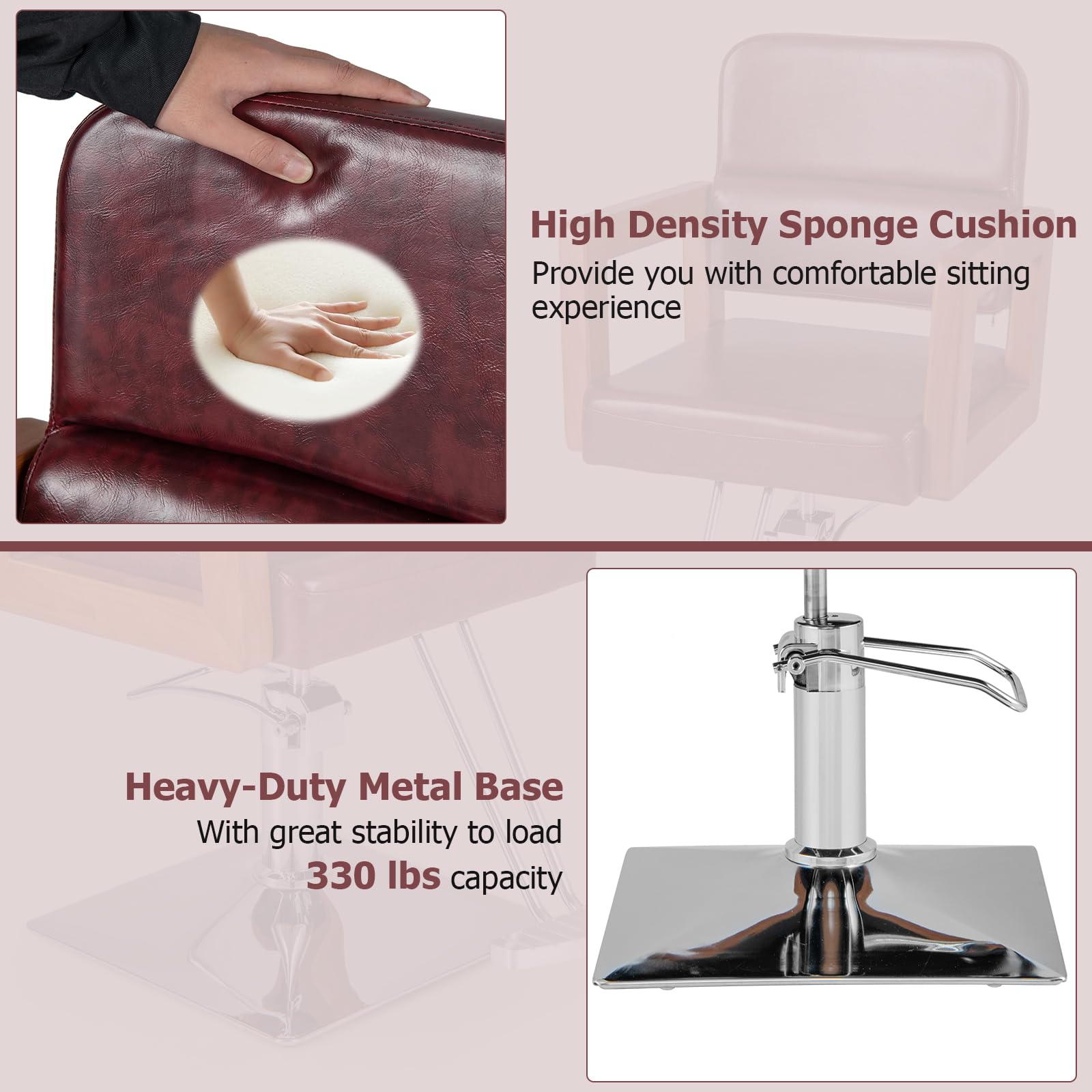 - Modern & Stylish Barber Chair: This barber chair features a dark red color scheme with exquisite stitching and a glossy electroplating frame, complemented by elegant wooden armrests. It's perfect for barber shops, beauty salons, dressing rooms, tattoo shops, and more.