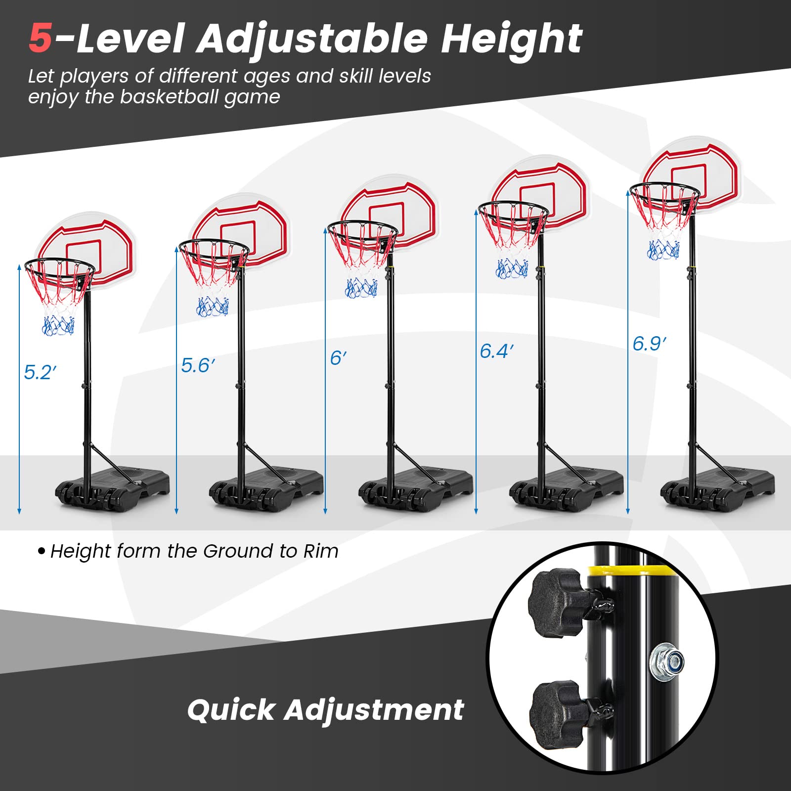 Product form Giantex Basketball Hoop Outdoor Kids - Height Adjustable 5.2 Ft- 6.9 Ft Portable Basketball Hoop Stand with Wheels $89.99 Shipped today? Order within: Oct 05, 2025 17:00:00 -0700 Quantity Add to cart This item is a recurring or deferred purchase. By continuing, I agree to the cancellation policy and authorize you to charge my payment method at the prices, frequency and dates listed on this page until my order is fulfilled or I cancel, if permitted. Your order will be shipped for free!
