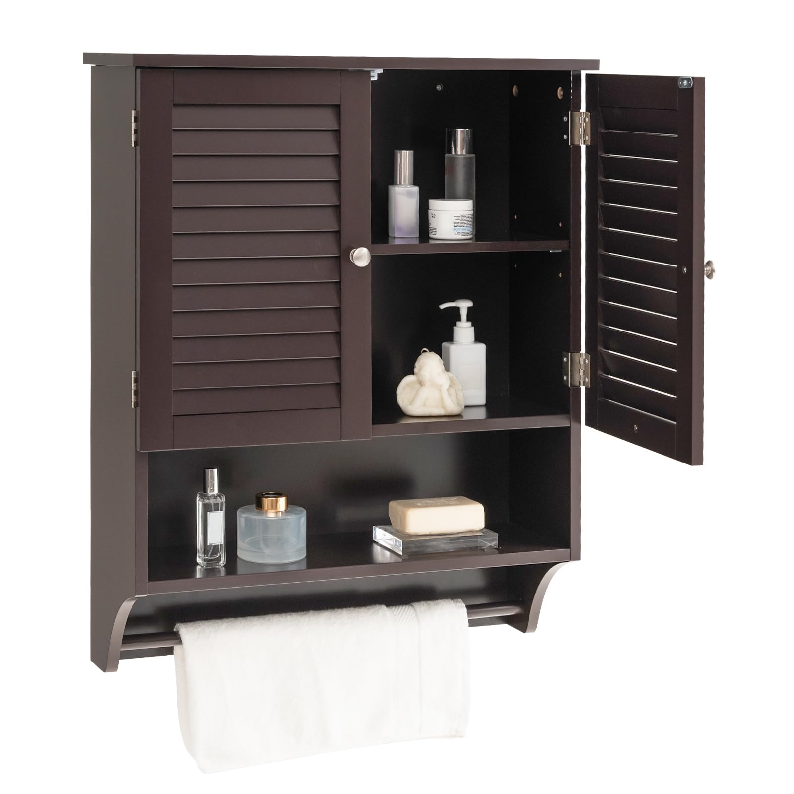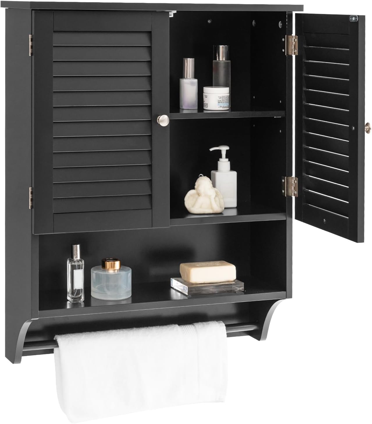 This bathroom wall-mounted cabinet includes various storage areas, which offer a perfect storage solution for bathroom necessities. In addition, the 3-position adjustable shelf holds items of different heights for more flexibility. Furthermore, the louvered doors allow air to circulate and the handy knobs make the opening and closing of the doors easier. With the included accessories, you can install the medicine cabinet on the wall tightly. Whether in the bathroom, laundry, kitchen, or other places, this wall-mounted cabinet brings a lot of storage space to your house.