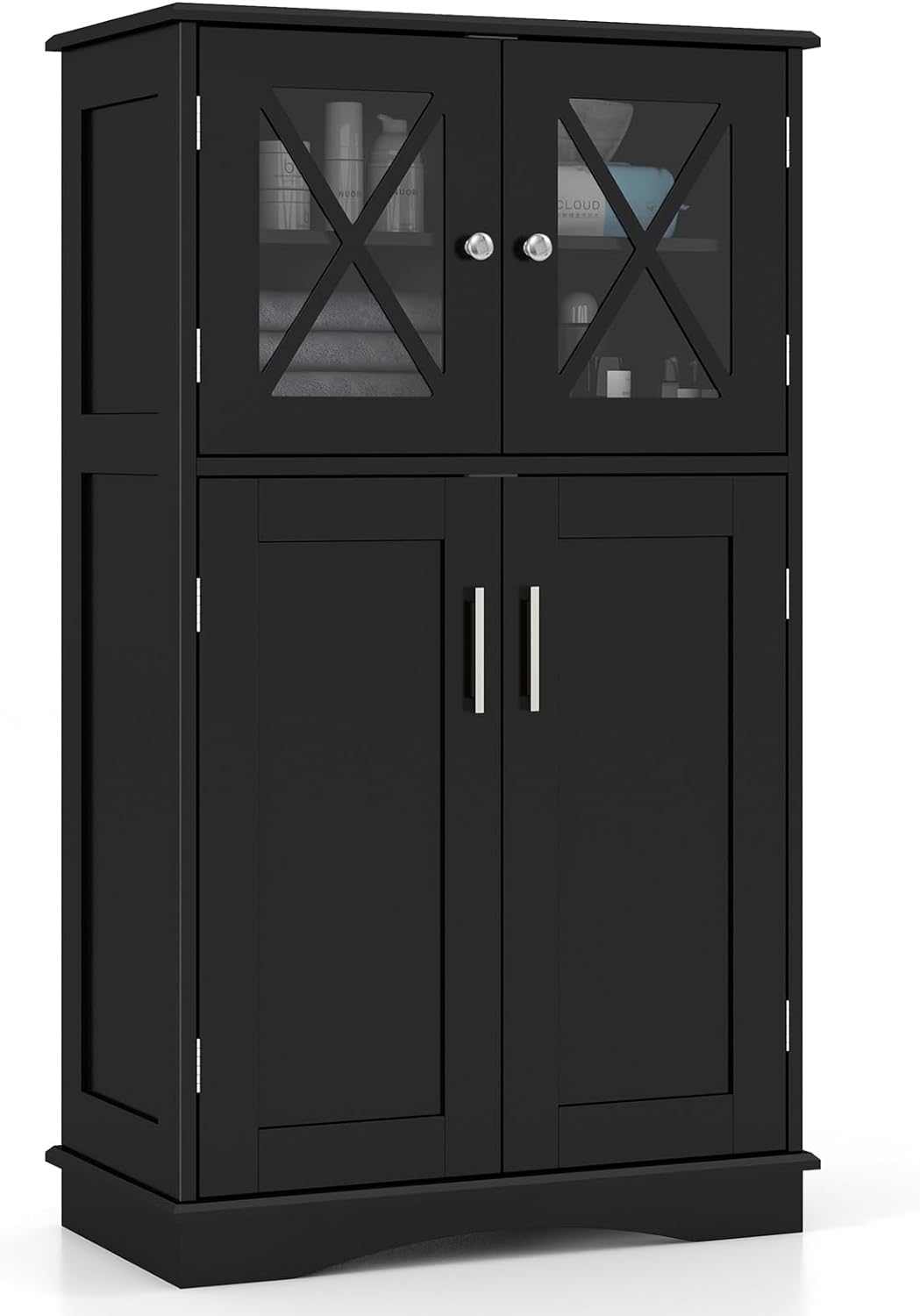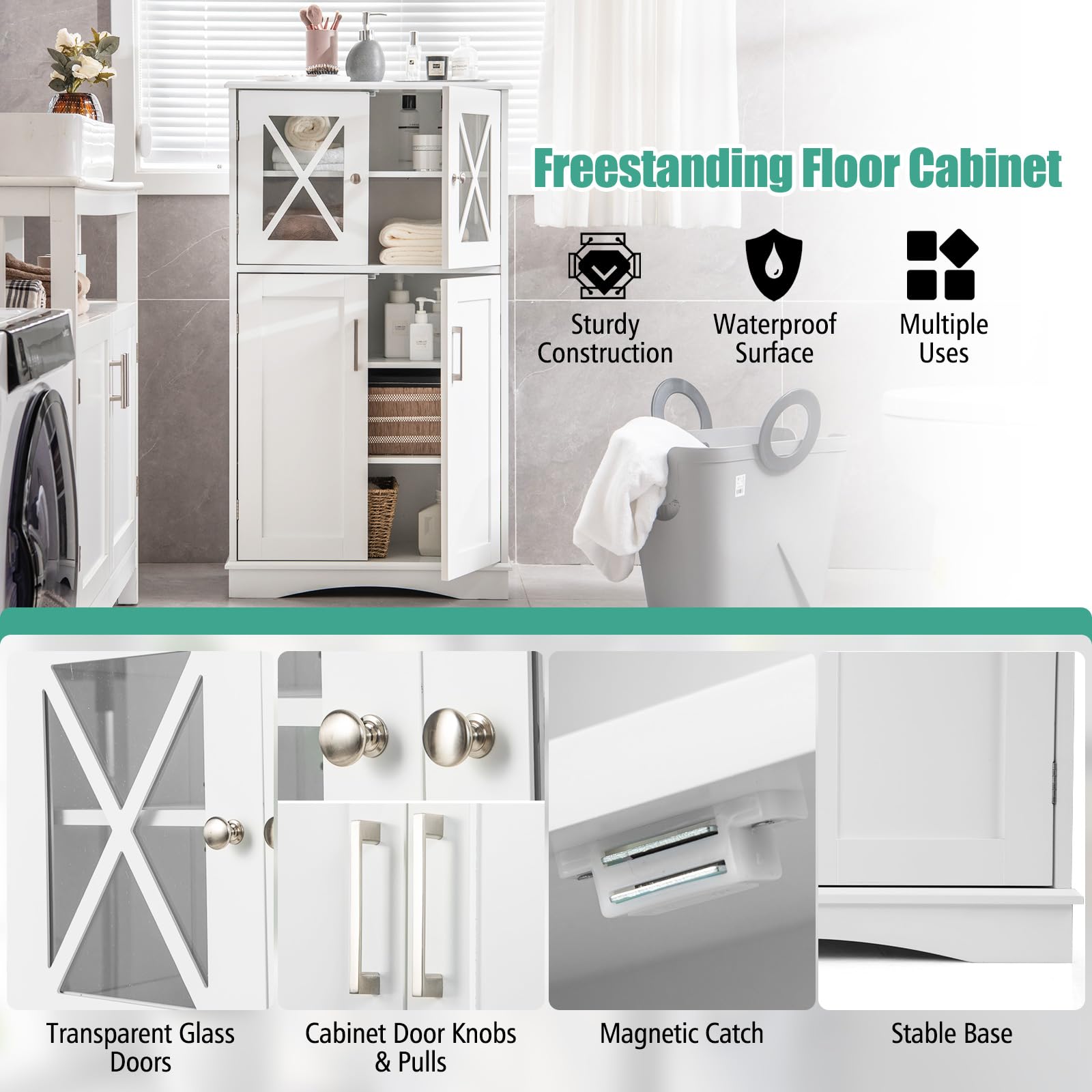 • Timeless Design for Versatile Use: Our bathroom cabinet features a timeless and elegant design that seamlessly matches various decorating styles. The transparent glass doors add a touch of sophistication while allowing you to showcase your items. This versatile storage organizer is suitable for a wide range of scenarios, including the bathroom, living room, kitchen, office, and more. It serves as a practical and stylish addition to any space in your home.