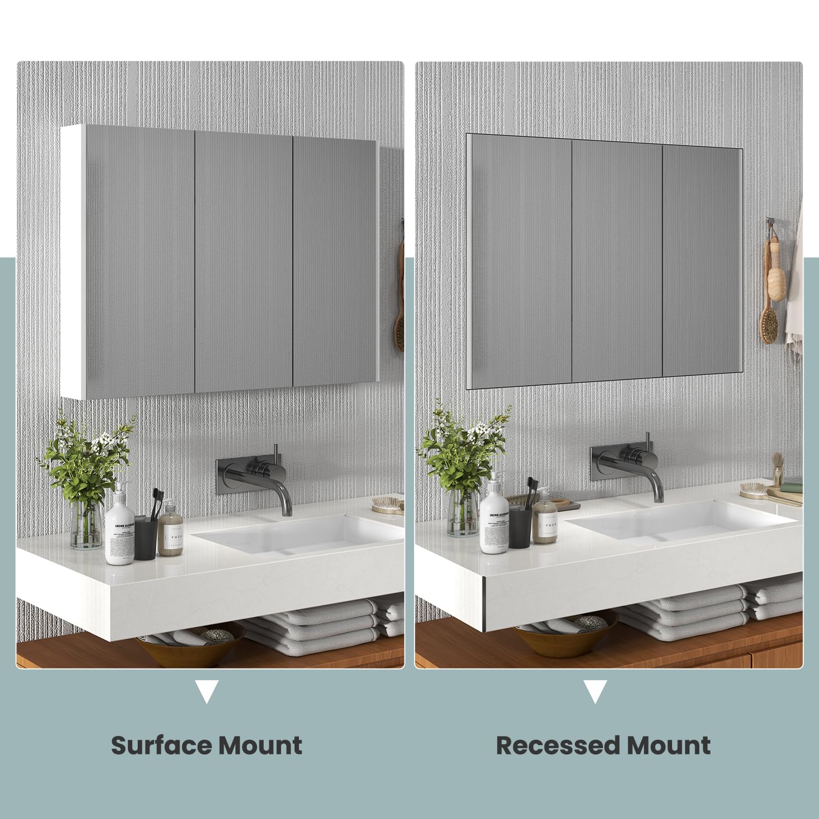 - Mounting Options, Your Way: Experience ultimate flexibility in installation. Our bathroom cabinet with mirror doors comes with mounting hardware, offering two mounting options: surface mounted or recessed mounted on the wall. Ensure a perfect fit by measuring beforehand. (Product Dimensions: 36”L x 4.5”W x 25.5”H)