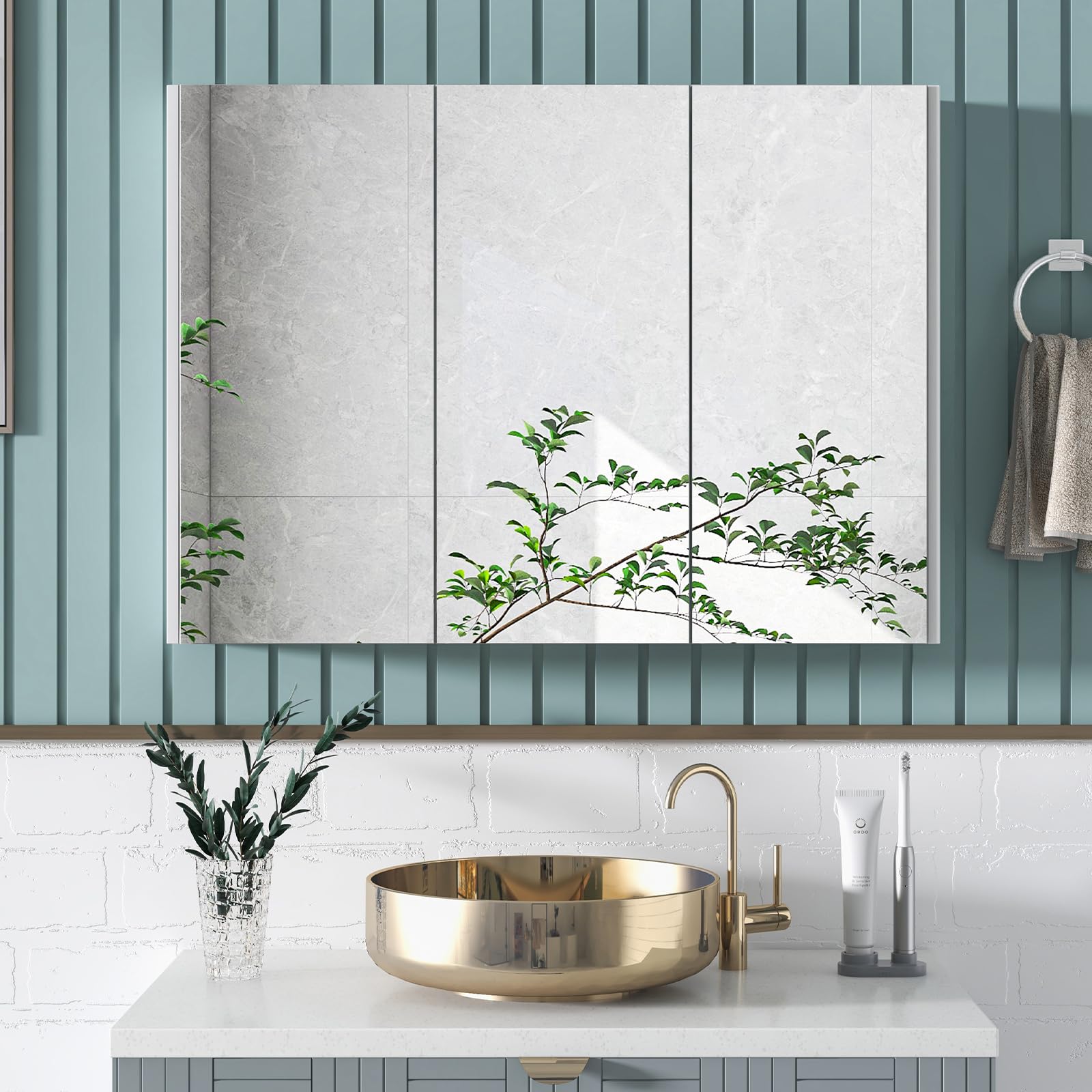 Wall mounted storage cabinet comes with 3 frameless mirrors