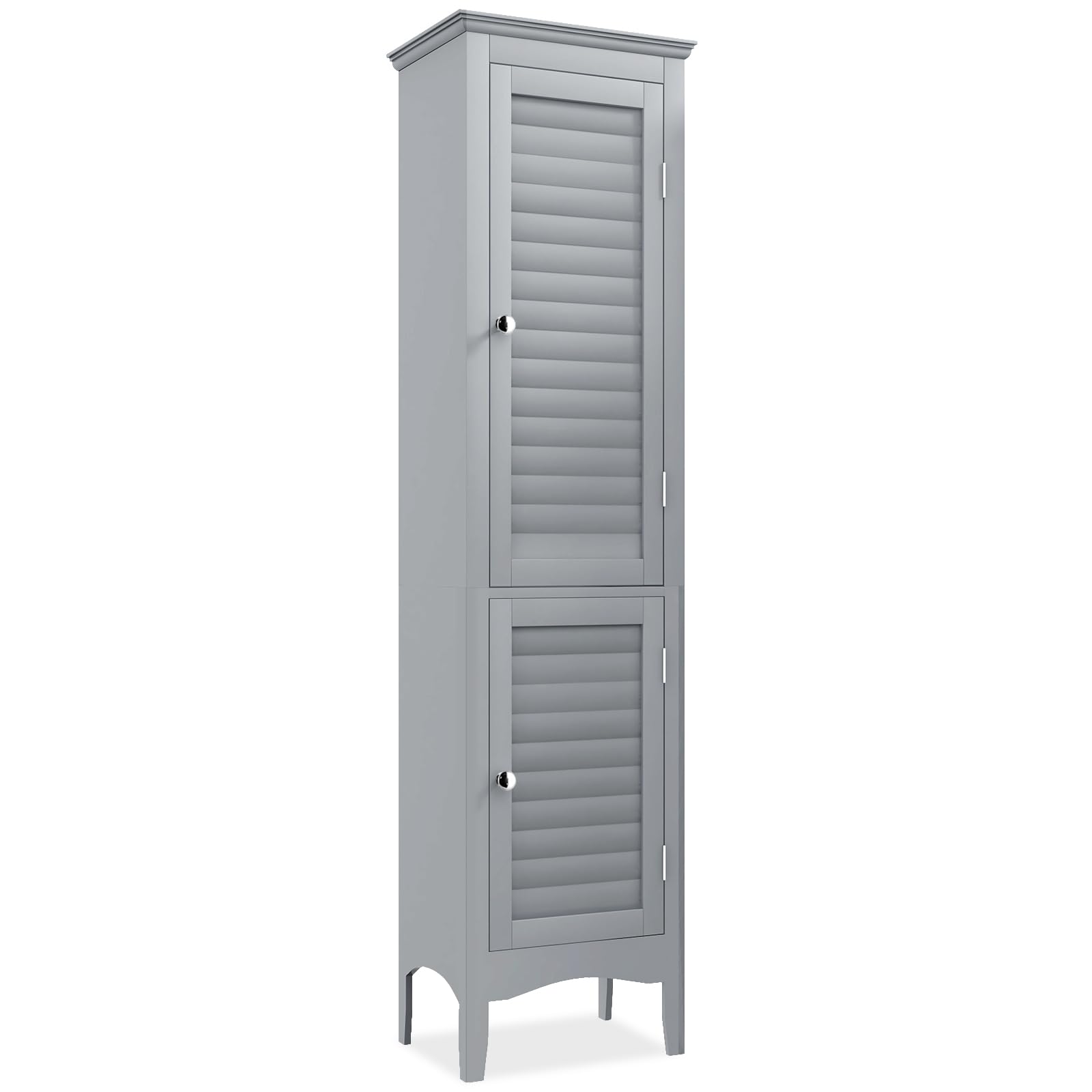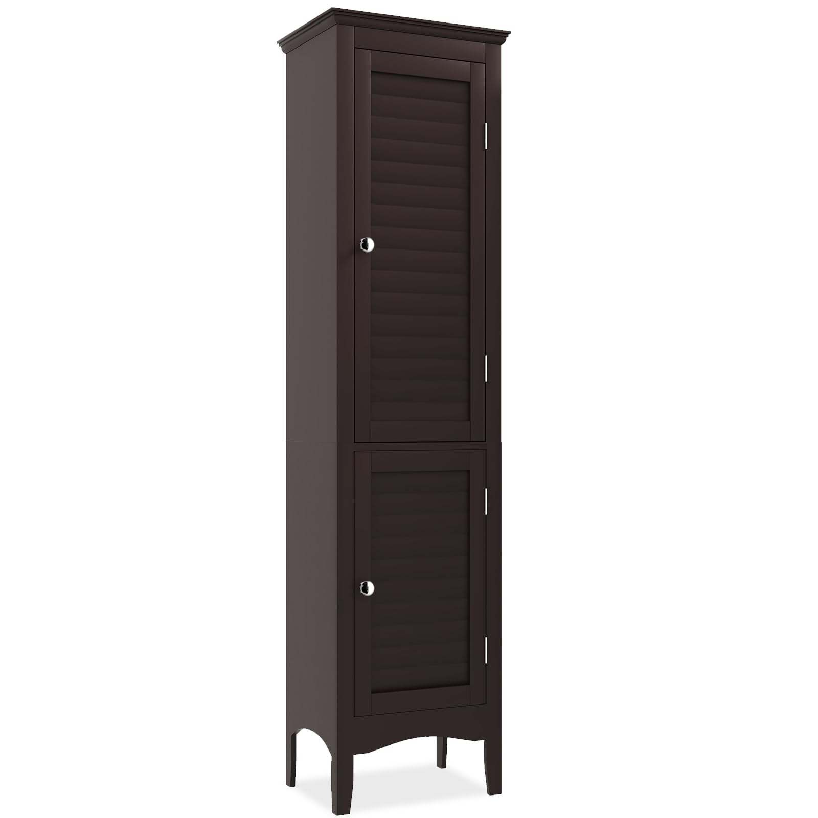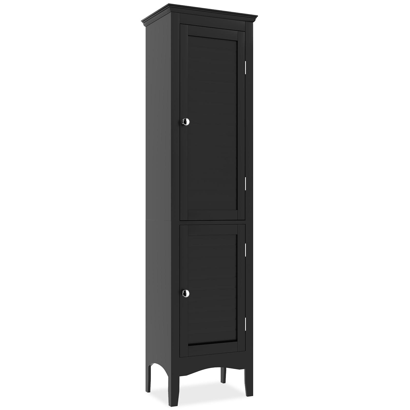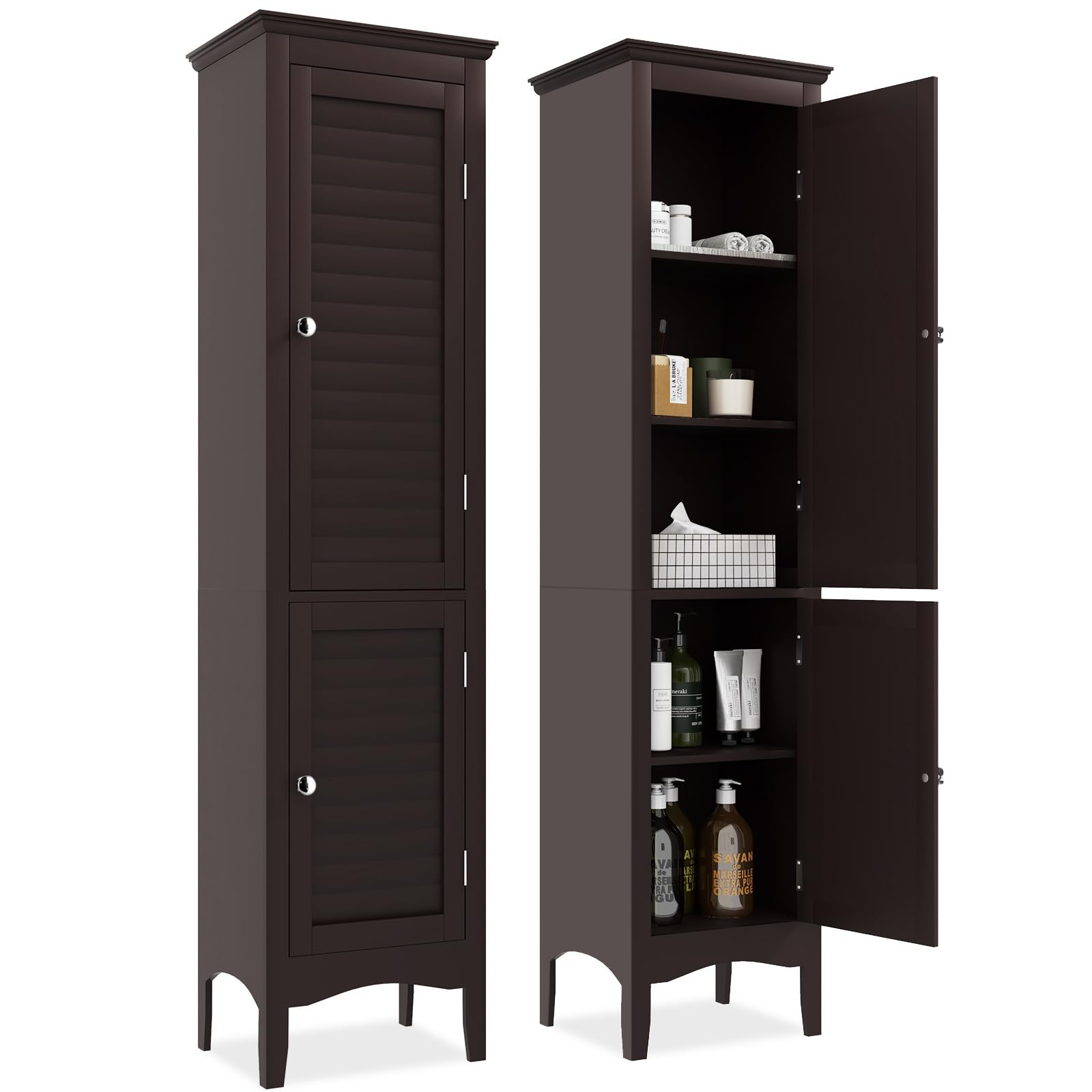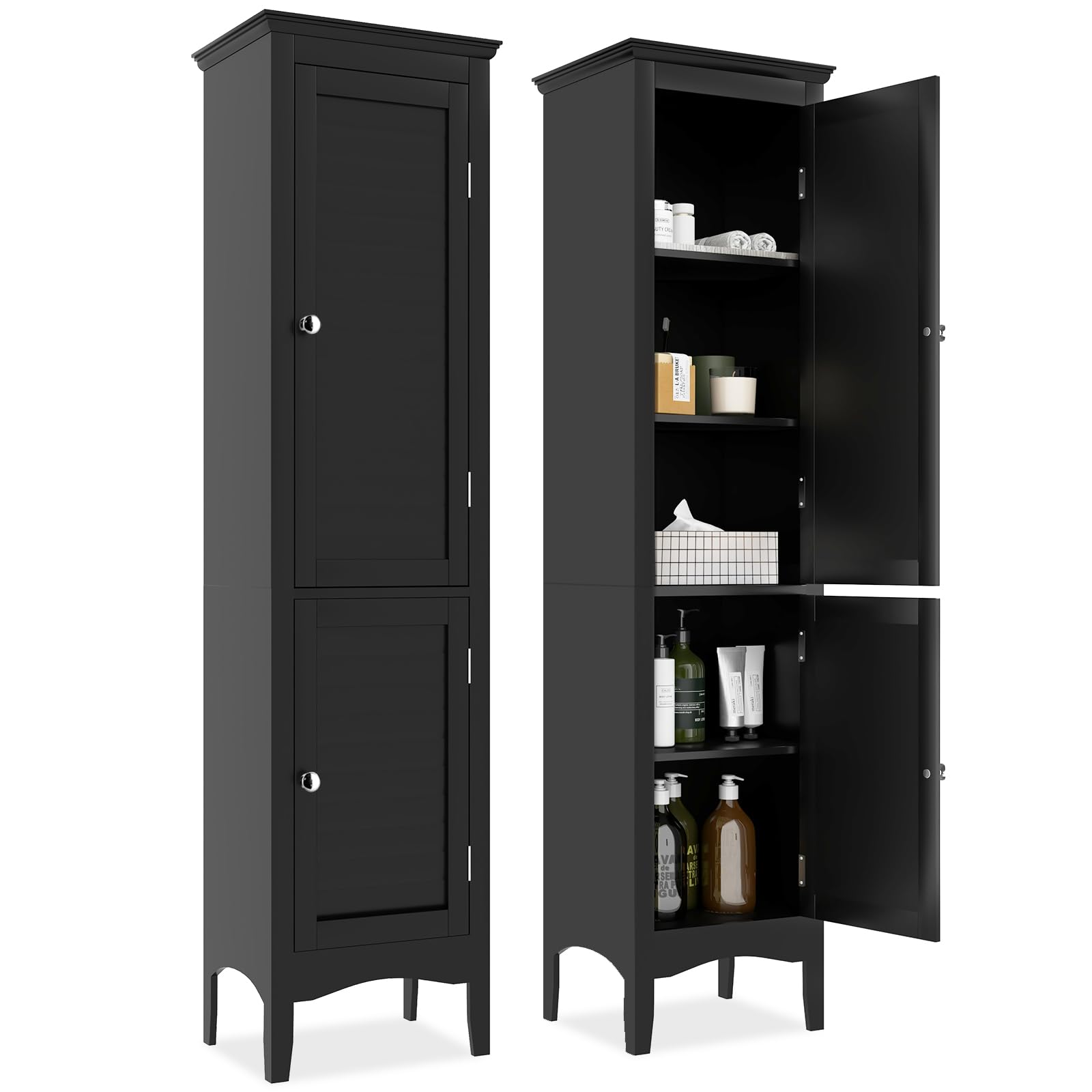 This tall and slim bathroom storage cabinet takes up little floor space and creates additional storage space for various supplies. There are 2 cabinet doors with door knobs and magnetic catches, which keeps the items inside away from water and dust. The storage shelf on the bottom is adjustable in 3 heights, meeting different storage needs. Designed with a simple and elegant appearance, this freestanding bathroom cabinet fits most decoration styles. And you can fix the bathroom cabinet organizer to the wall for better safety.