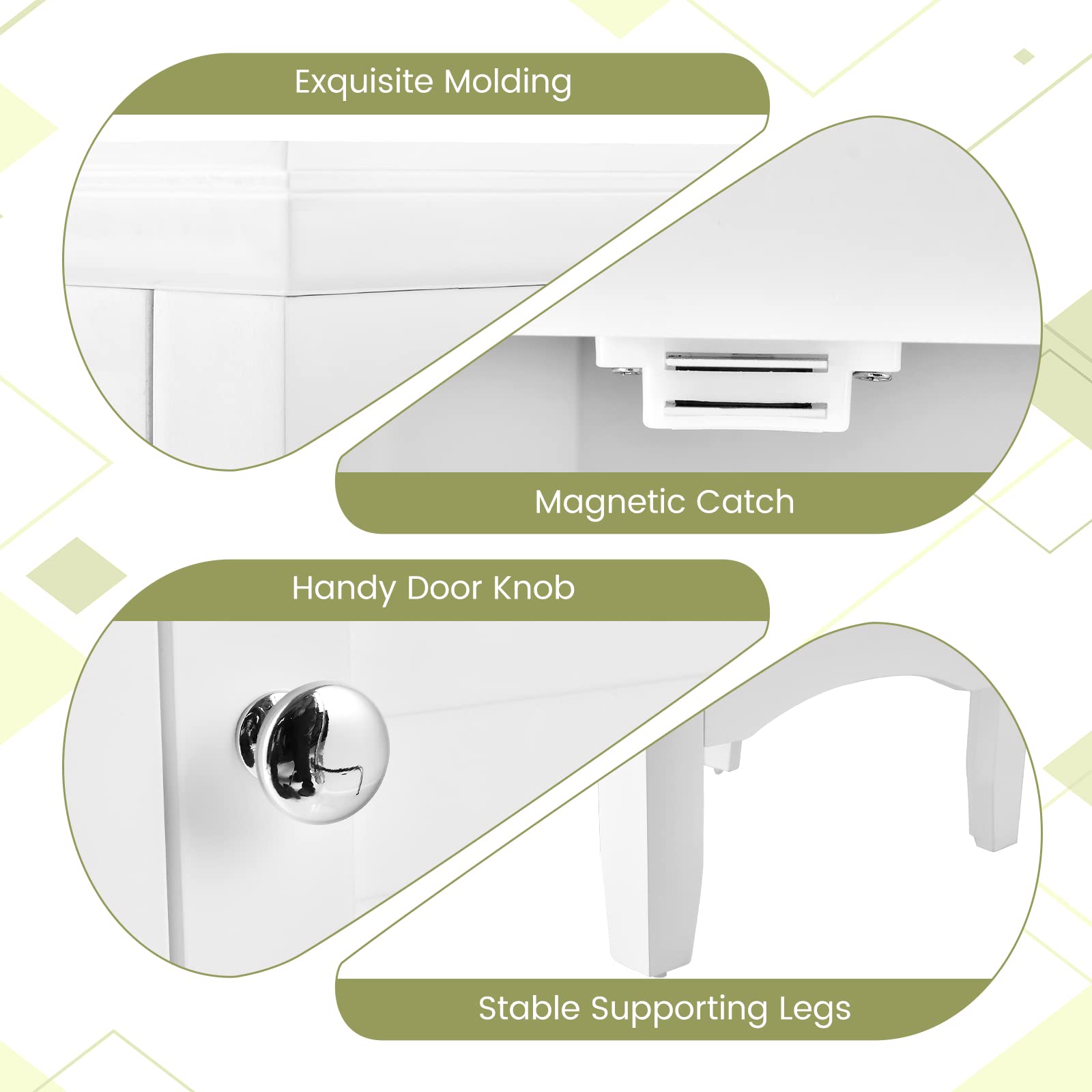 This bathroom storage cabinet features a 3-level height adjustable shelf.