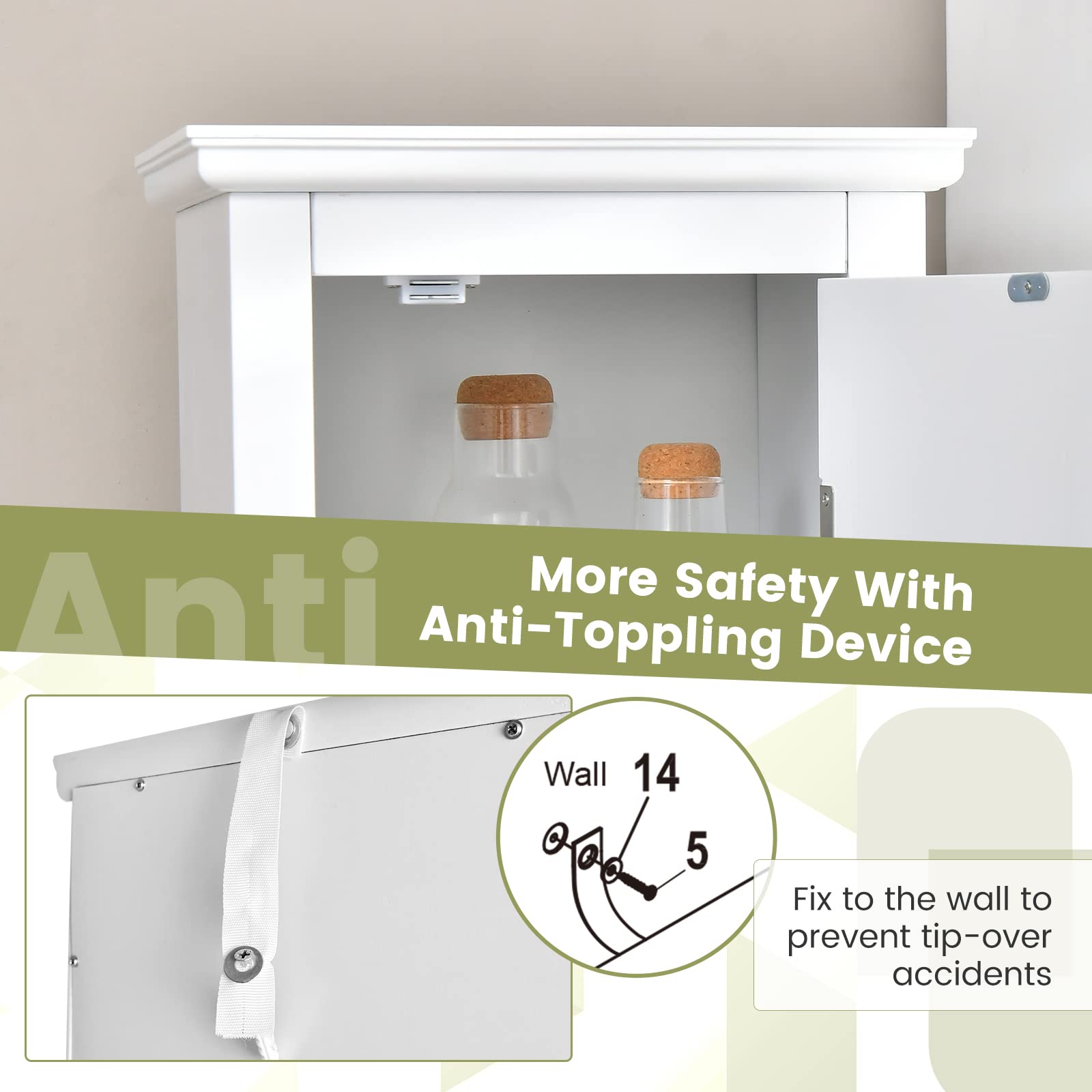 This bathroom storage cabinet ensures more safety with an anti-toppling device.