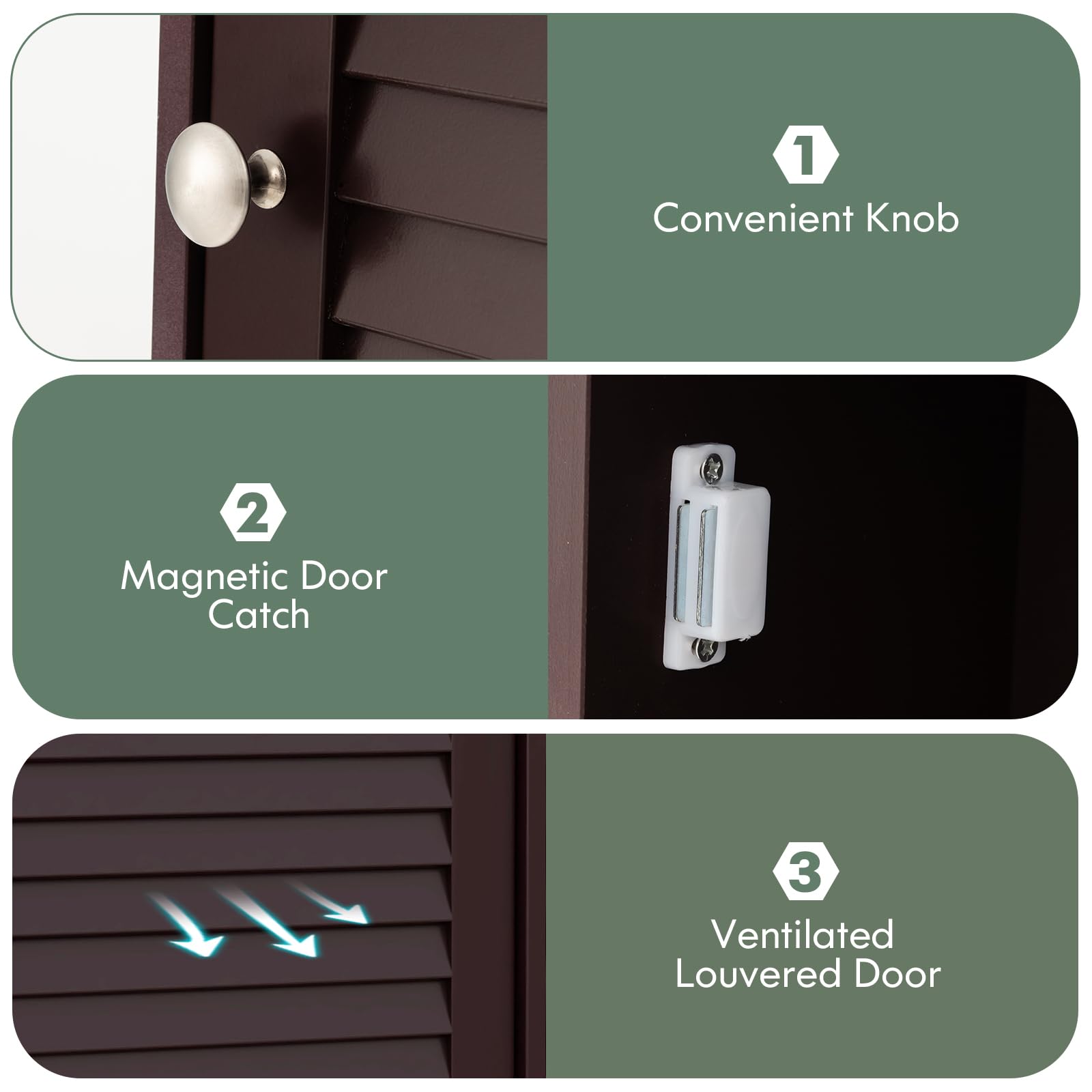 • Multipurpose Use: Featuring a ventilated louvered door, together with sleek lines, the medicine cabinet has an elegant appearance to match any room decor. It will be a good addition to the bathroom, kitchen, laundry room, or entryway.