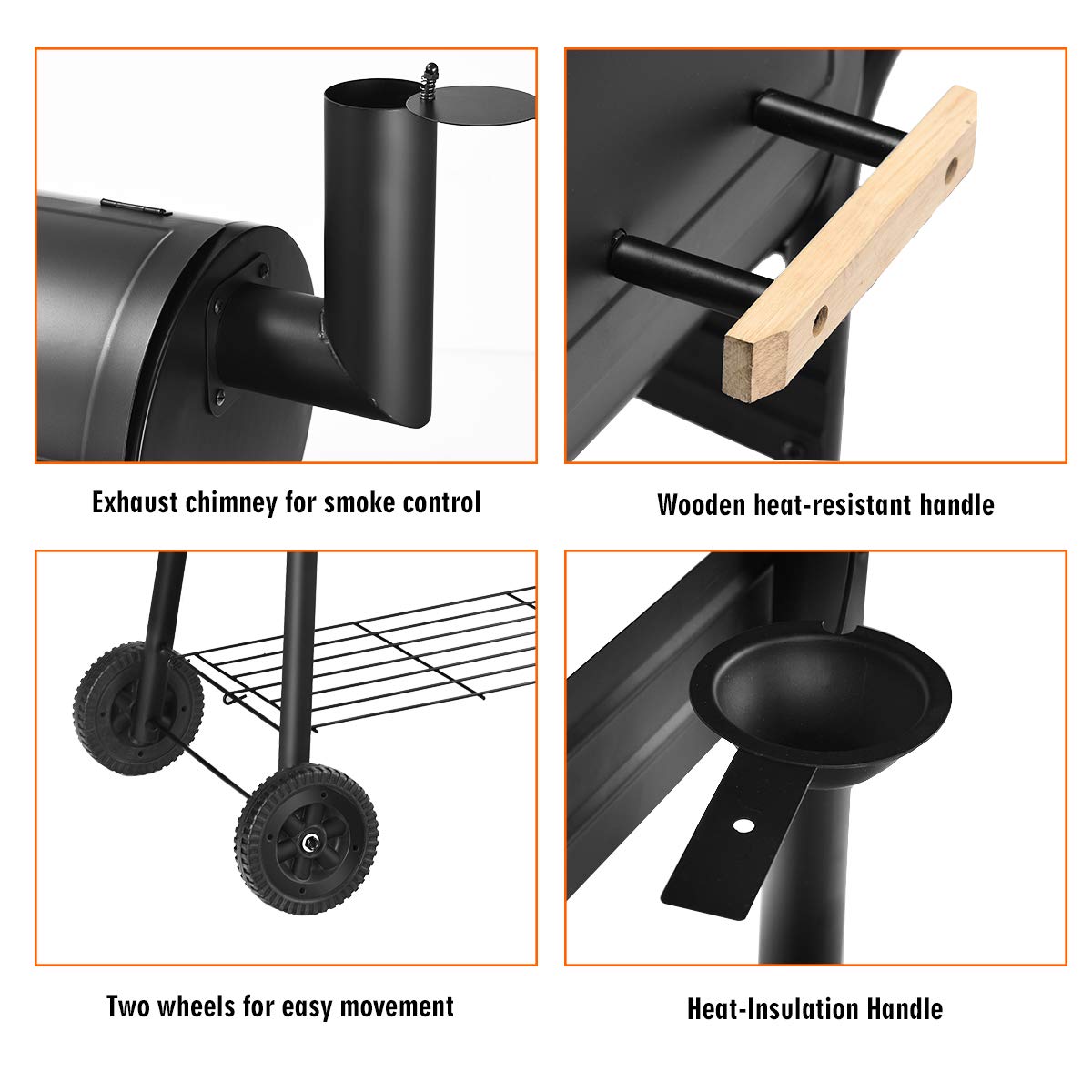 - Less Smoke and Smooth Air Flow: Attached steel firebox can effectively reduce smoking and heat. Side vent is designed for putting more coals and making air flow smoothly.