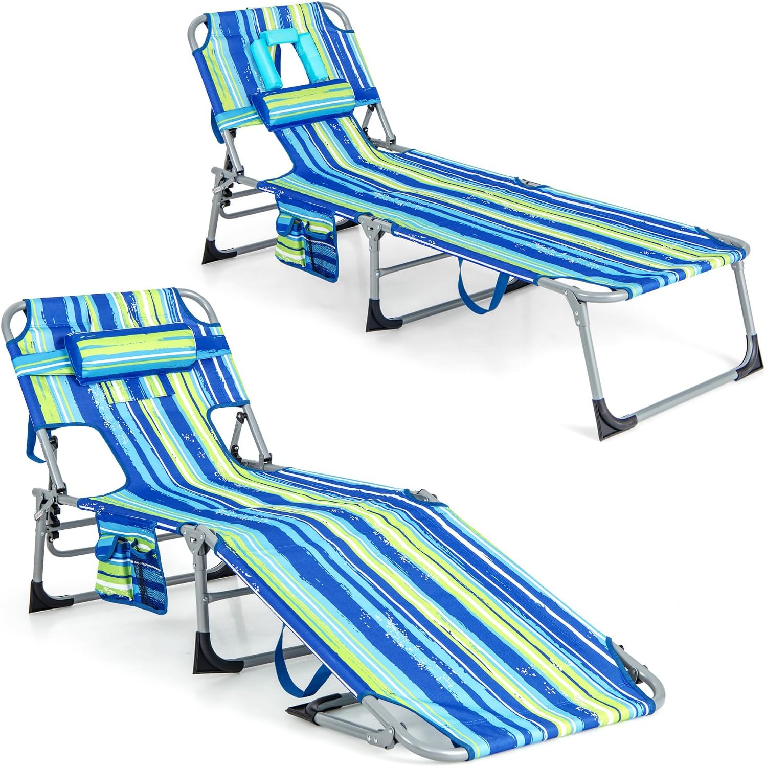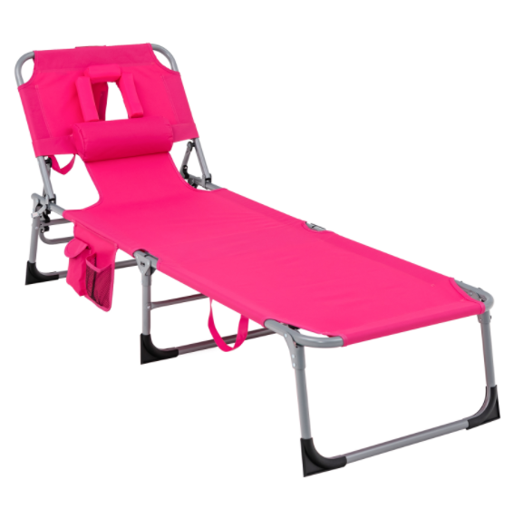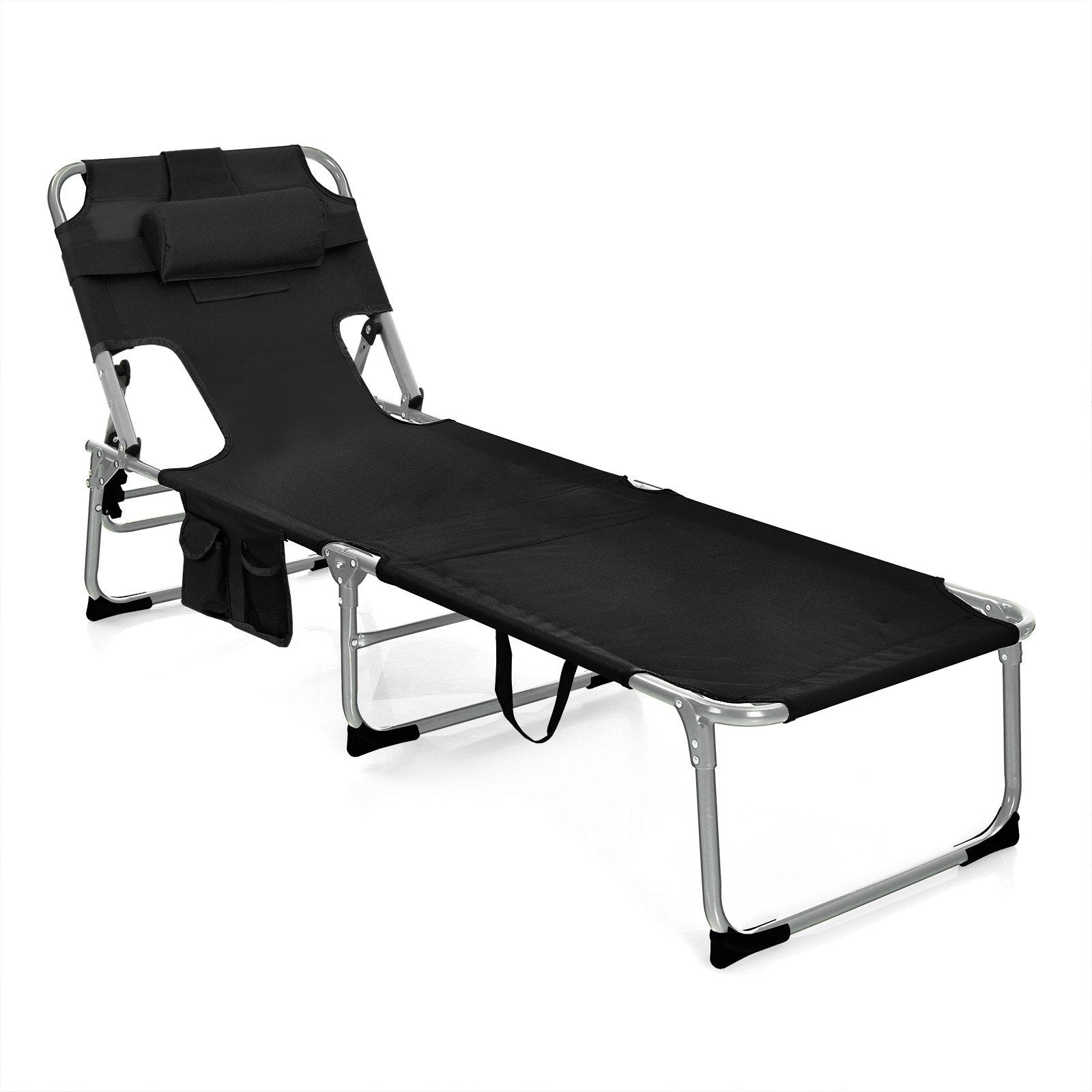 With 5 adjustable positions, you can adjust it as a reclining lounge chair or a temporary bed to rest or sleep. Firmly constructed with premium iron tube and non-slip foot pads, the lounger is solid, durable and stable. So you don't need to worry about wobbling. Made of breathable oxford cloth and a soft detachable pillow, the chaise lounge is comfortable to sit or lay down. When lying with face down, you can bury your face and put your hands into the open slots for comfort. Folding designed, it is easy to assemble and carry, perfect to be placed in beach, patio, bedroom, balcony and more.
