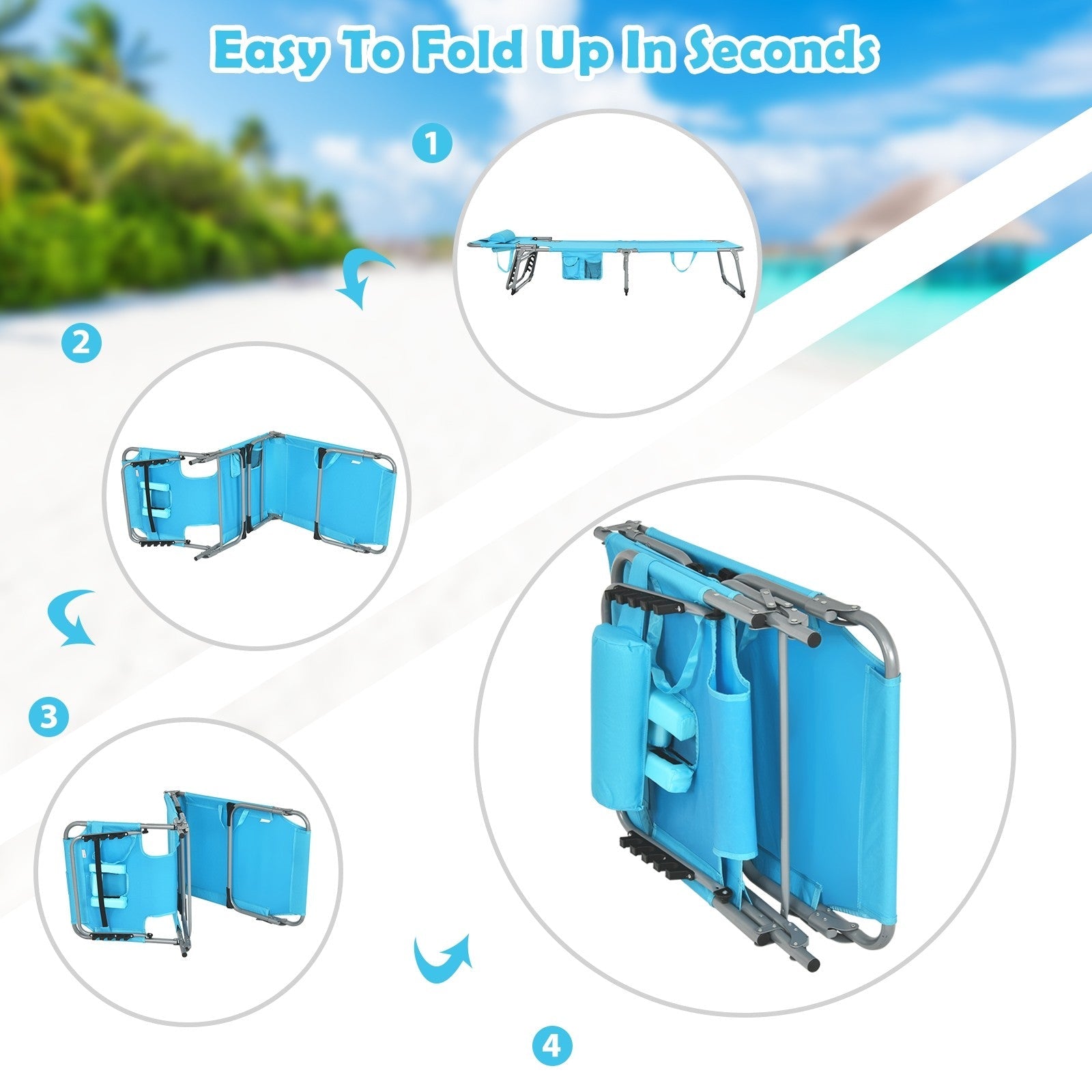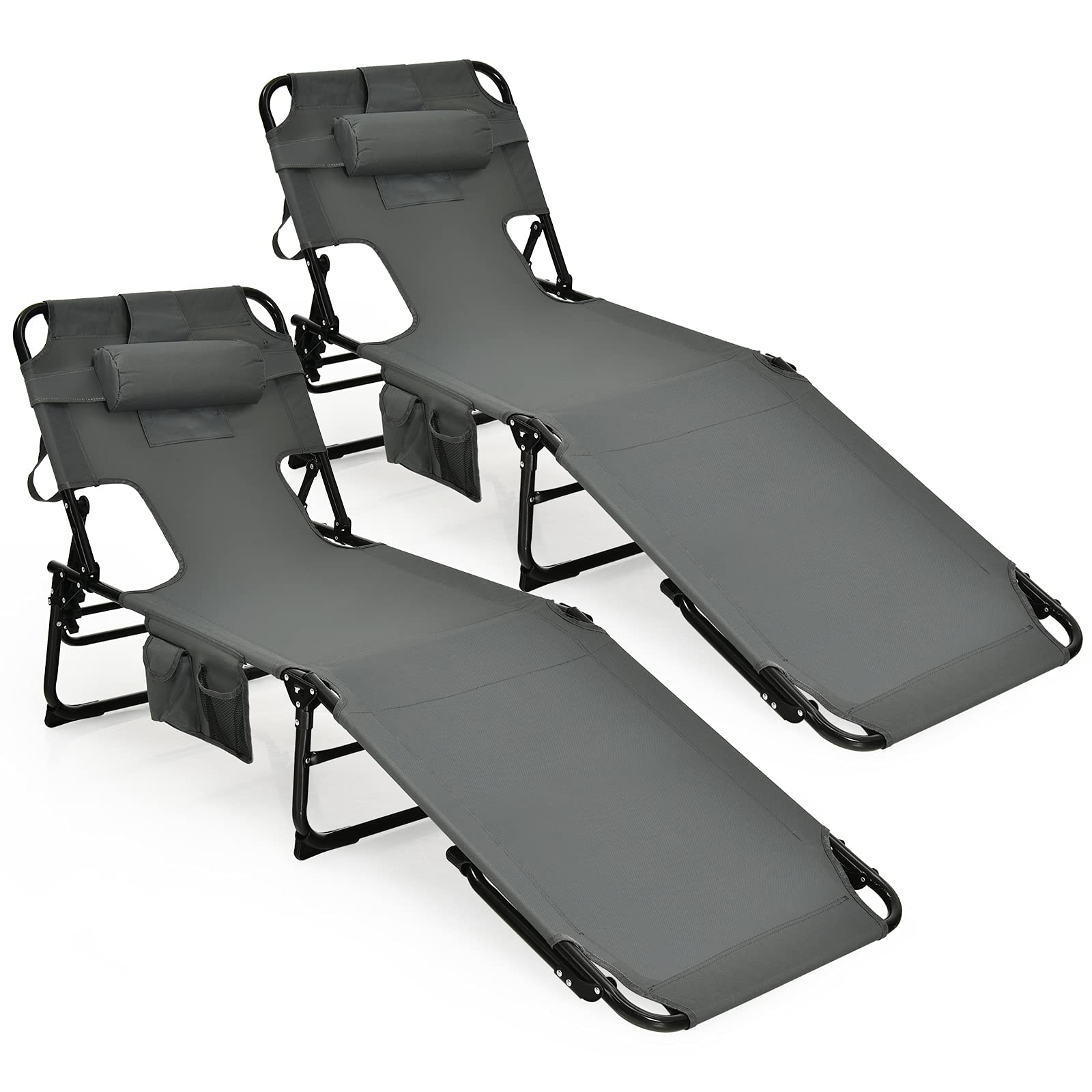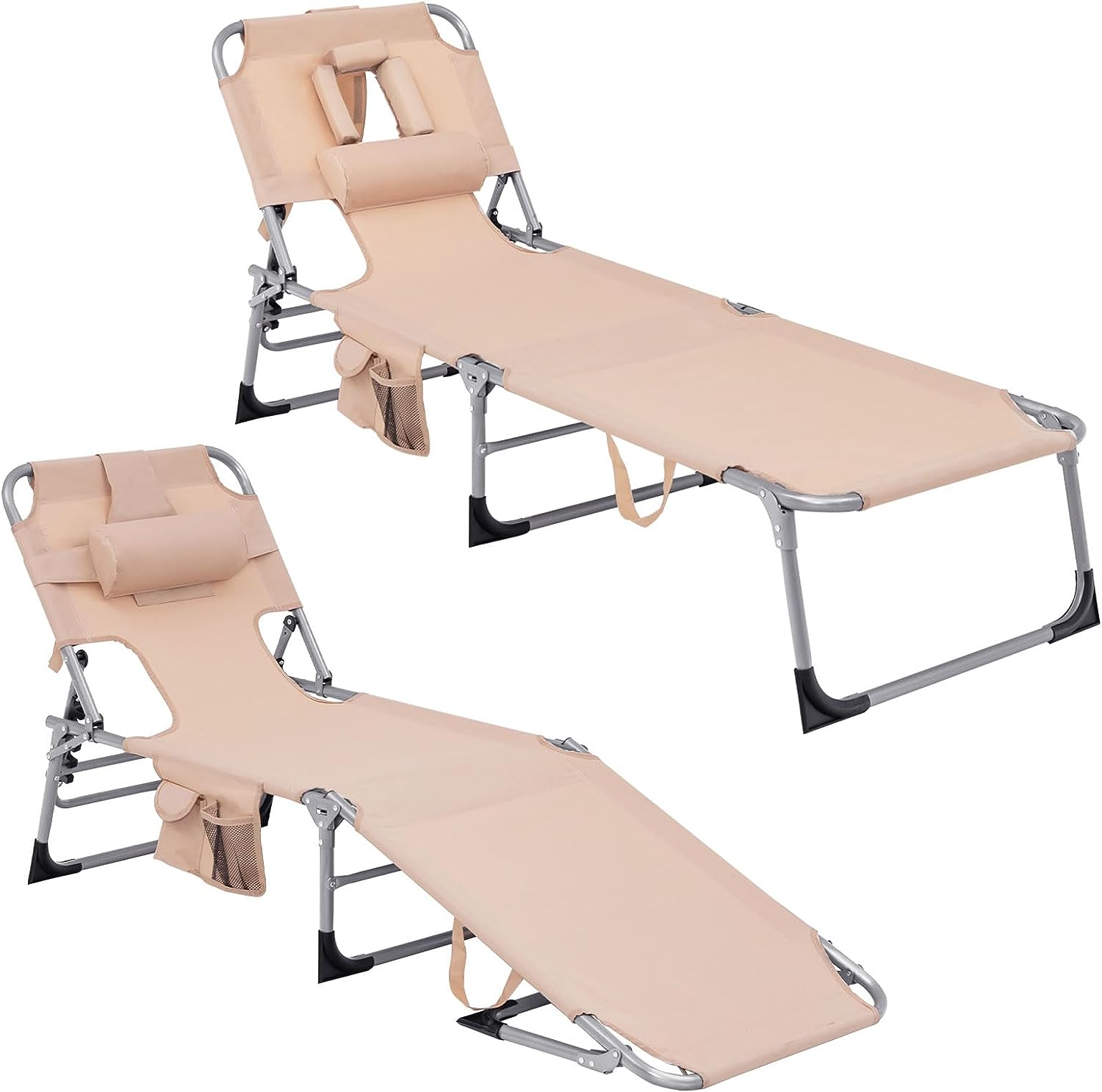 With 5 adjustable positions, you can adjust it as a reclining lounge chair or a temporary bed to rest or sleep. Firmly constructed with premium iron tube and non-slip foot pads, the lounger is solid, durable and stable. So you don't need to worry about wobbling. Made of breathable oxford cloth and a soft detachable pillow, the chaise lounge is comfortable to sit or lay down. When lying with face down, you can bury your face and put your hands into the open slots for comfort. Folding designed, it is easy to assemble and carry, perfect to be placed in beach, patio, bedroom, balcony and more.
