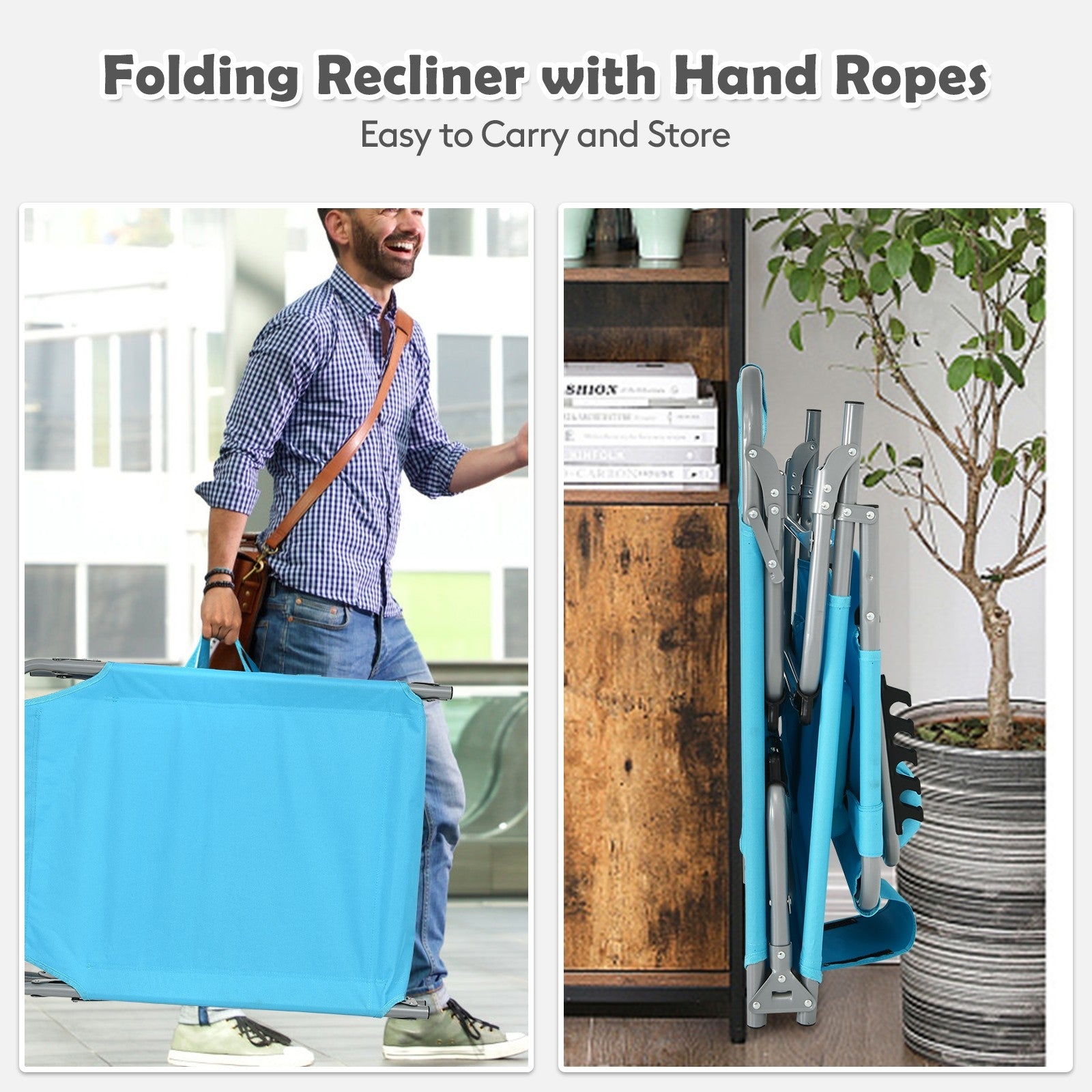 - Folding Design for Easy Setup & Storage: No tools needed! The lounge chair can be set up by hand in seconds. Just take the folding lounge out, expand it to full size, and adjust the position as you like. Please be careful of your fingers when opening it. It can also be folded to a small size, very convenient for you to store it in limit space.