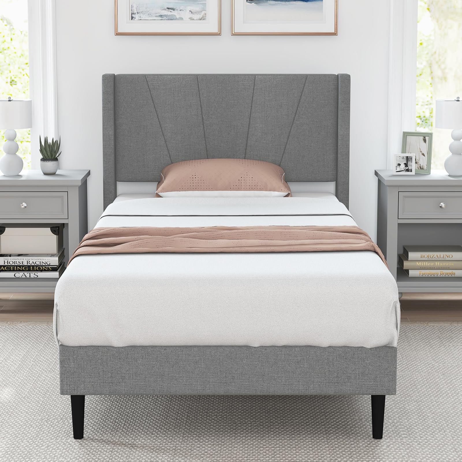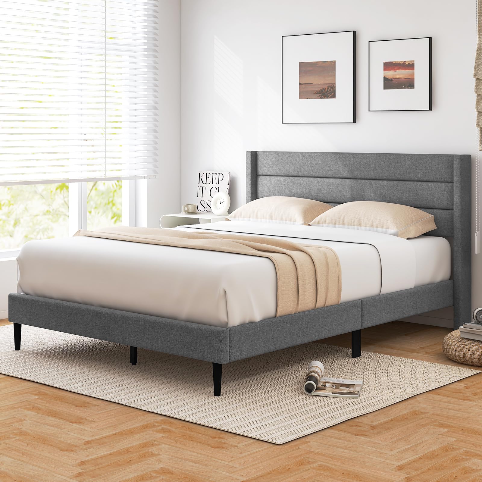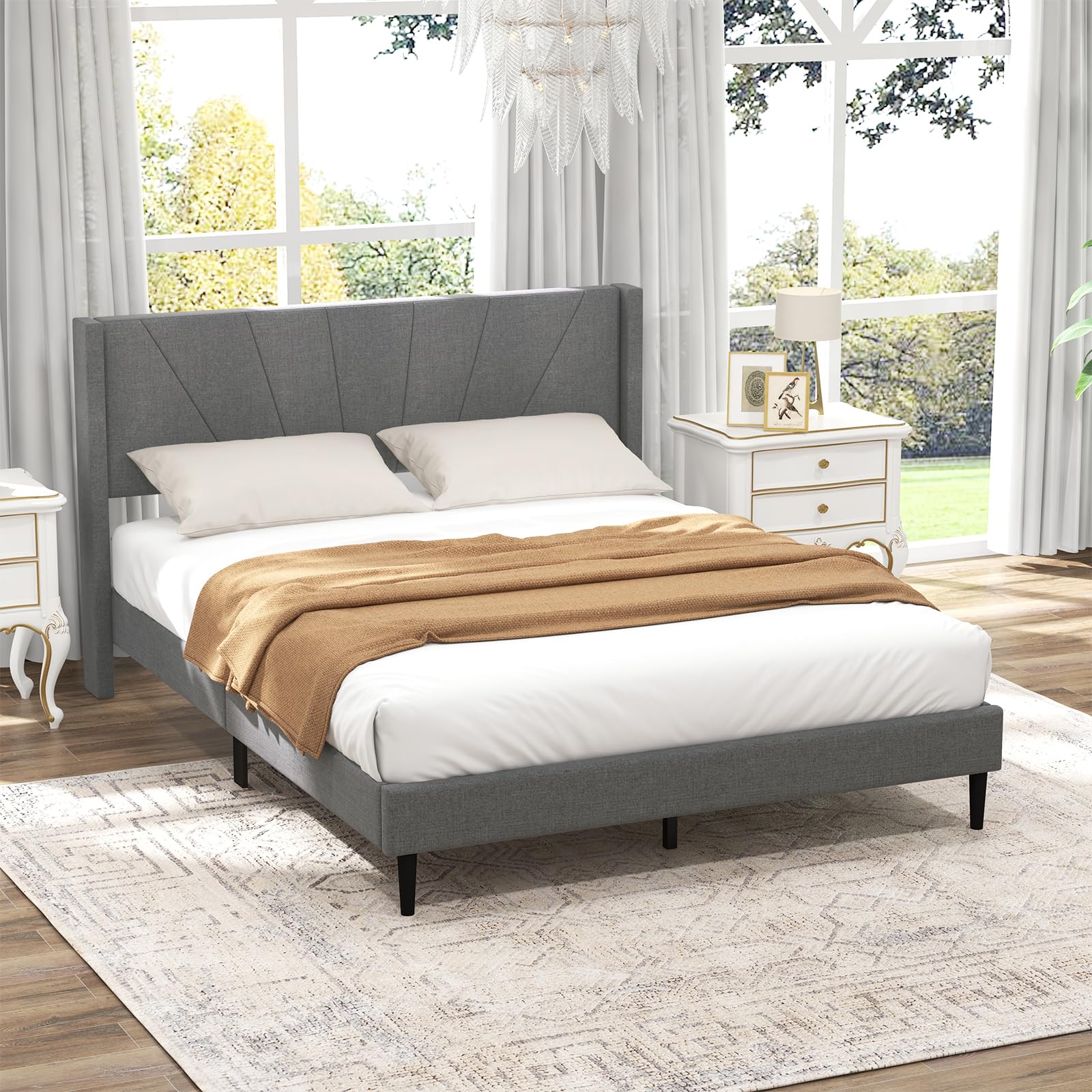 Giantex Bed Frame, Modern Linen Upholstered Platform Bed with Wingback Headboard