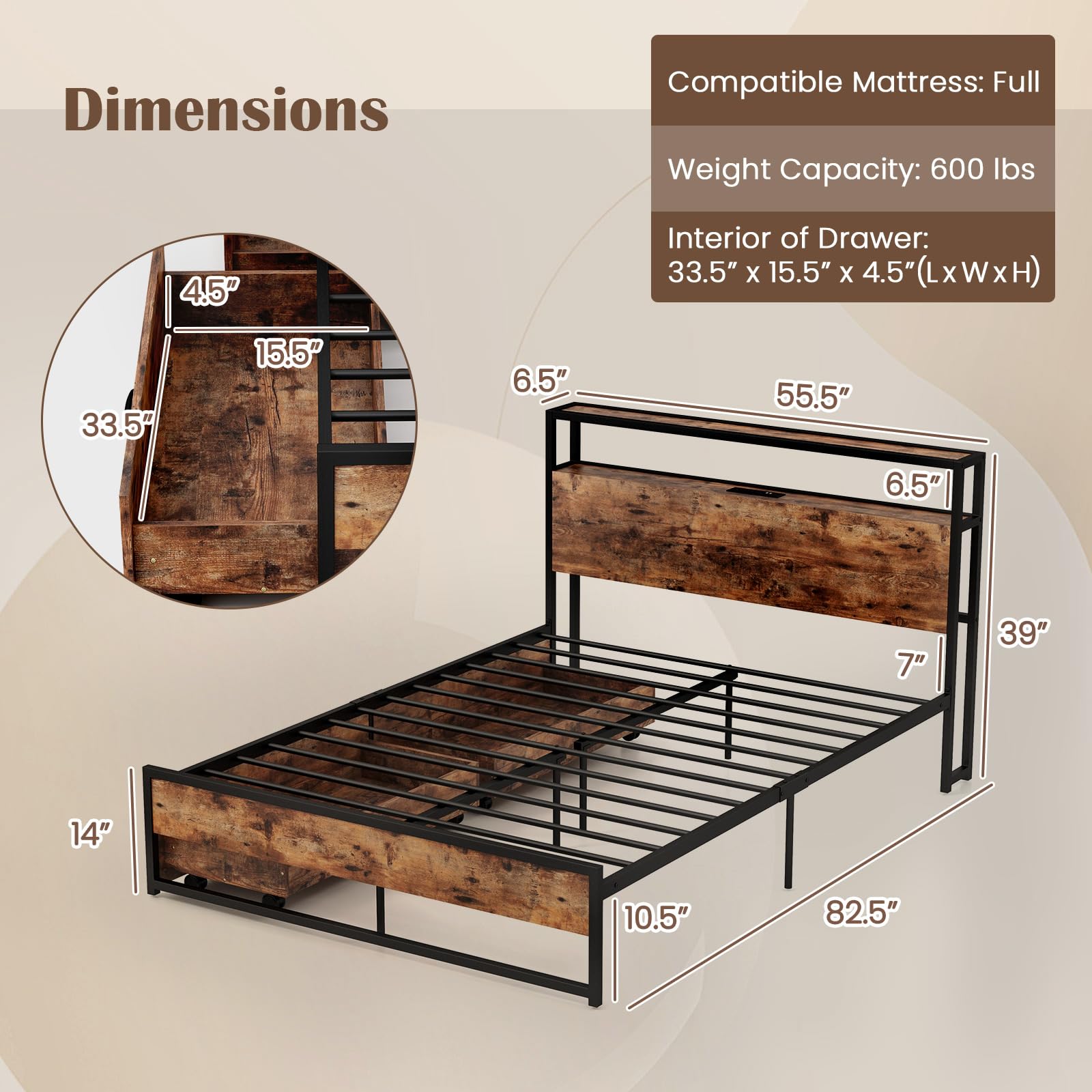 Recommended Mattress: Full (not included)